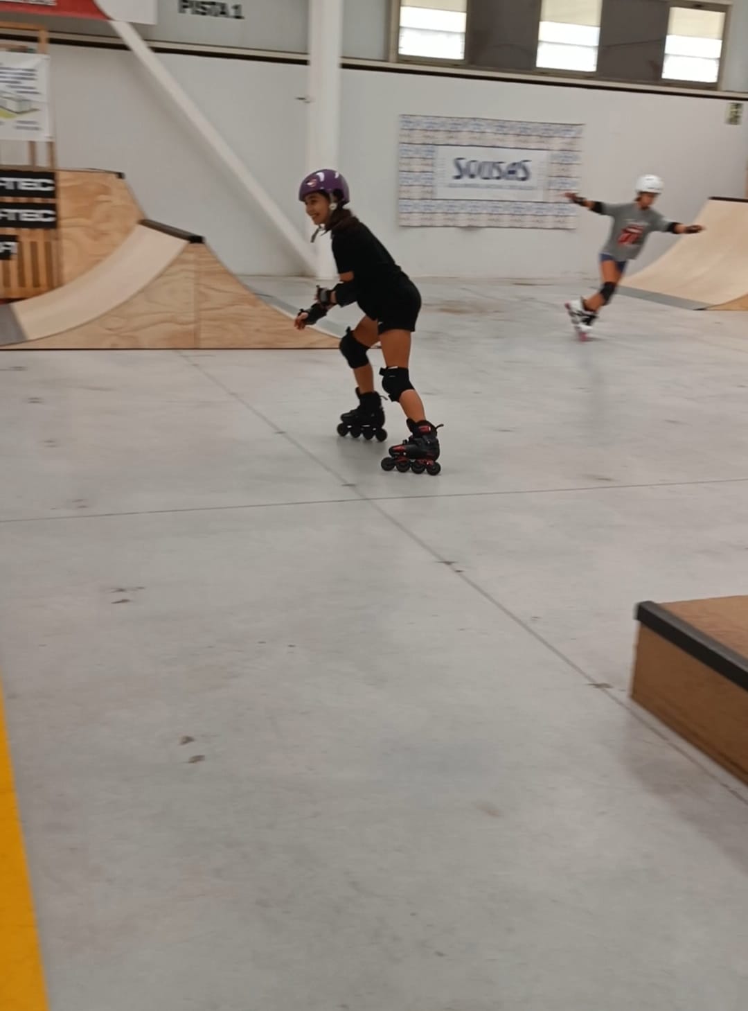 We have 400 athletes ranging from 3 to 70 years old. From beginner to competitive. Disciplines: Recreational skating, freestyle skating, street skating, inline figure skating, and skateboarding.