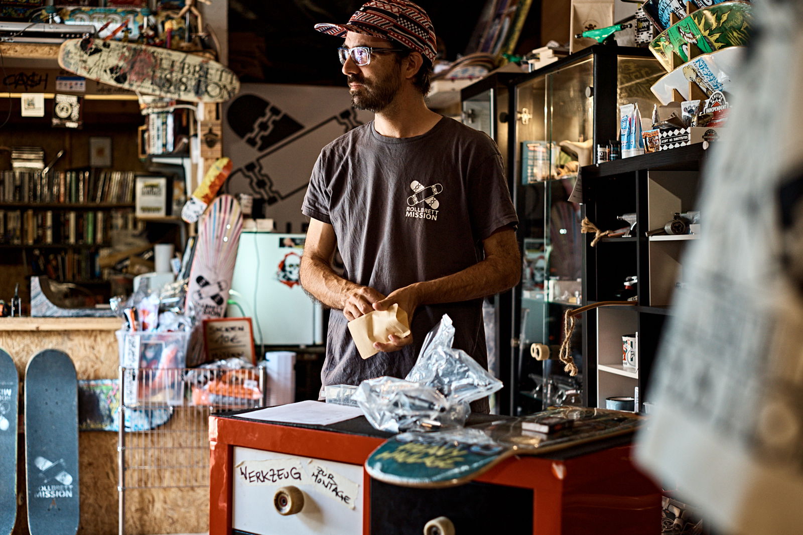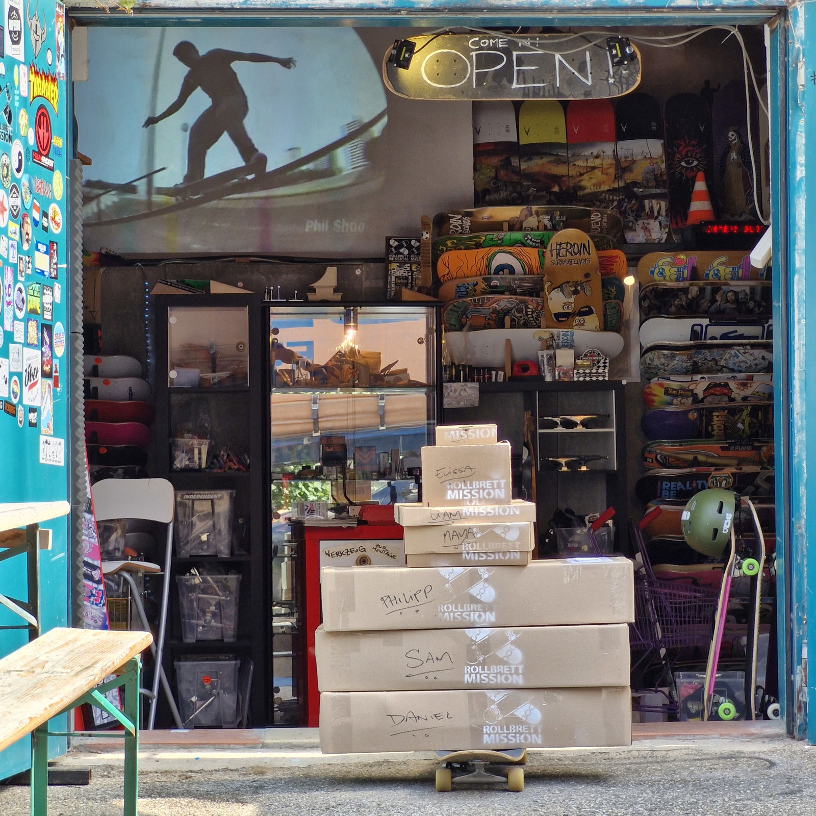 Skater owned shop right next to the skatepark. Huge hardware collection, a skateboard and skatemedia museum, and the owner is always up for a little skate session.