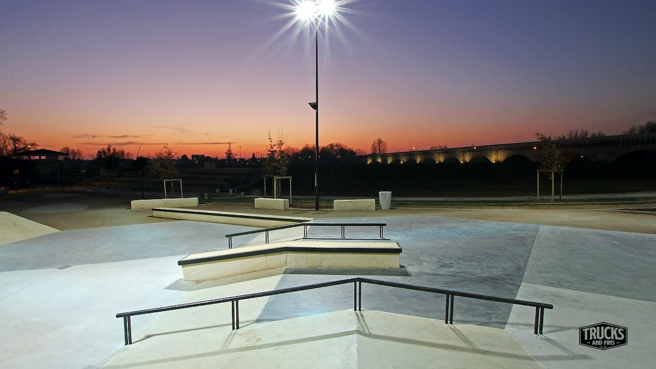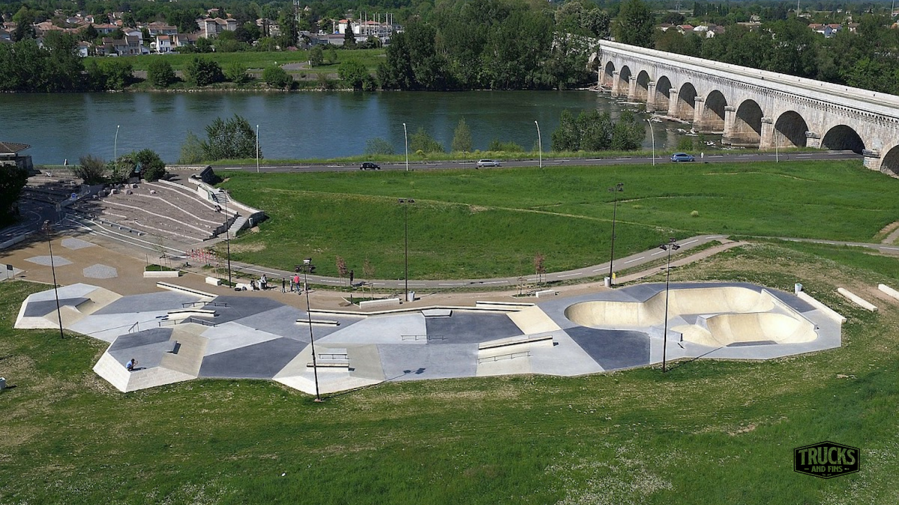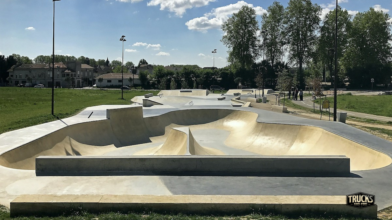 The 1360 square meter Agen skatepark is a concrete park made up of a bowl and street section. The skatepark opened in 2016 for a total cost of 355000€.