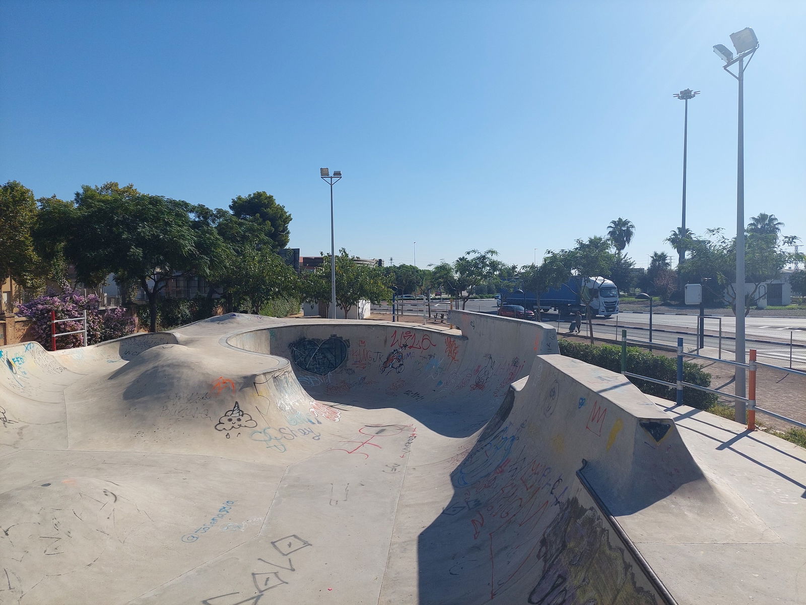 Albal Ignacio Echeverria skatepark is a concrete flowpark with an openbowl.