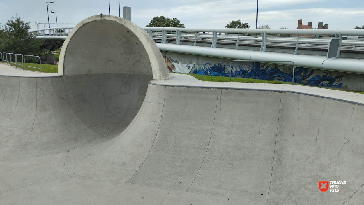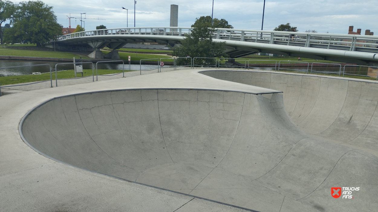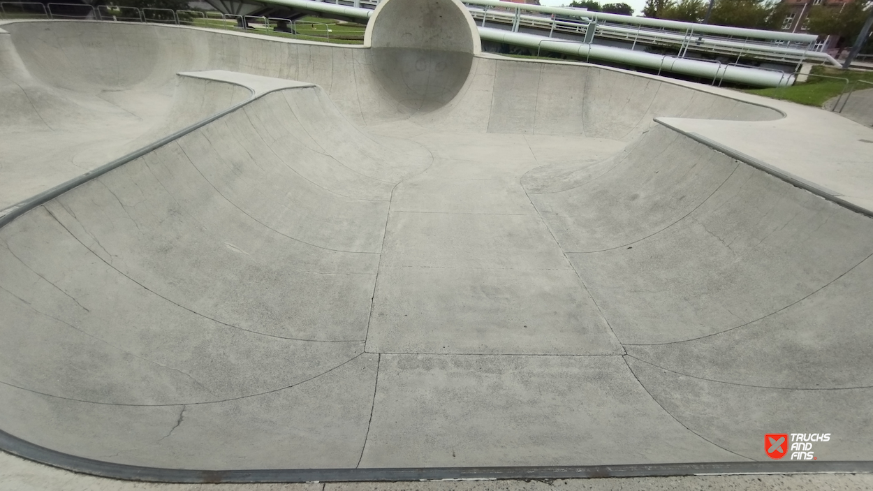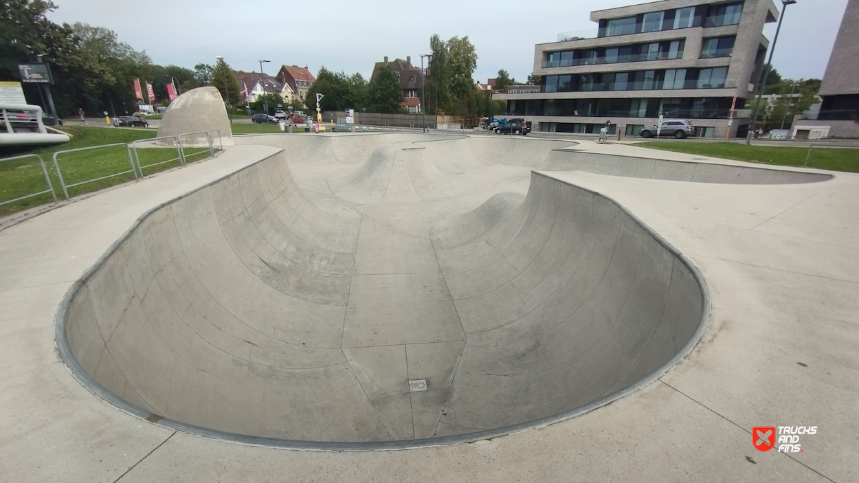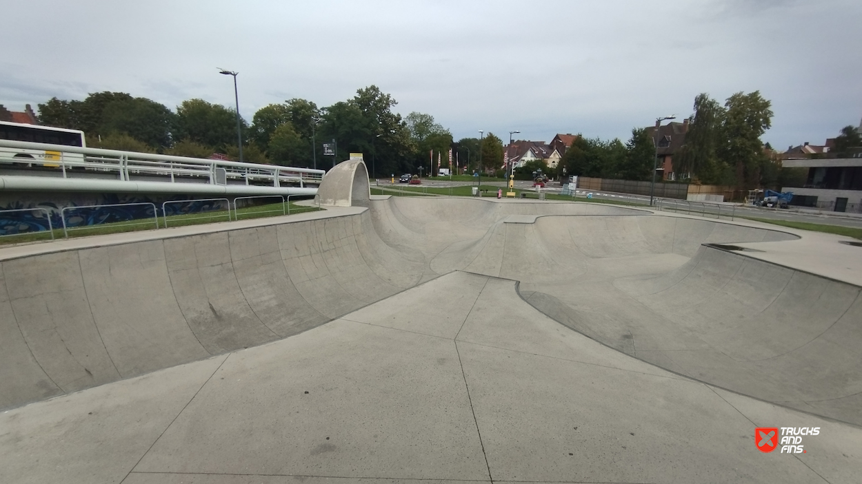 The skate-bowl in Albertpark is the biggest in the Benelux. Basically it‘s a bucket list spot for everybody visiting Belgium. The bowl was originally built by the American skatepark construction company TeamPain skatepark in 2004 and in 2017 Concrete Matters was responsible for the renovation of the skatepark.