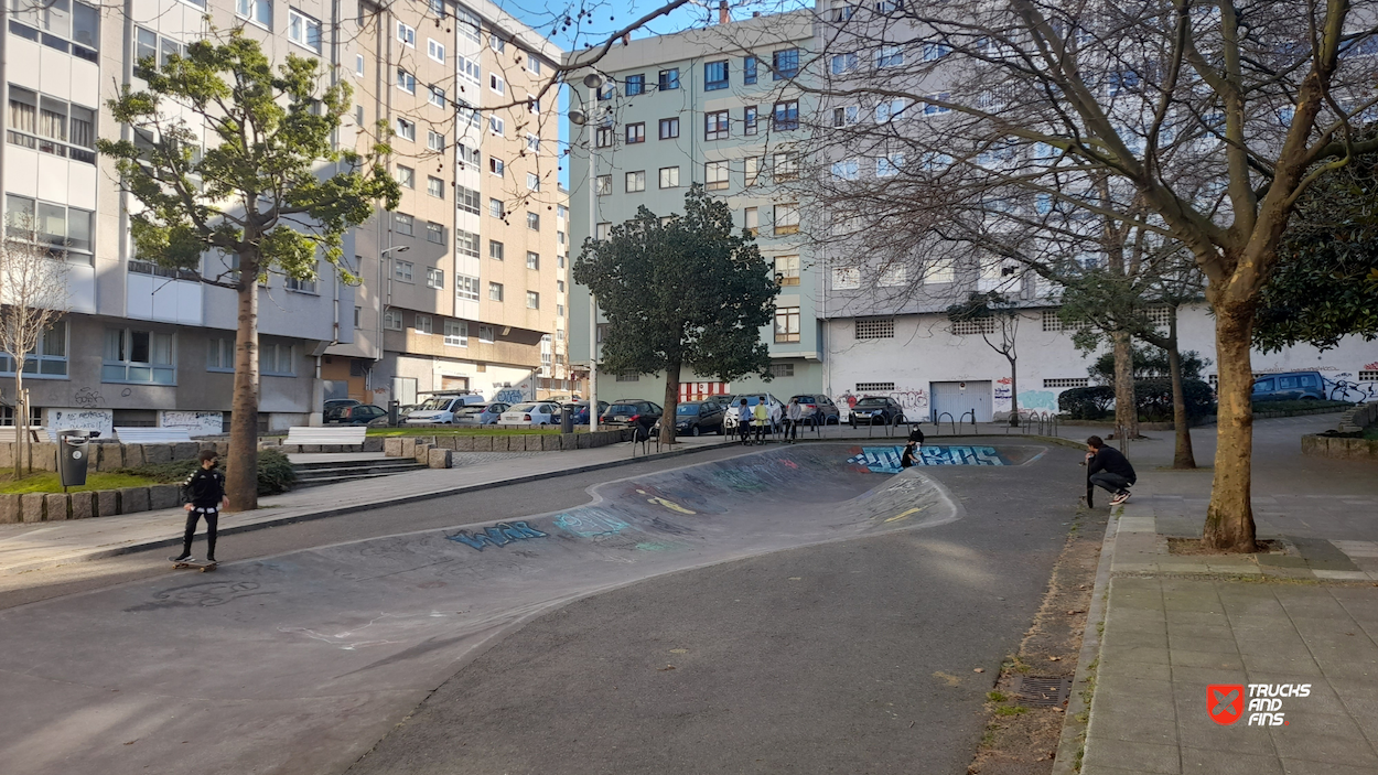 Alcalde Peñamaría skatepark is a concrete skatepark featuring an open bowl.