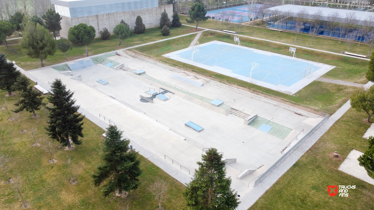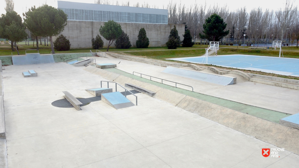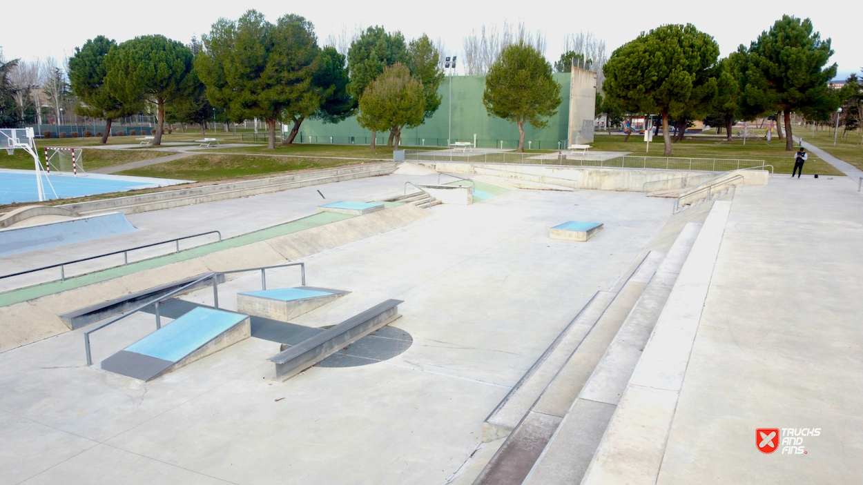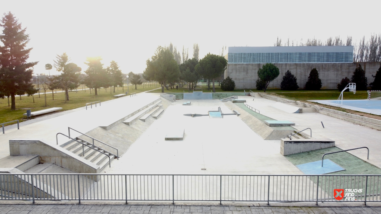 Aldehuela skatepark is a concrete street focused park featuring ledges, rails and multiple stairsets.