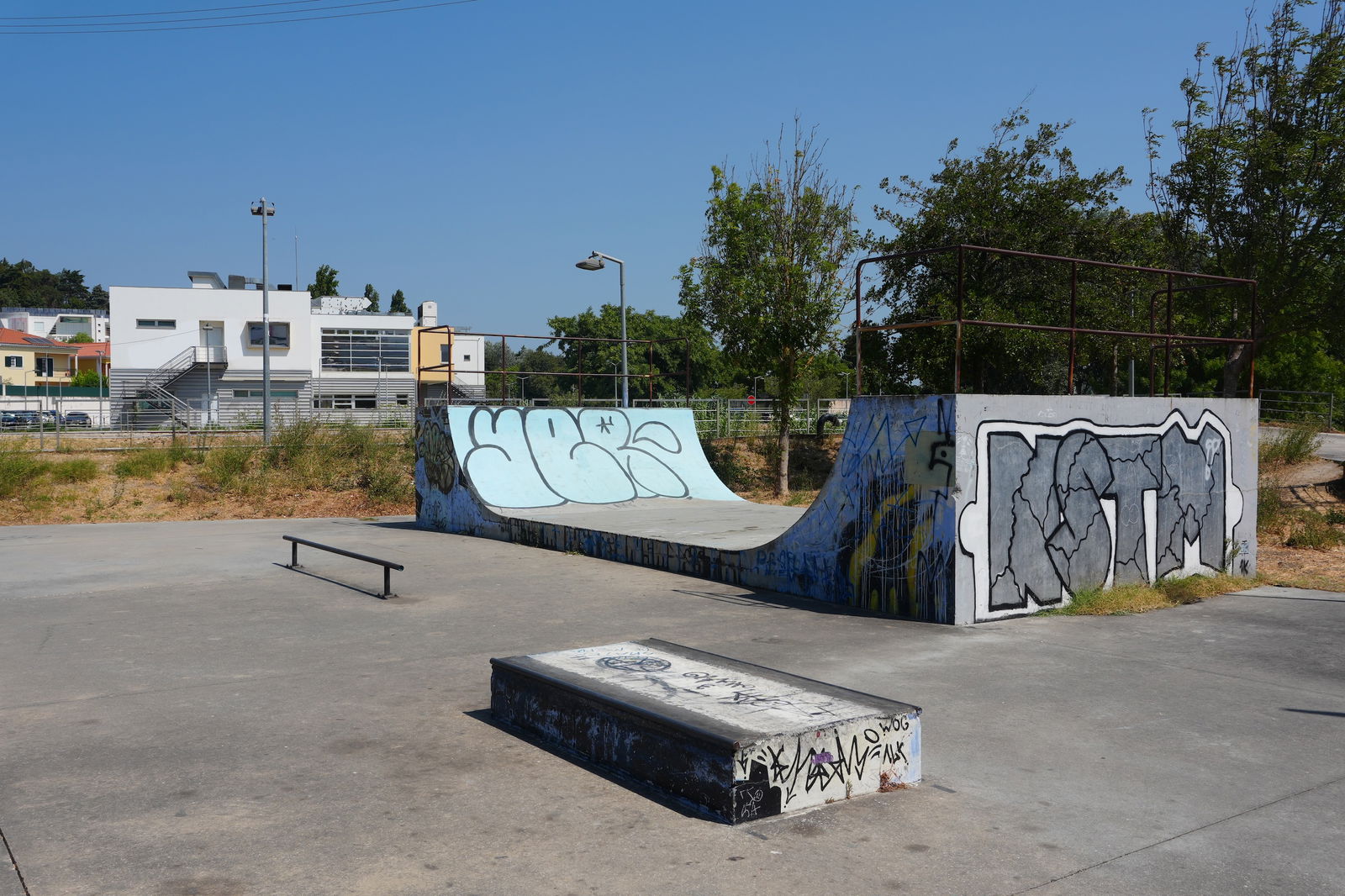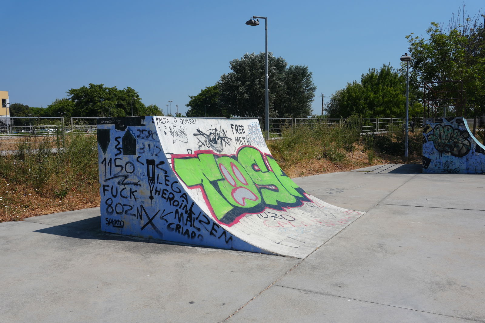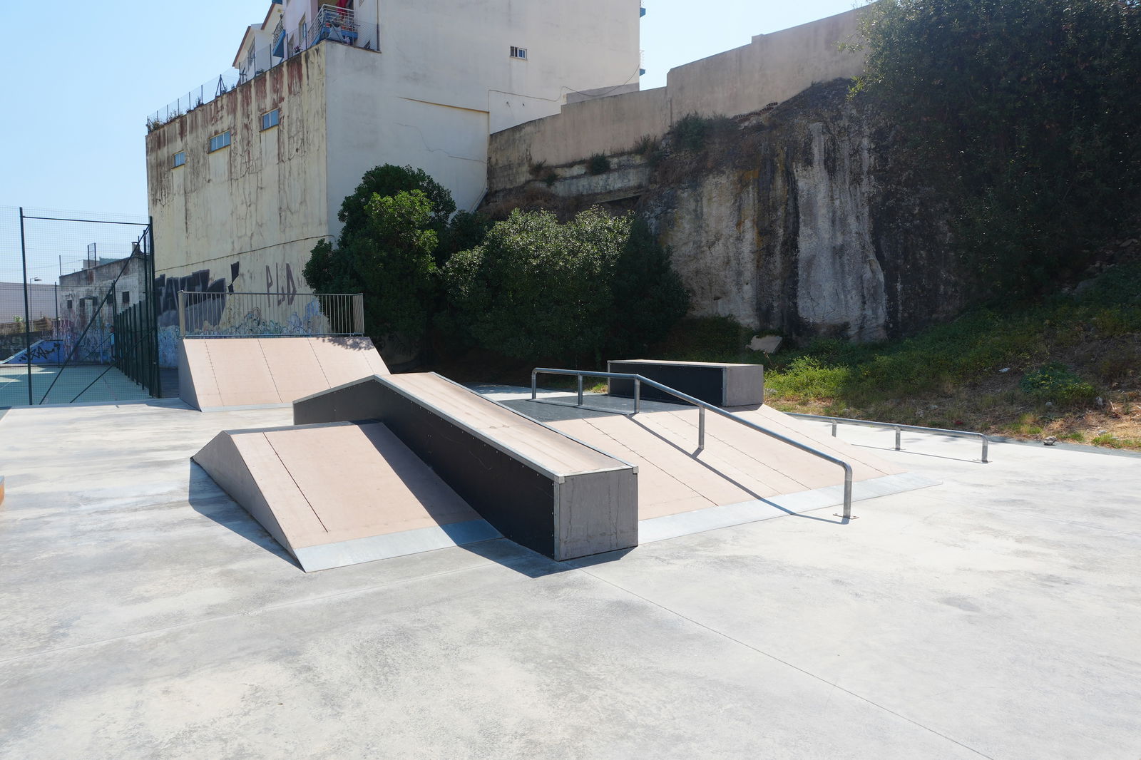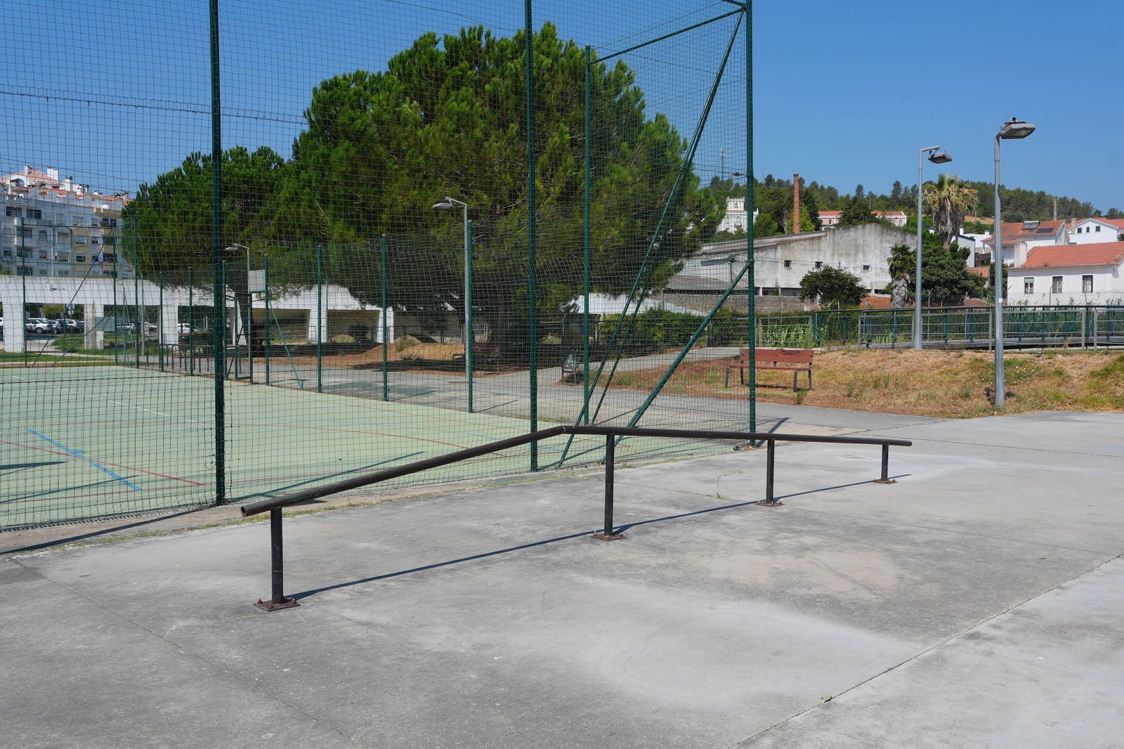 Alenquer is Portuguese municipality in the district of Lisbon, with a population of 44428 (2021 Census). In Parque Urbano da Romeira park in Alenquer you will find the skatepark of Alenquer. The park is made up of a concrete miniramp and several basic skateboarding obstacles in a back and forth setup.