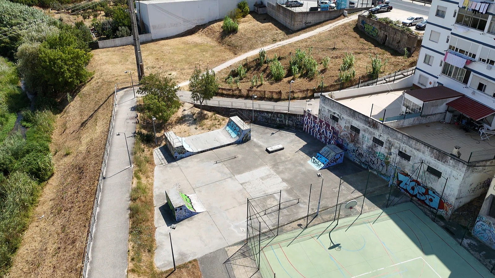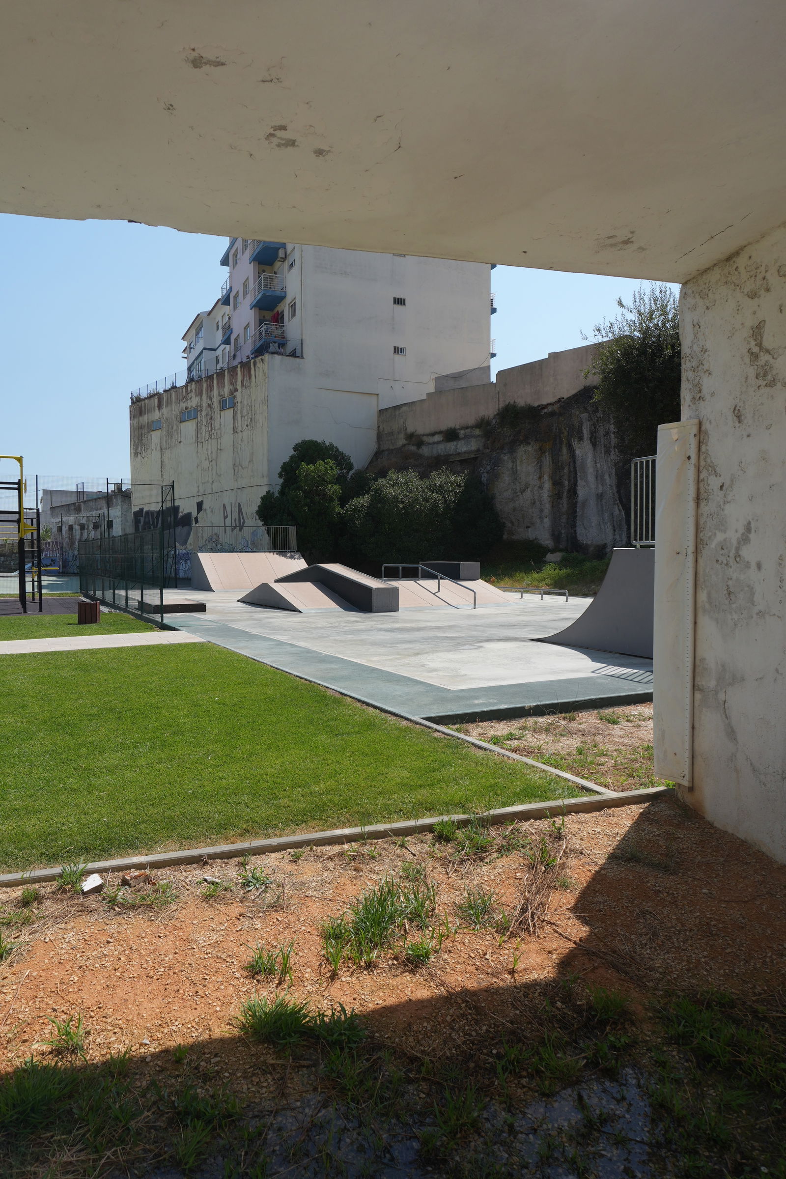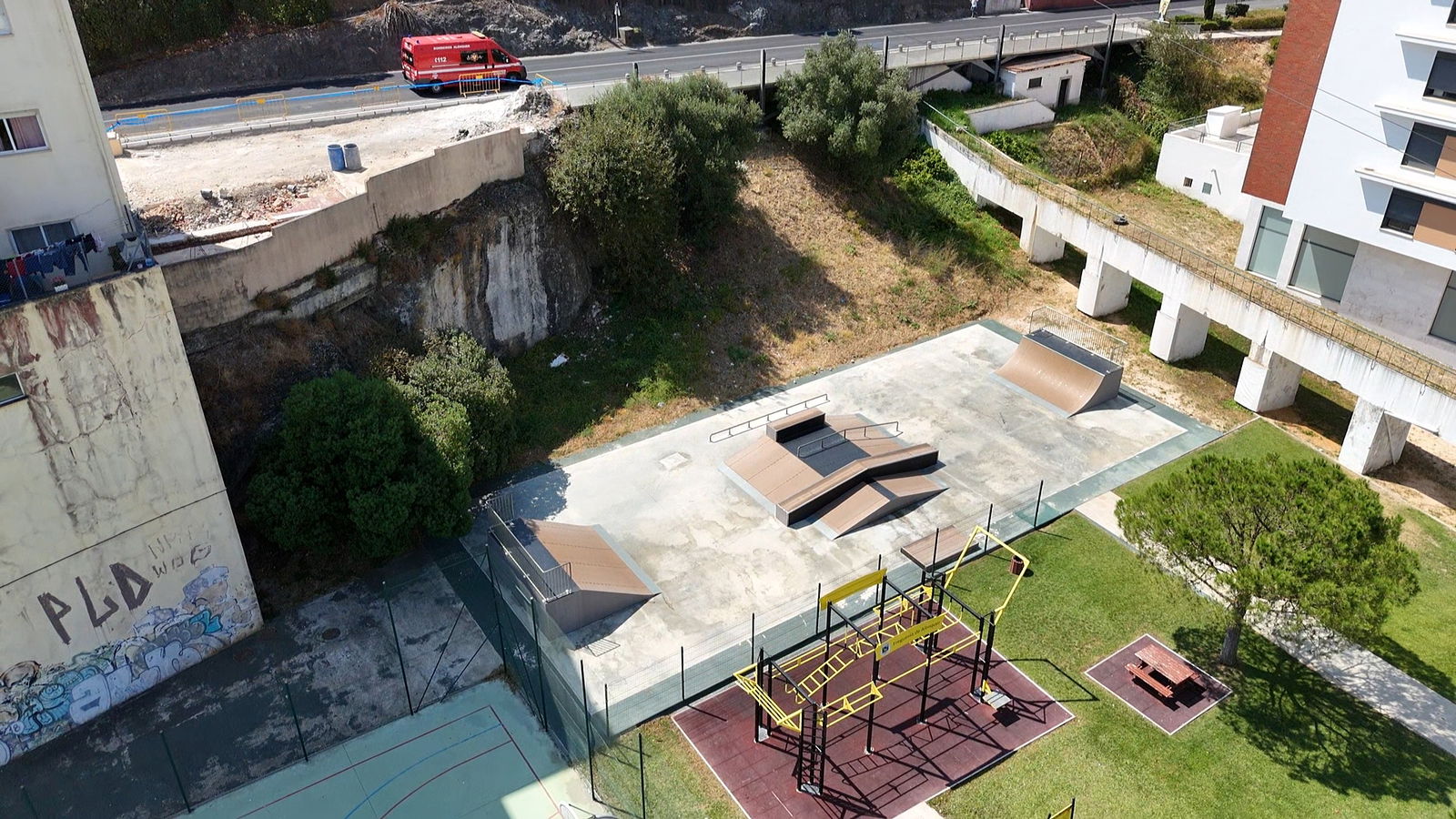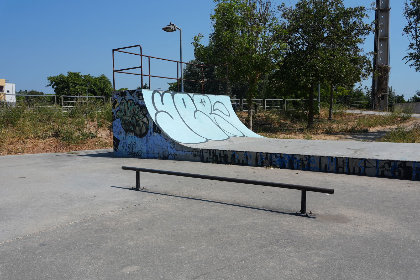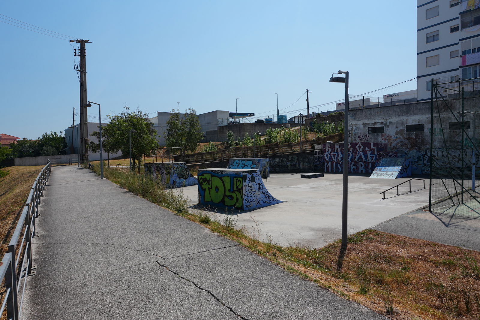 Alenquer is Portuguese municipality in the district of Lisbon, with a population of 44428 (2021 Census). In Parque Urbano da Romeira park in Alenquer you will find the skatepark of Alenquer. The park is made up of a concrete miniramp and several basic skateboarding obstacles in a back and forth setup.