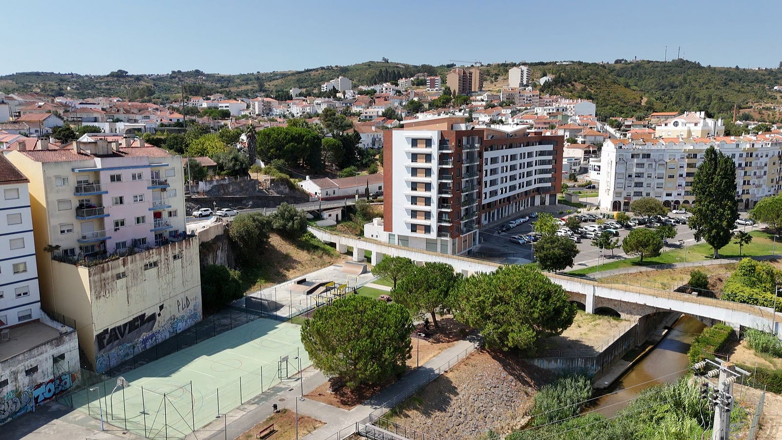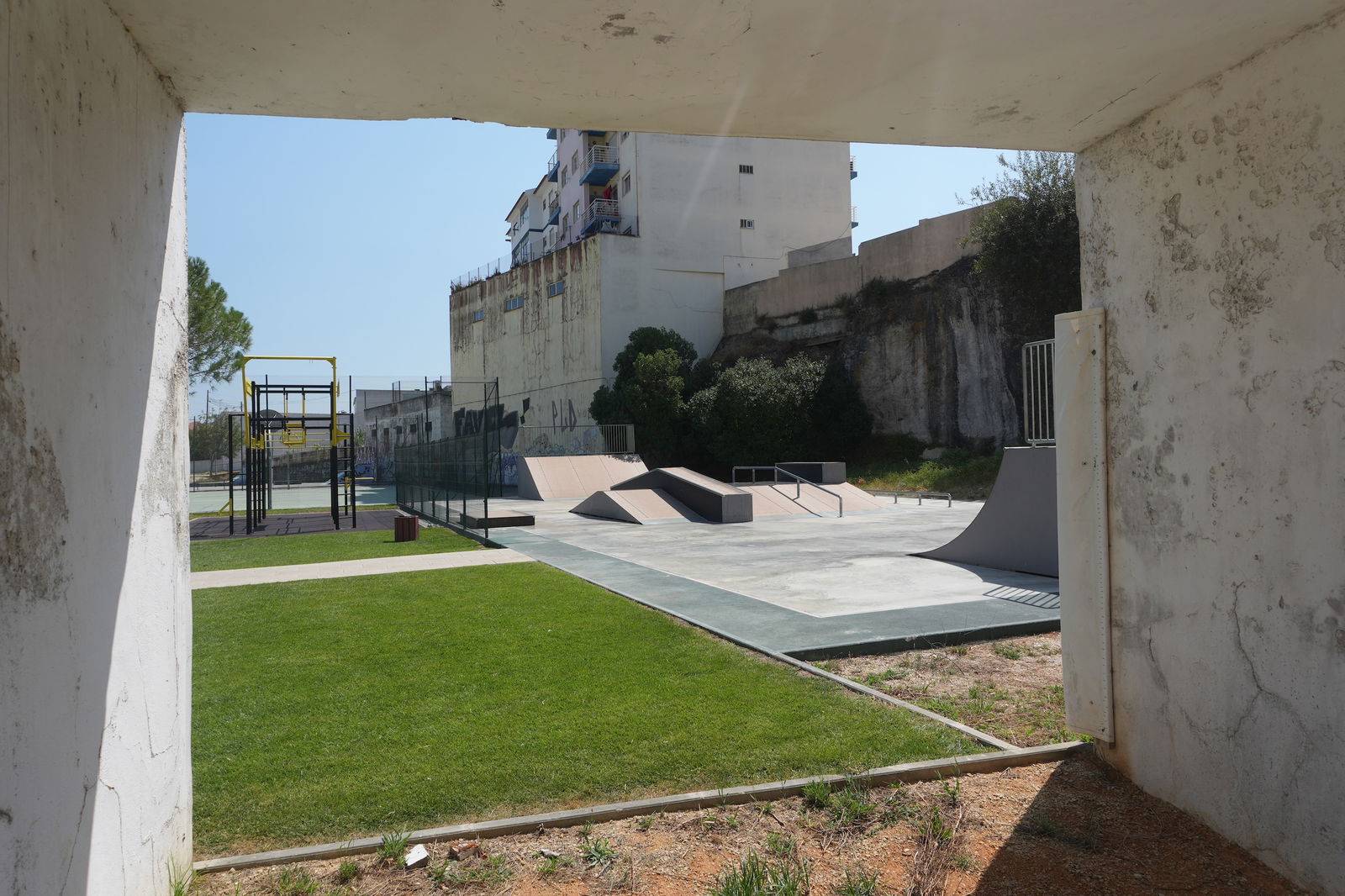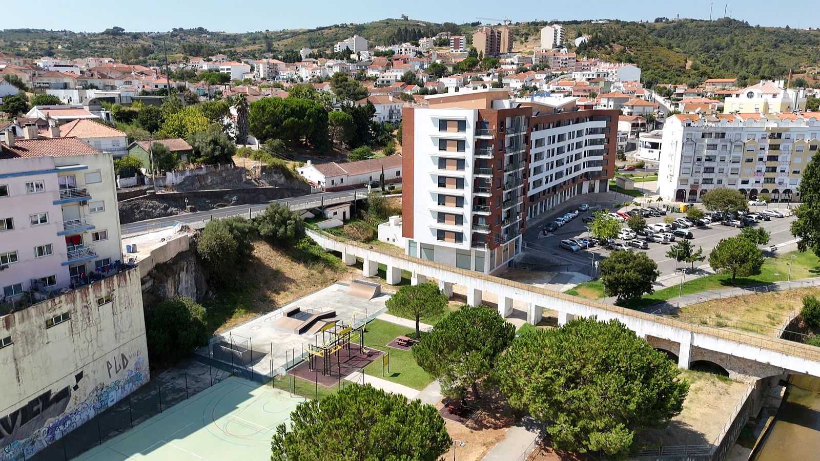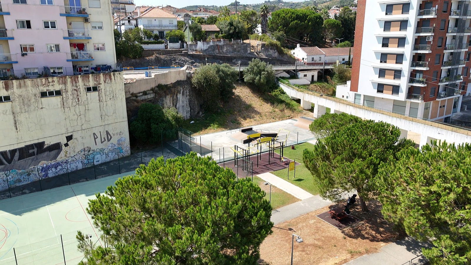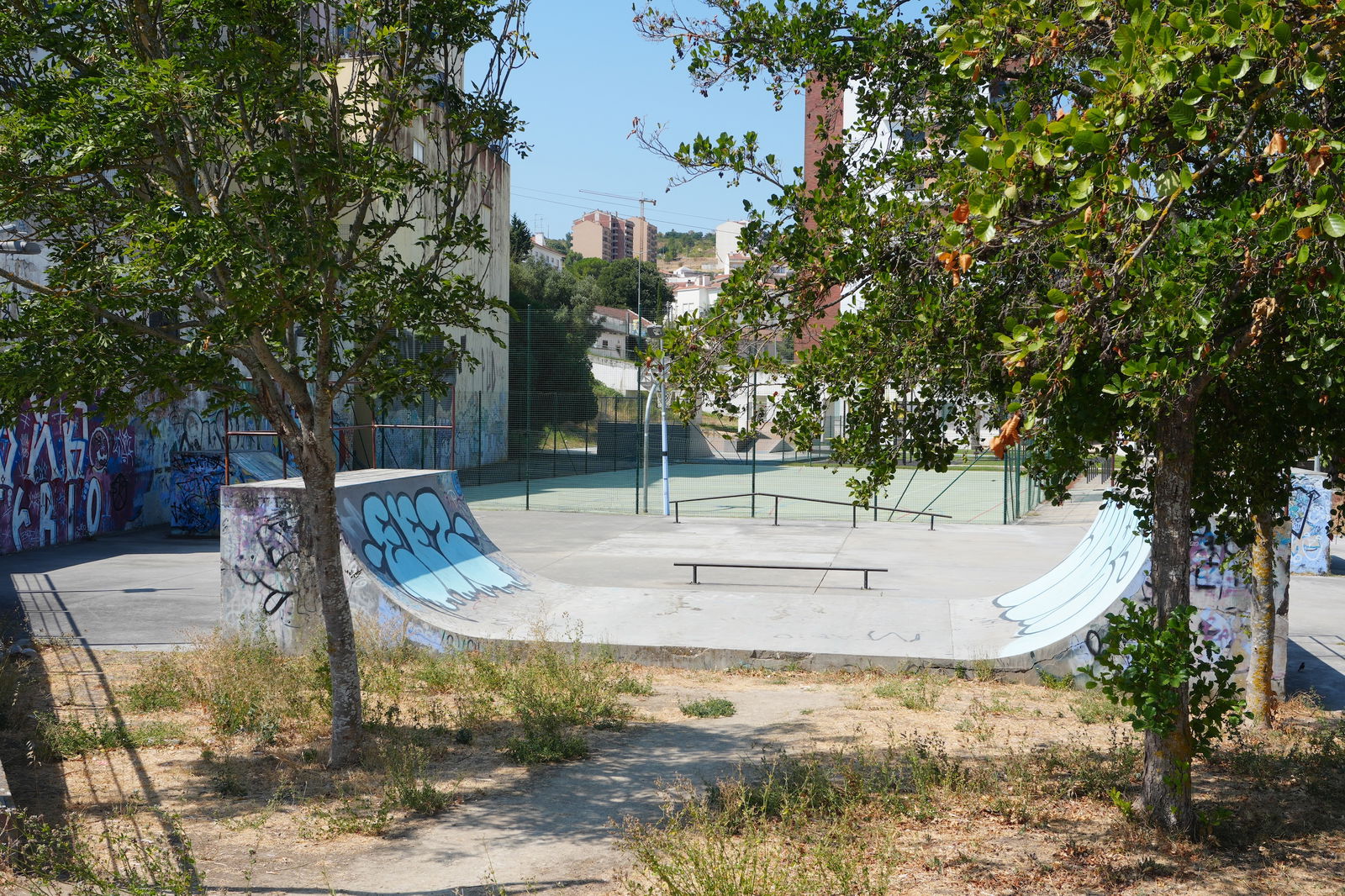Alenquer is Portuguese municipality in the district of Lisbon, with a population of 44428 (2021 Census). In Parque Urbano da Romeira park in Alenquer you will find the skatepark of Alenquer. The park is made up of a concrete miniramp and several basic skateboarding obstacles in a back and forth setup.