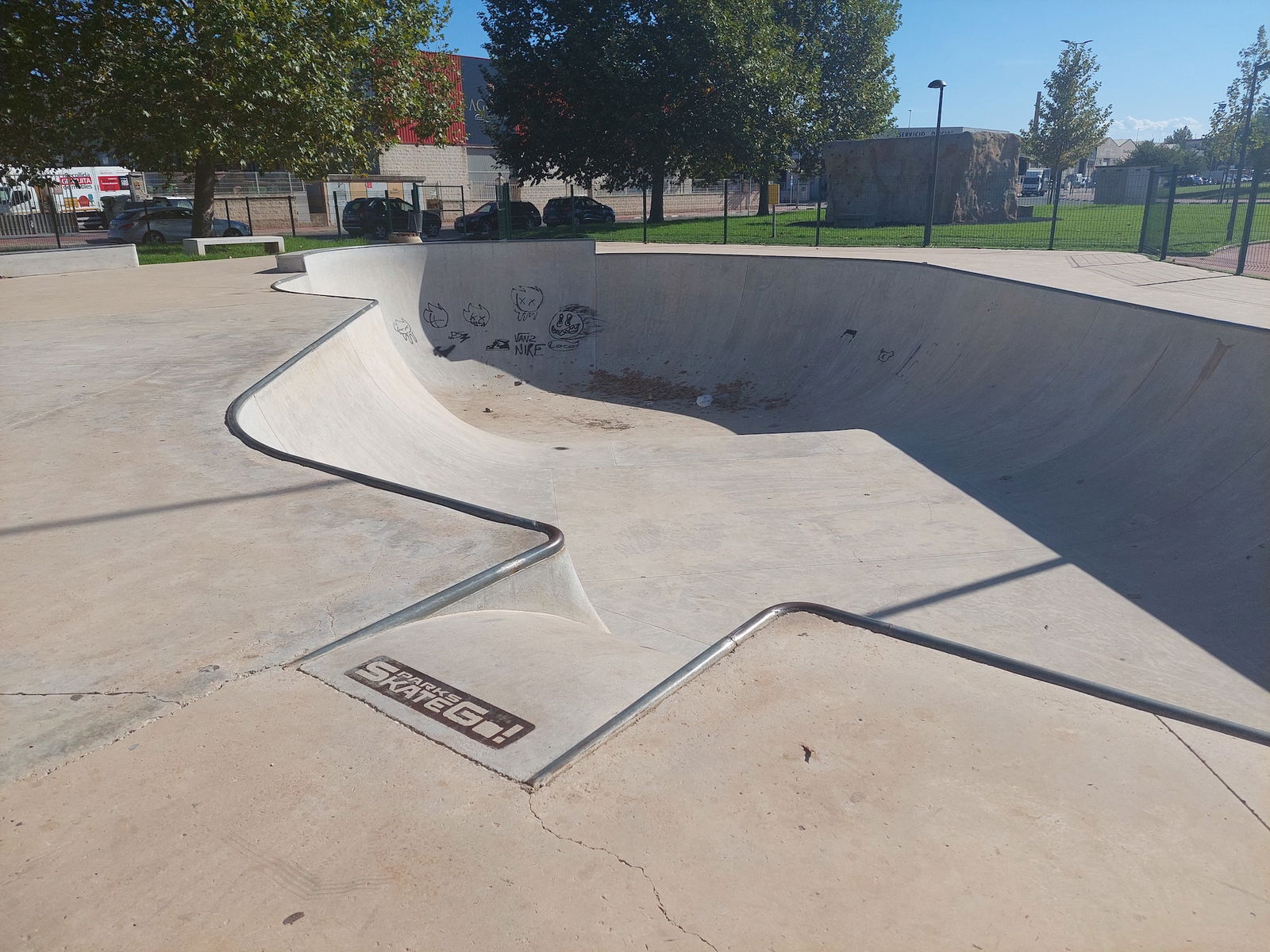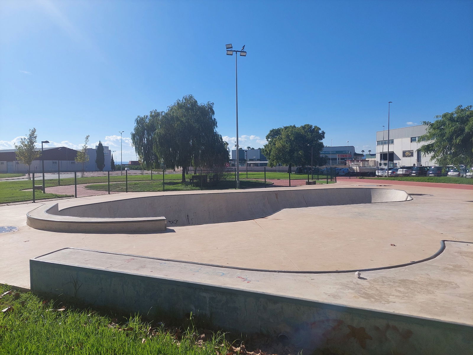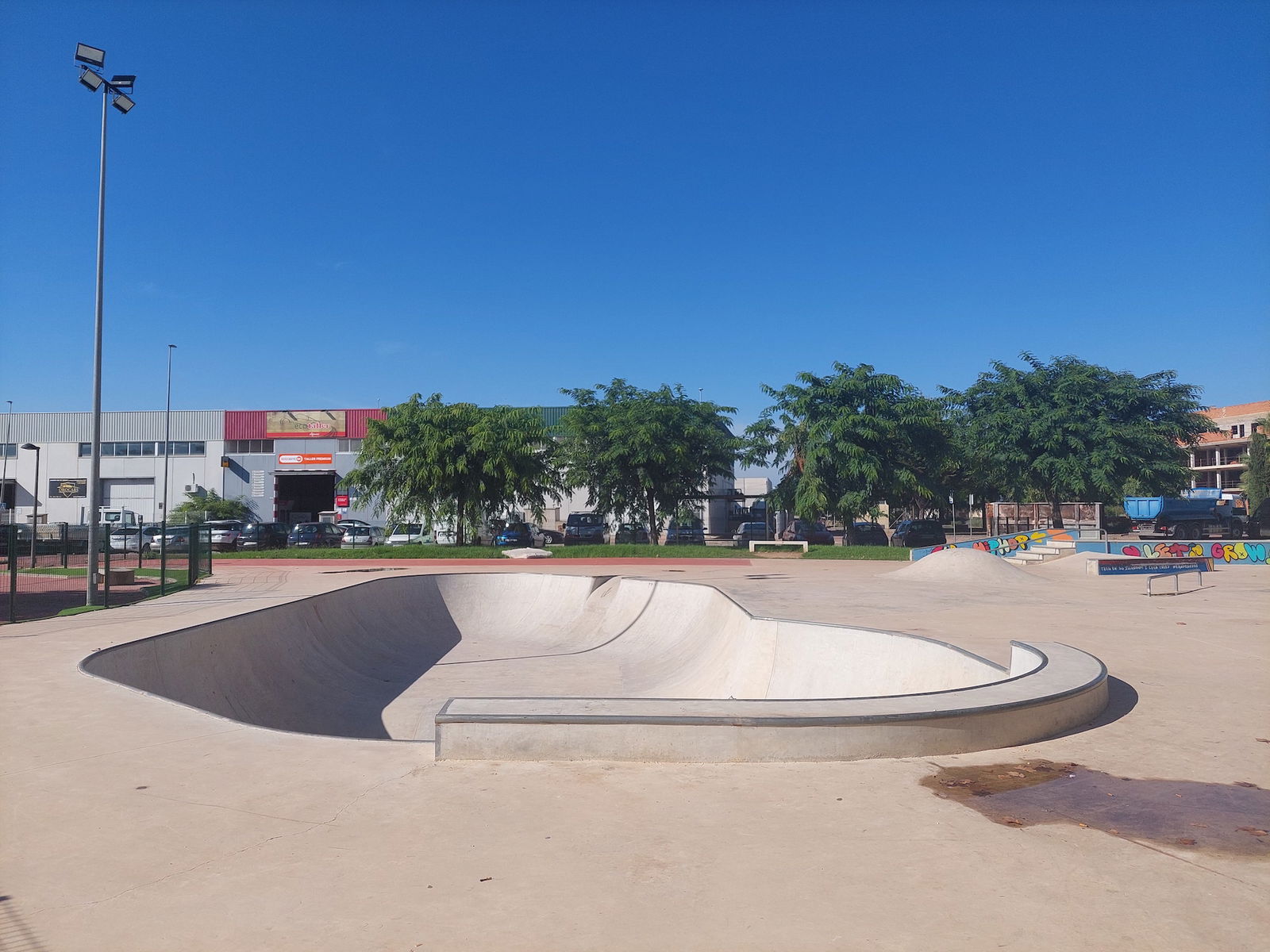 Algemesí skatepark is a concrete park featuring a bowl and a large transition area with built in street elements. The skatepark has lights.