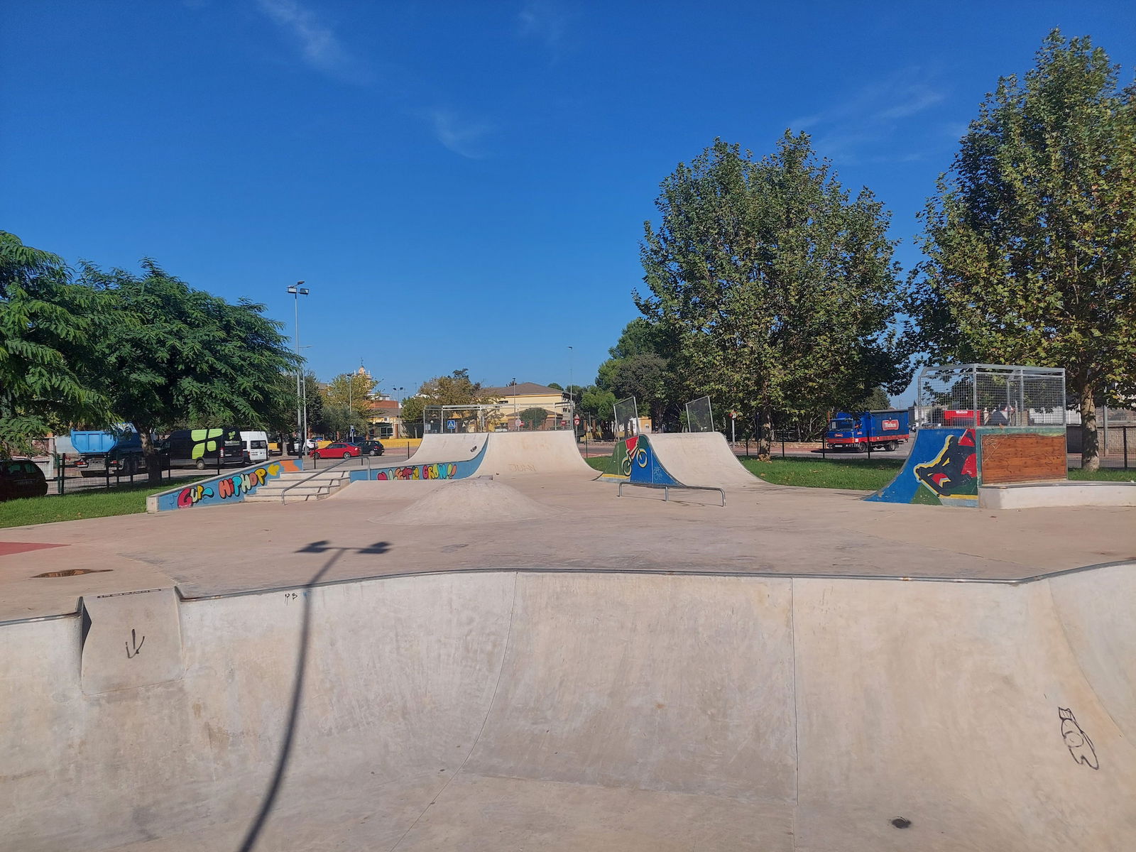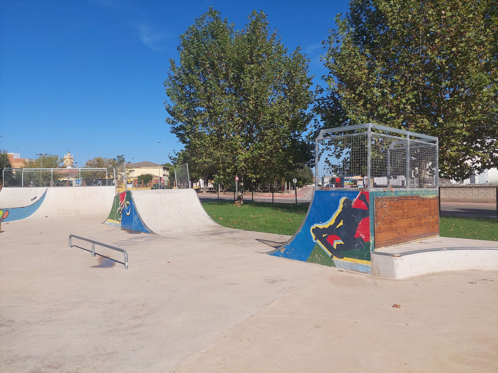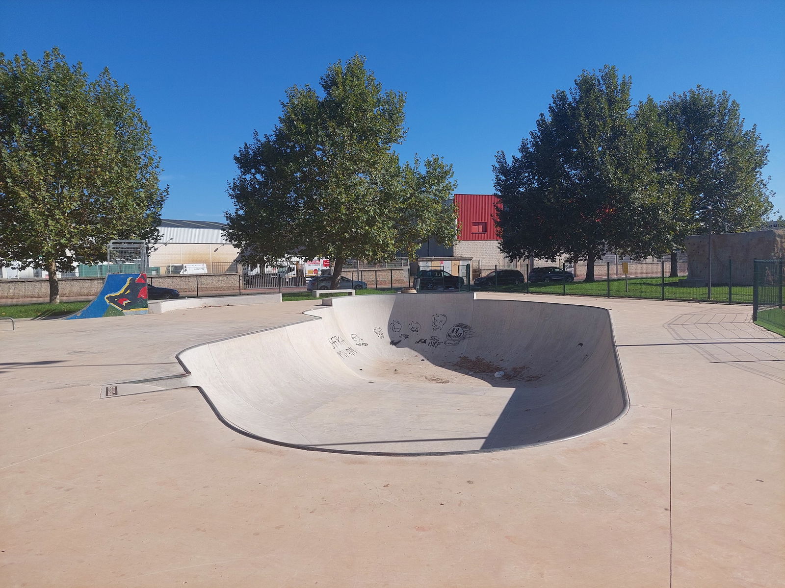 Algemesí skatepark is a concrete park featuring a bowl and a large transition area with built in street elements. The skatepark has lights.