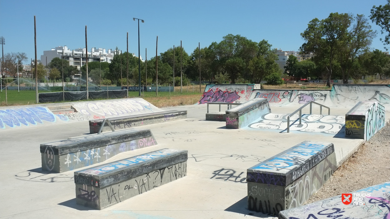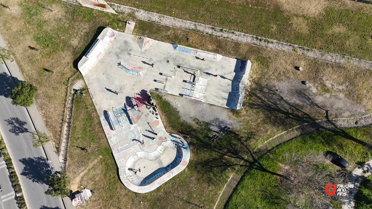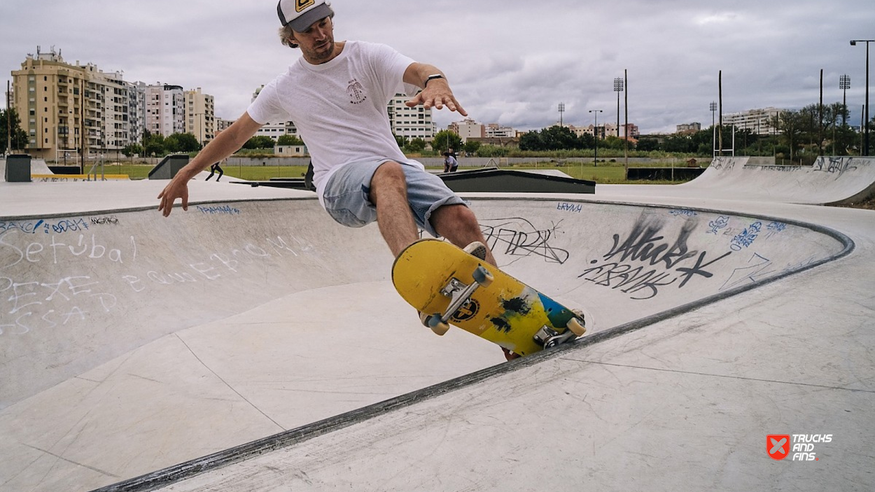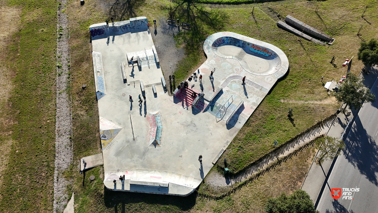 Setubal Skatepark, aka Algodeia skatepark, was designed by Francisco Lopez and opened in 2020. The 850 m² skatepark features an area dedicated to street with a nice variety of obstacles in a tight space and a classic kidney shaped bowl. The skatepark is located next to the rugby field in Setubal.