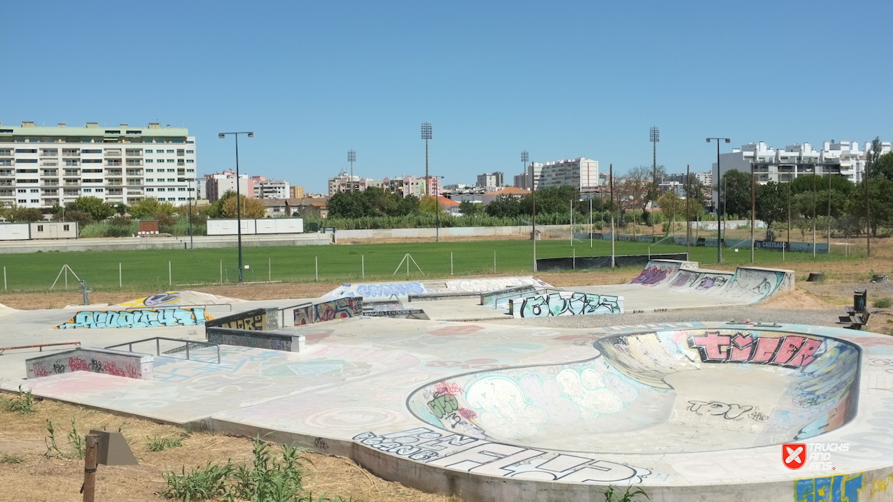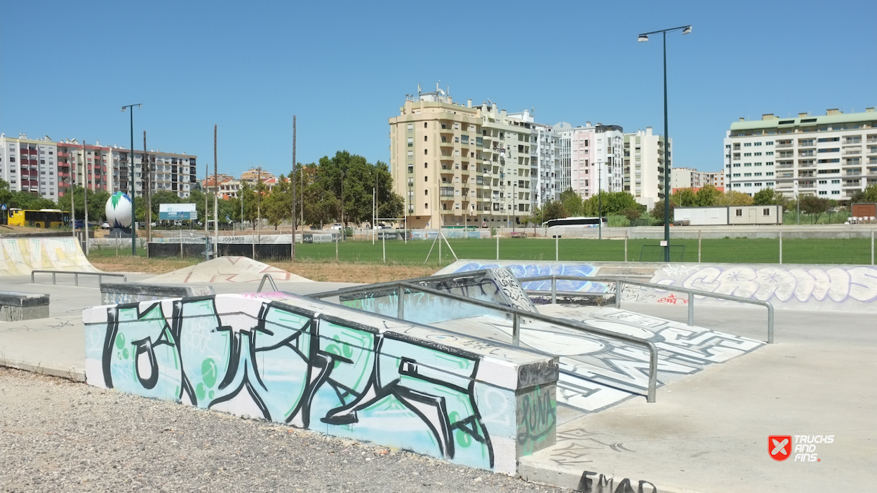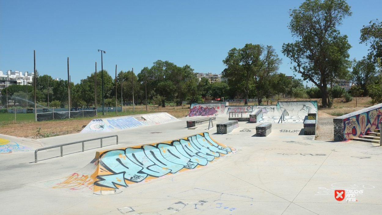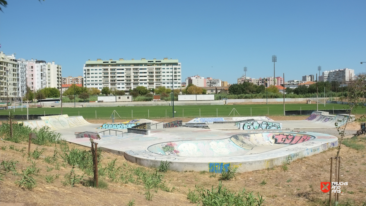Setubal Skatepark, aka Algodeia skatepark, was designed by Francisco Lopez and opened in 2020. The 850 m² skatepark features an area dedicated to street with a nice variety of obstacles in a tight space and a classic kidney shaped bowl. The skatepark is located next to the rugby field in Setubal.