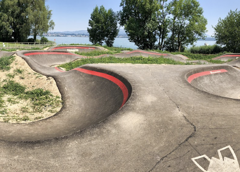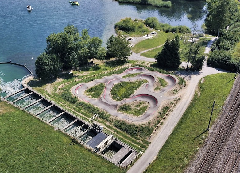 The pump track Altendorf opened on June 22, 2019 is located directly on the Obersee (lower part of Lake Zurich). It is also called Seeweg-Haab Altendorf Pumptrack.