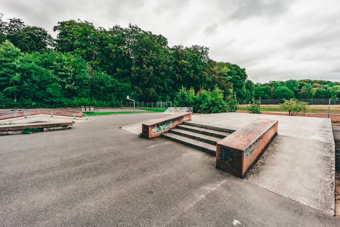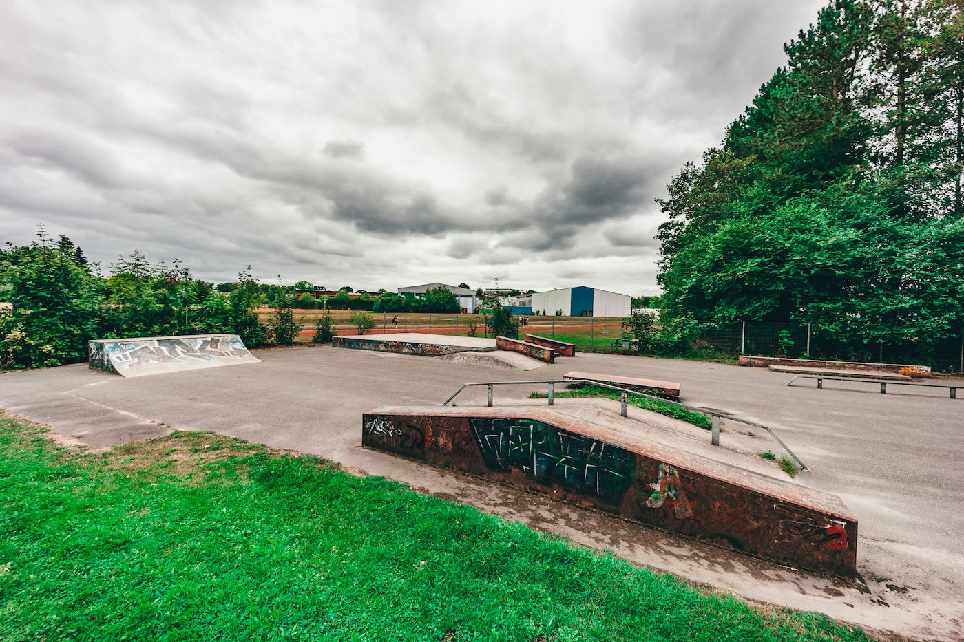 Altenholz Skatepark is a modular concrete park with a funbox, a large step-up module with stairs and hubbas and some other obstacles.