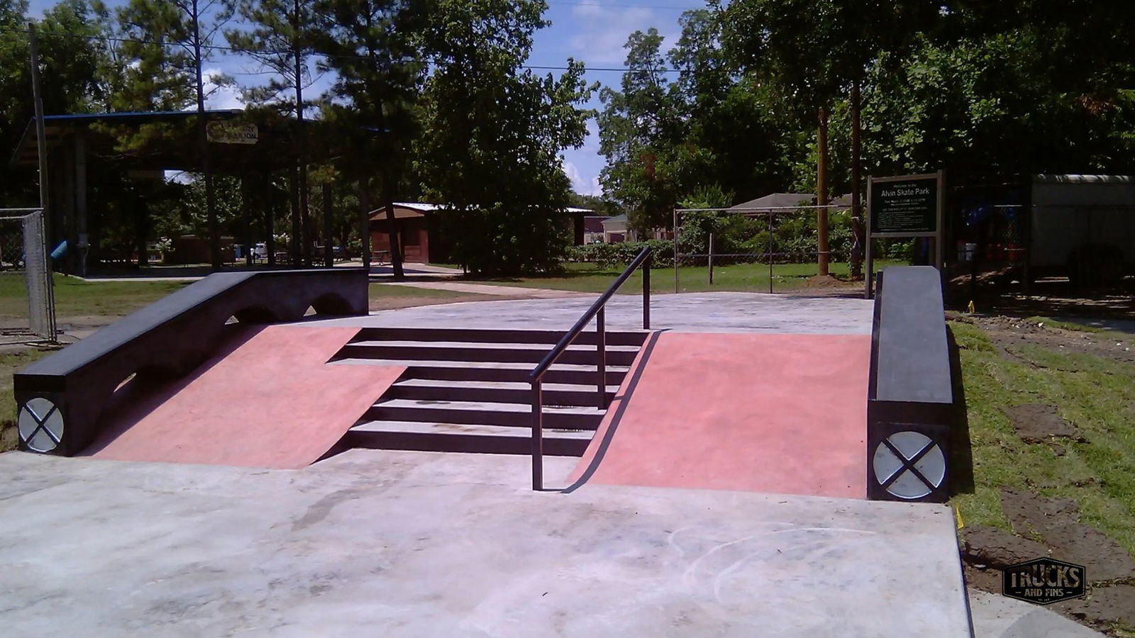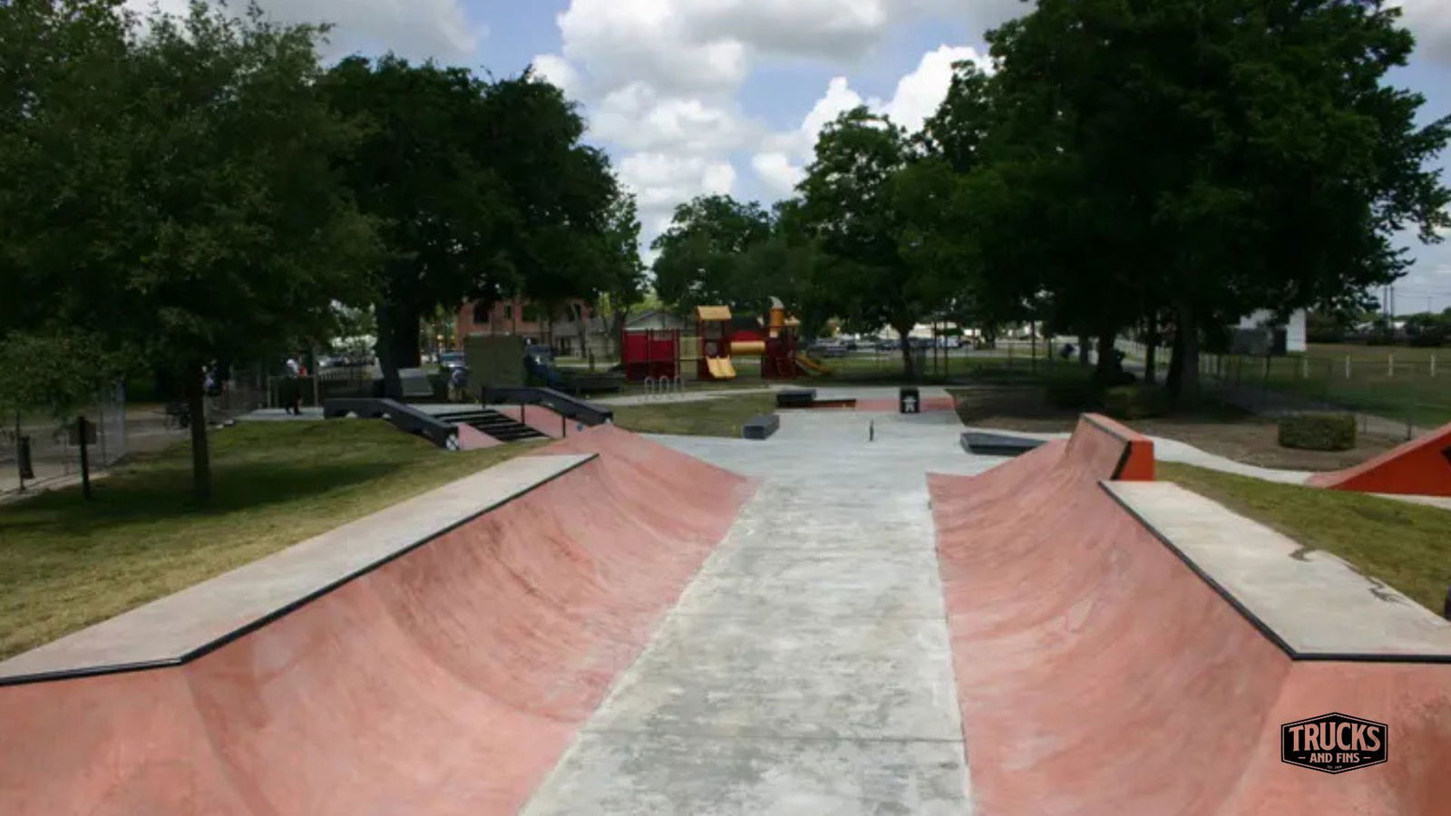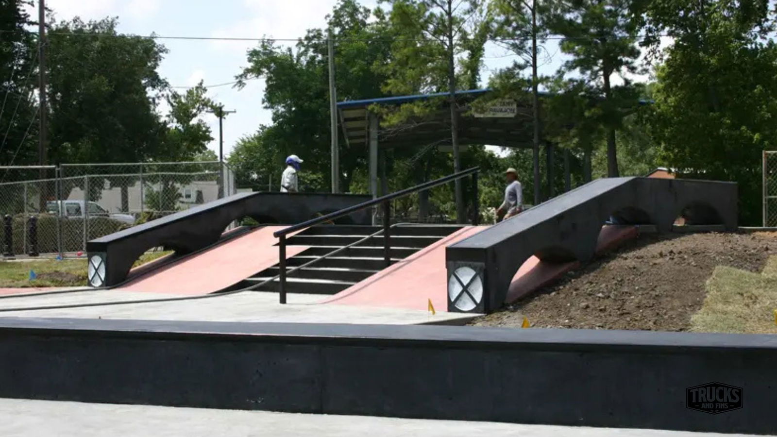 The Alvin, Texas Skatepark Plaza, located in the heart of the city's beloved National Oak Park, sits just a few blocks from City Hall and the downtown business district. The project began with SPA Skateparks leading a site selection process alongside the City Council and Parks Board, resulting in a unanimous recommendation to build within this well-used and centrally located park. Known as a community gathering space, the site already hosted citywide events and is connected to other parks via a network of walking trails.