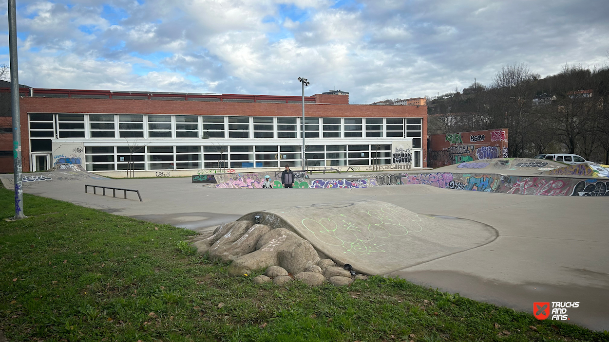 The Andoáin Skatepark in Gipuzkoa, Spain, is a modern concrete skatepark that was completed in 2019. The facility covers approximately 900 square meters. The park features a combination of transition and street elements, including a bowl, manual pads, a flat rail, banks, and a quarterpipe.