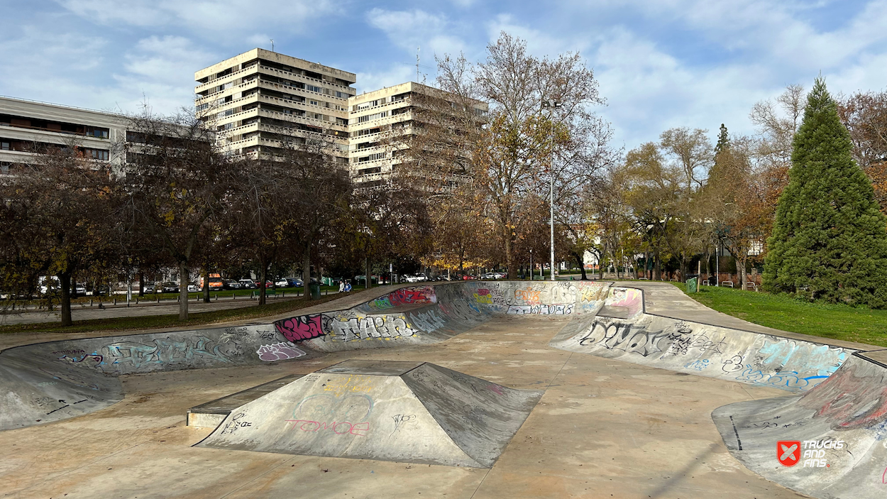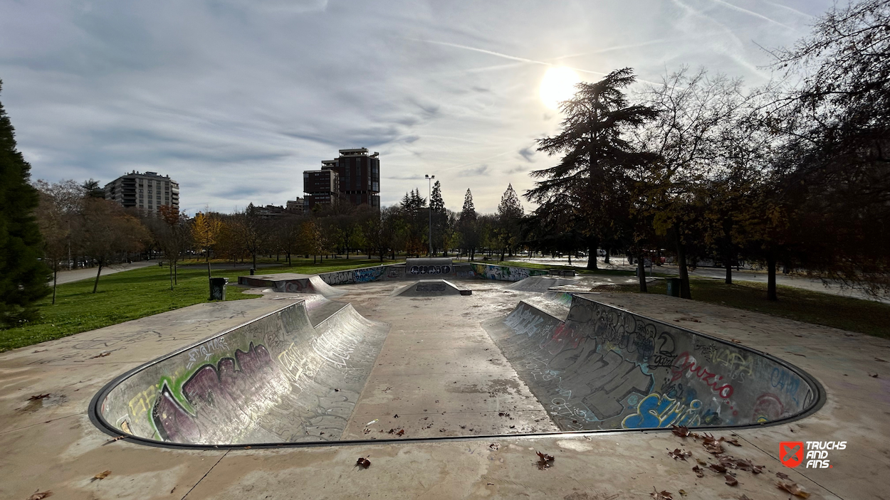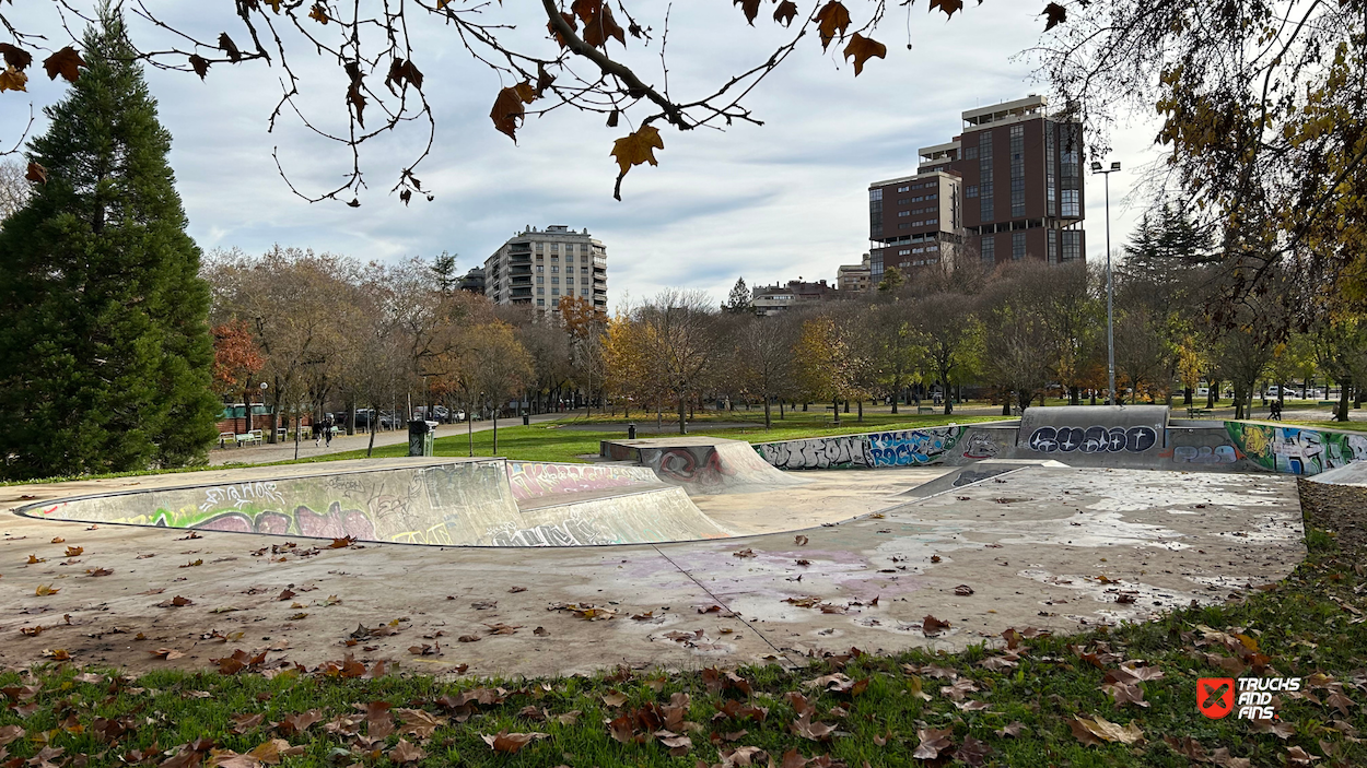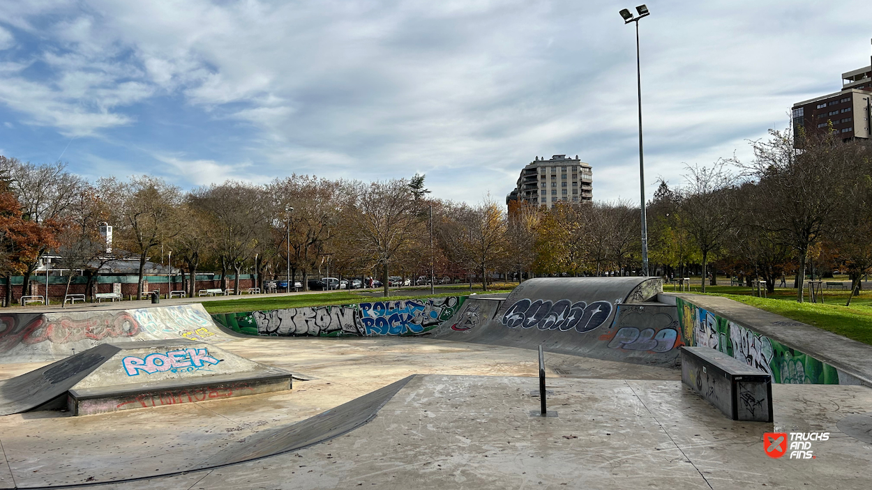 Antoniutti skatepark, aka Pamplona skatepark is a concrete park designed by Daniel Yabar. Situated in a central area of the city, near prominent green spaces like the Jardines de la Taconera and the Ciudadela de Pamplona, the park offers a blend of recreation and relaxation. Originally built in 1977, it features designated areas for various activities, including two spaces dedicated to skating. One of these is the Antoniutti Skatepark, a well-equipped facility for skateboarding enthusiasts, while the other is an asphalt skating ring that encircles the skatepark, providing additional space for inline skating or casual skating. This dual setup makes the park a hub for skaters of all levels, blending modern amenities with its natural surroundings.