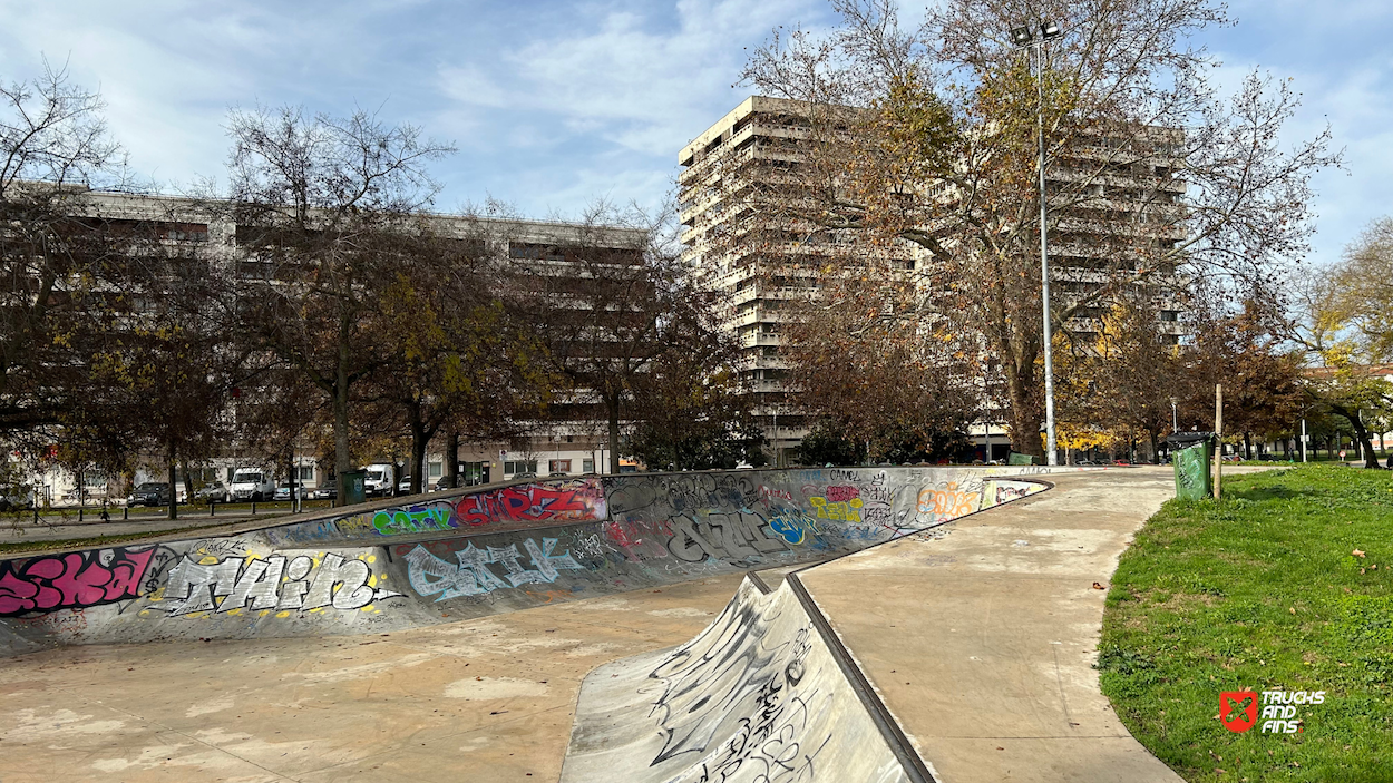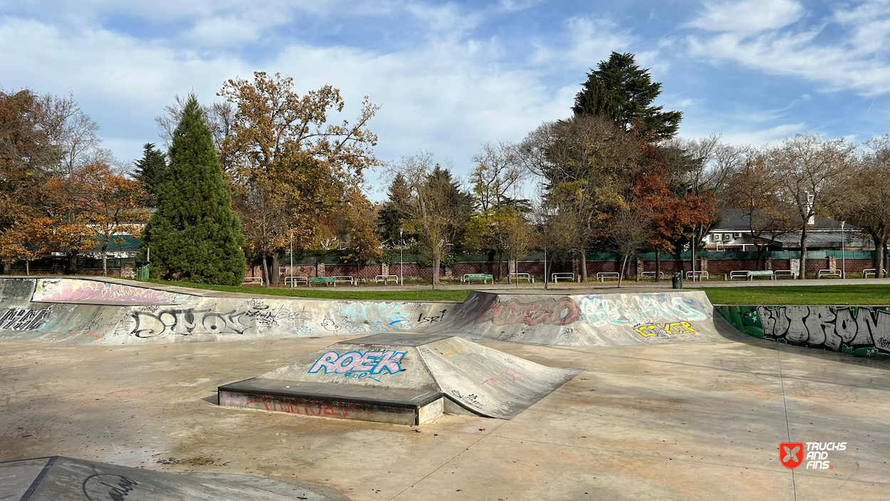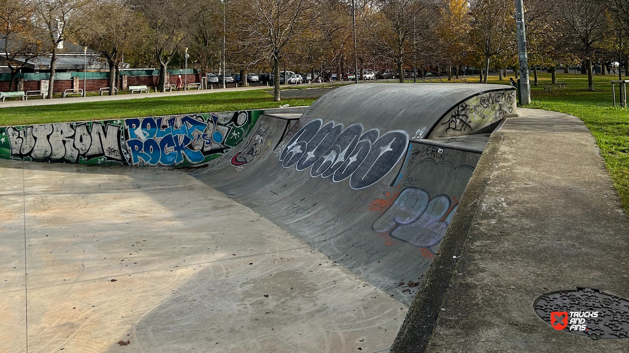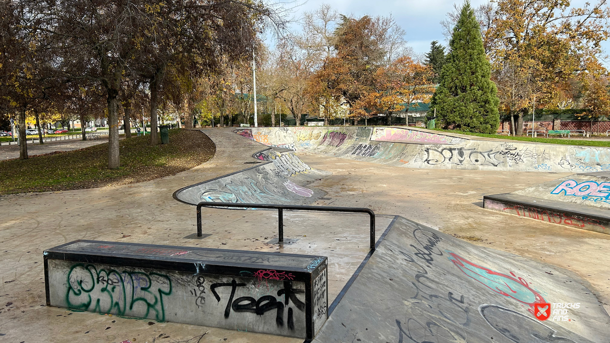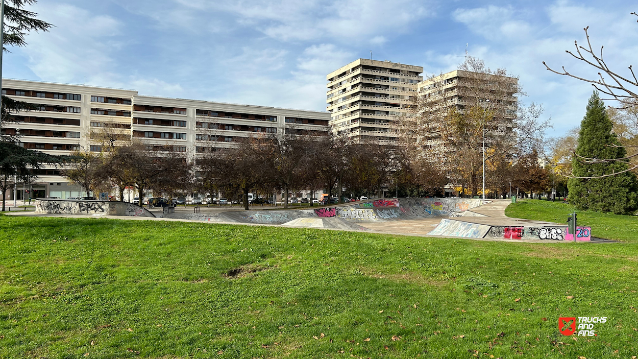 Antoniutti skatepark, aka Pamplona skatepark is a concrete park designed by Daniel Yabar. Situated in a central area of the city, near prominent green spaces like the Jardines de la Taconera and the Ciudadela de Pamplona, the park offers a blend of recreation and relaxation. Originally built in 1977, it features designated areas for various activities, including two spaces dedicated to skating. One of these is the Antoniutti Skatepark, a well-equipped facility for skateboarding enthusiasts, while the other is an asphalt skating ring that encircles the skatepark, providing additional space for inline skating or casual skating. This dual setup makes the park a hub for skaters of all levels, blending modern amenities with its natural surroundings.