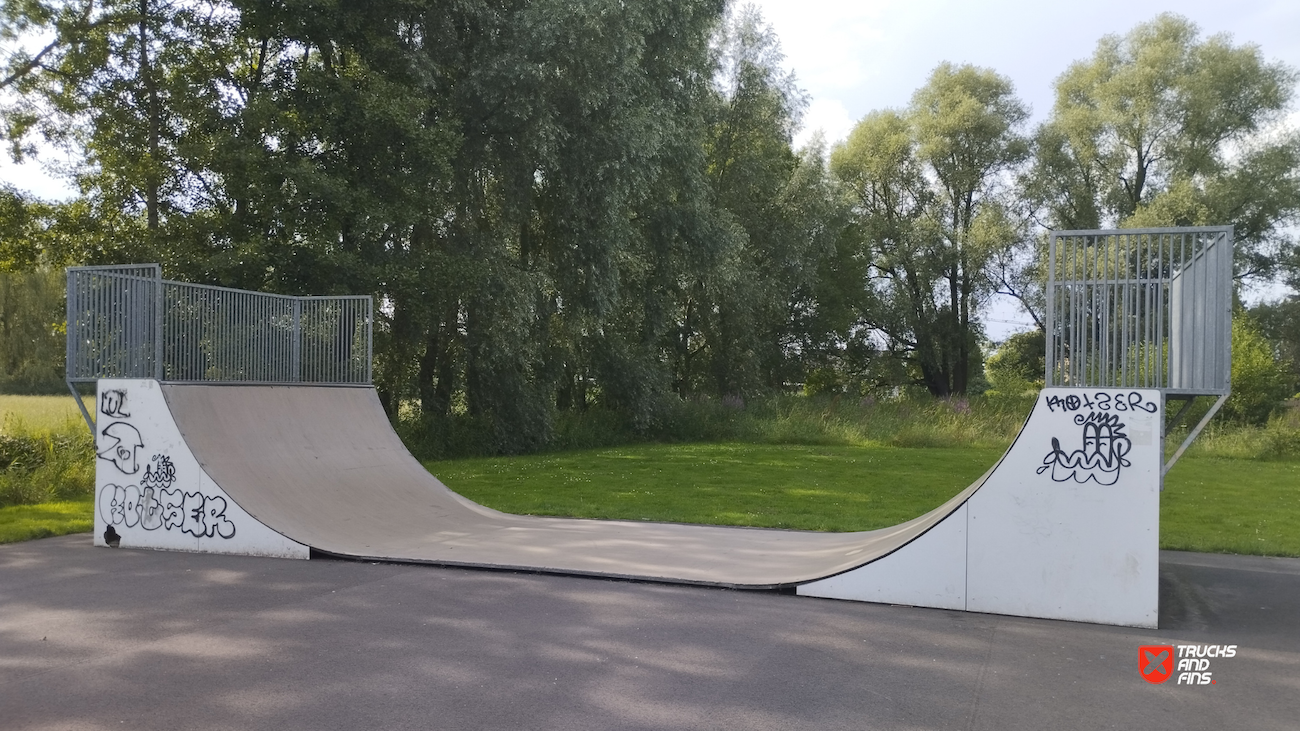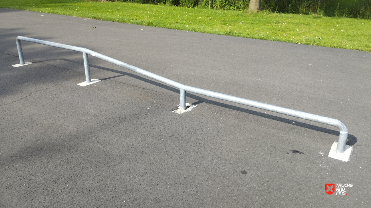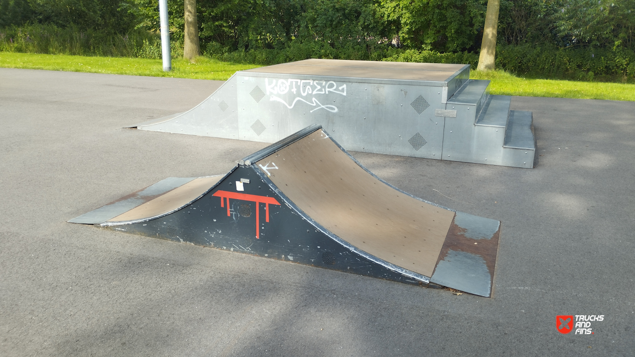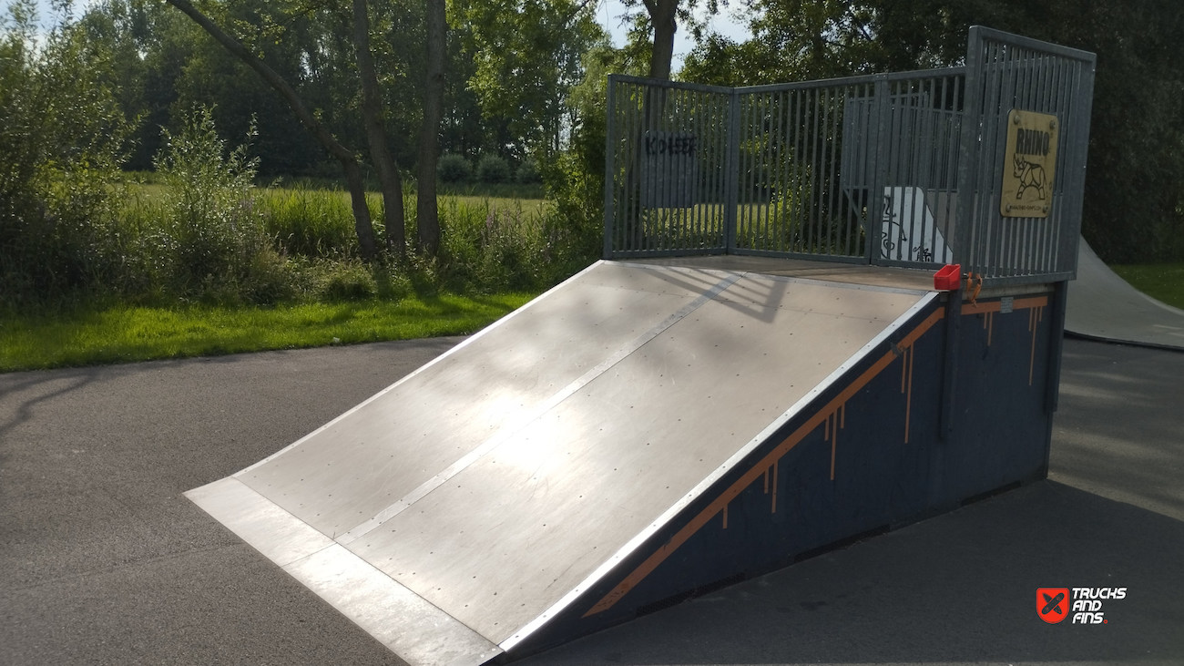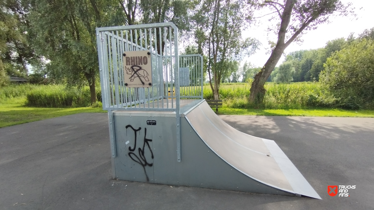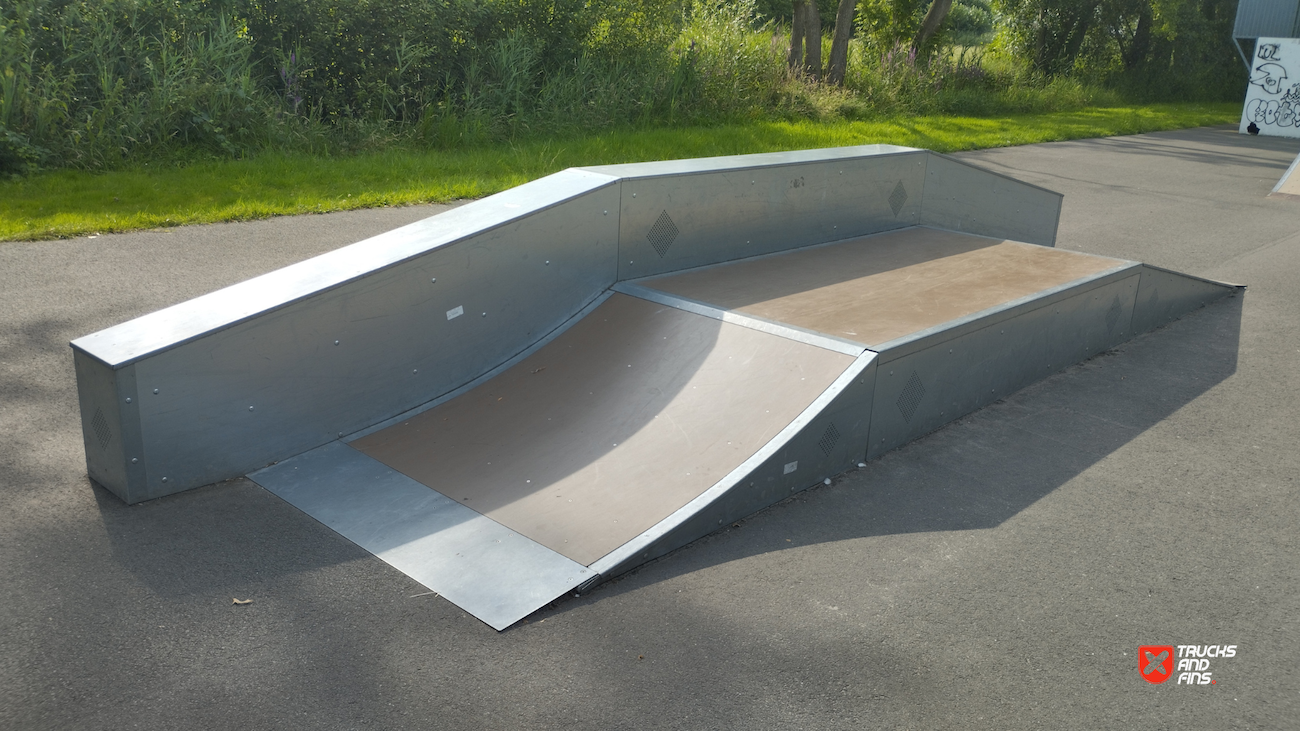 Arendonk skatepark is made up of a back and forth run with a quarter pipe and flat bank on the sides of a funbox. The skatepark also features a miniramp. Arendonk skatepark was built by Rhino Ramps.