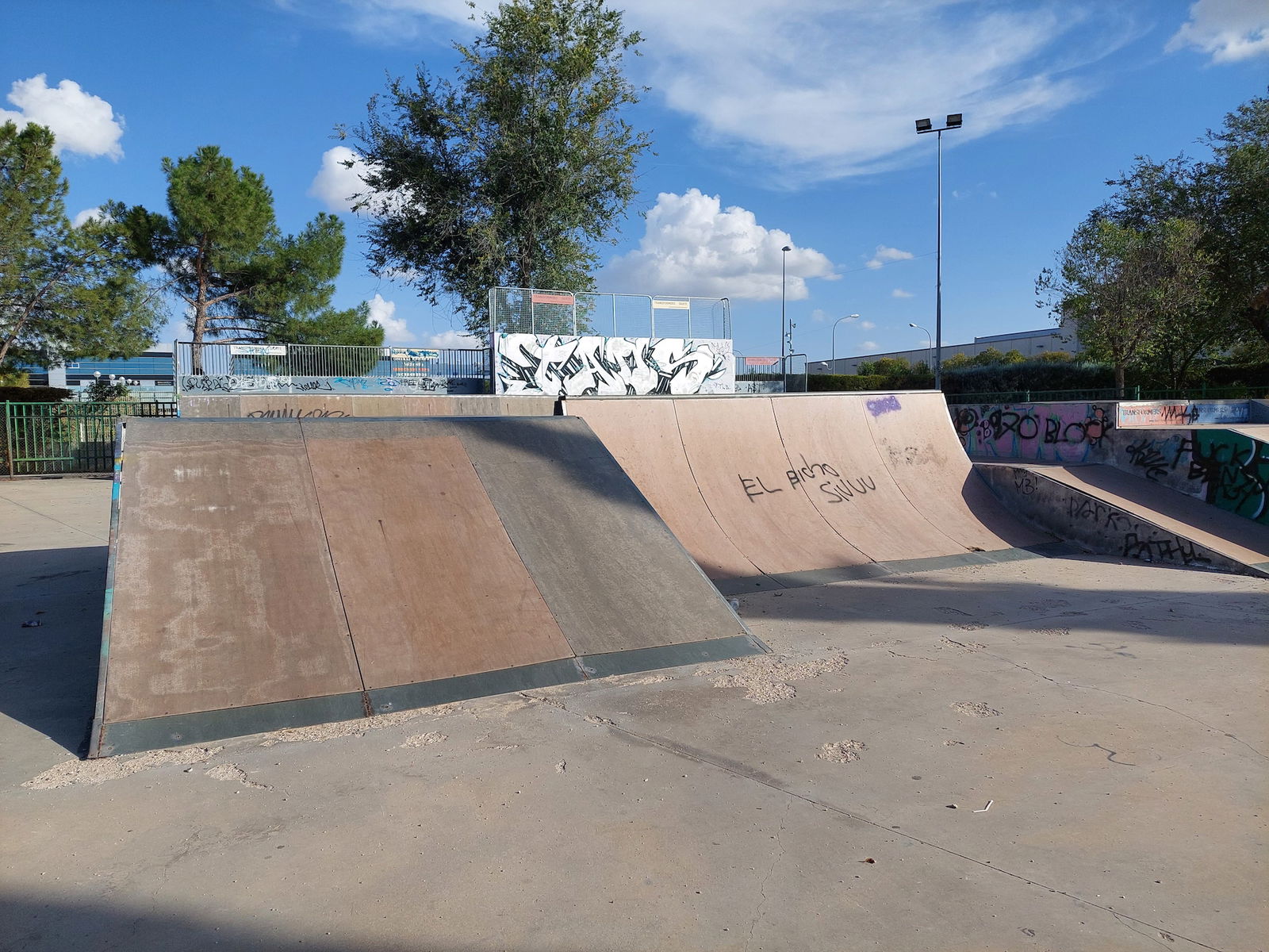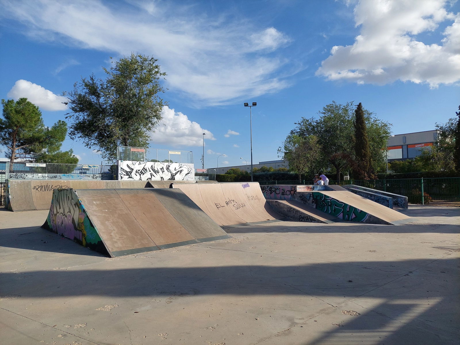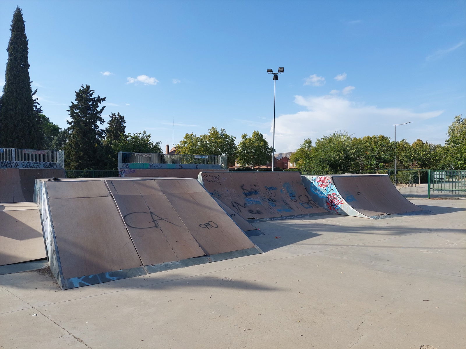 Arganda la Poveda is a wooden skatepark with several ramps and boxes.