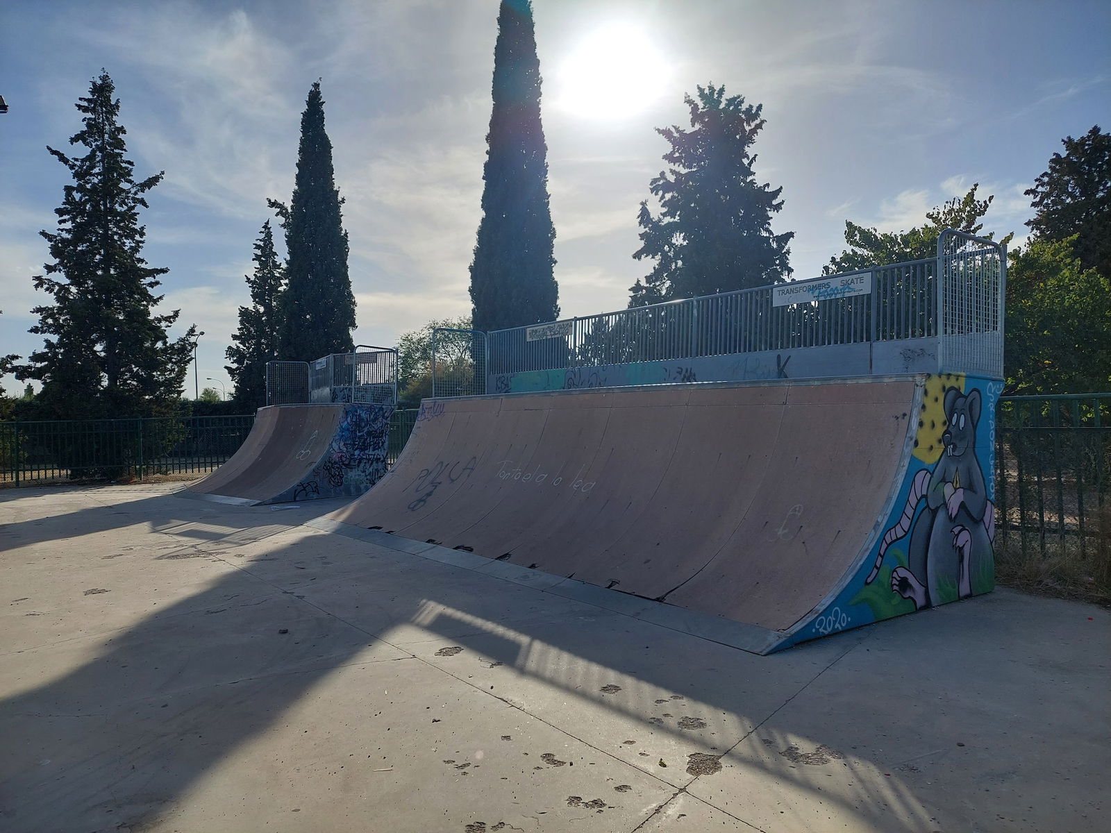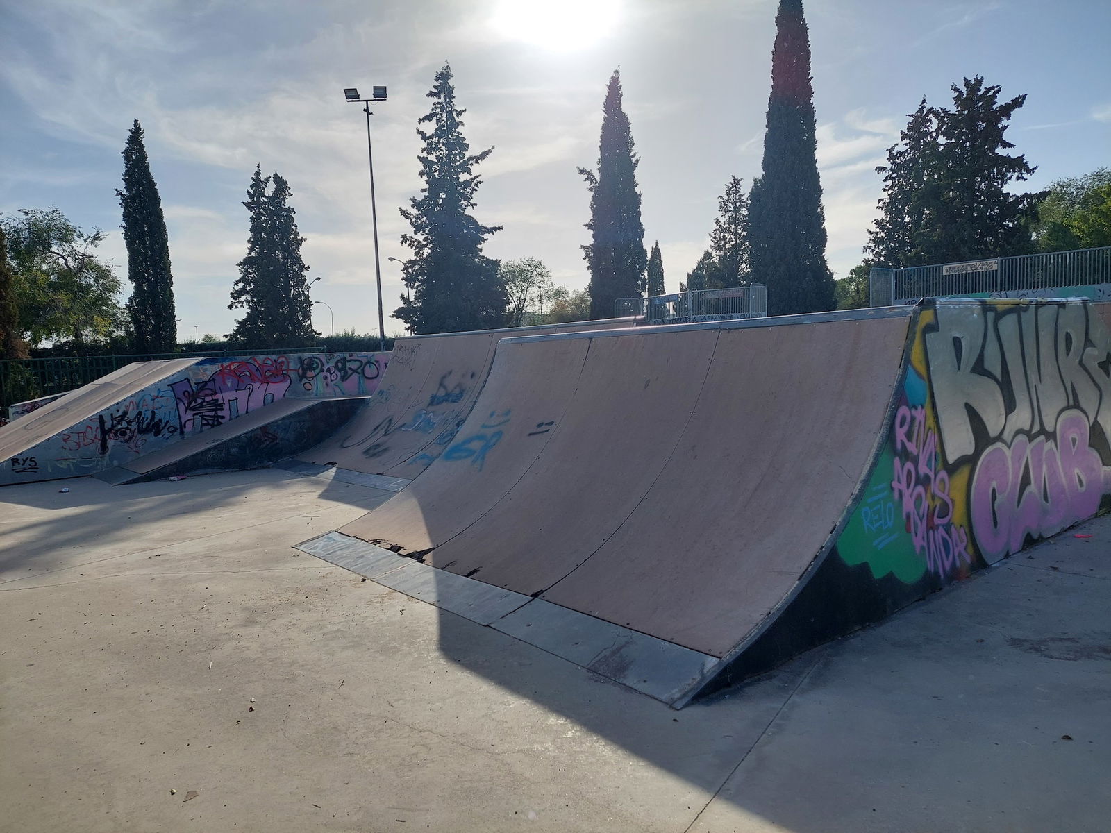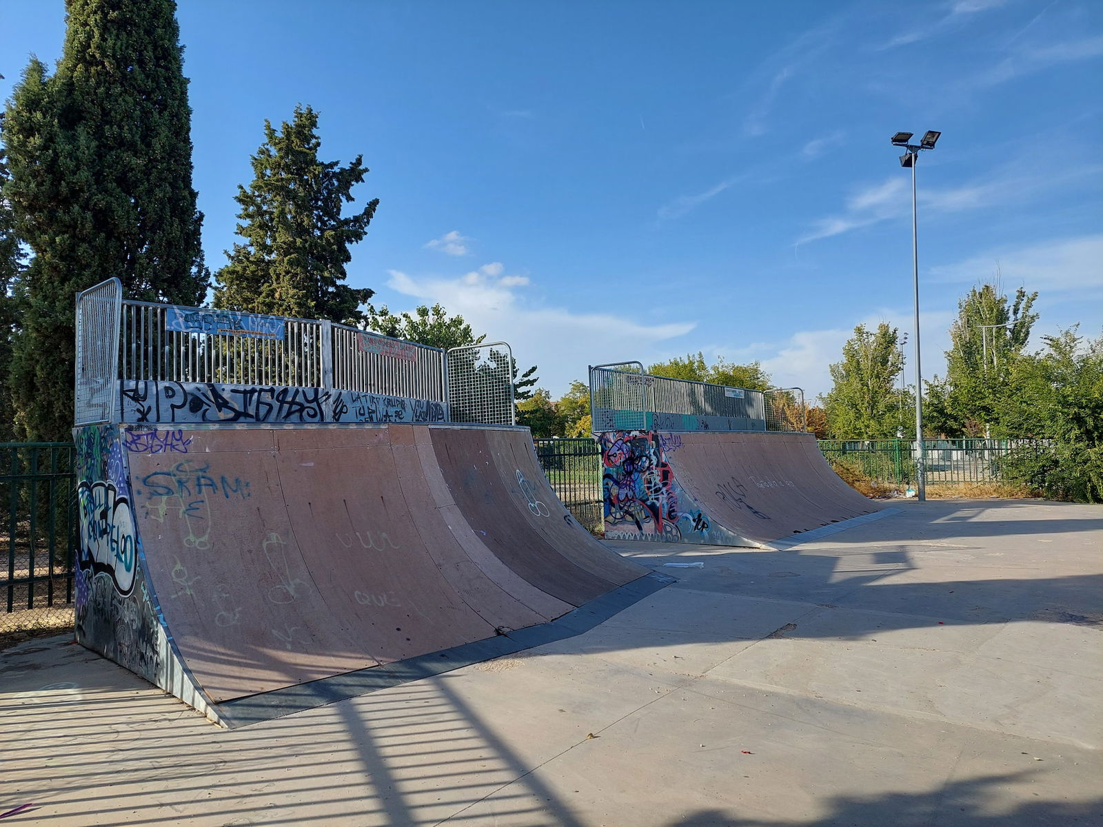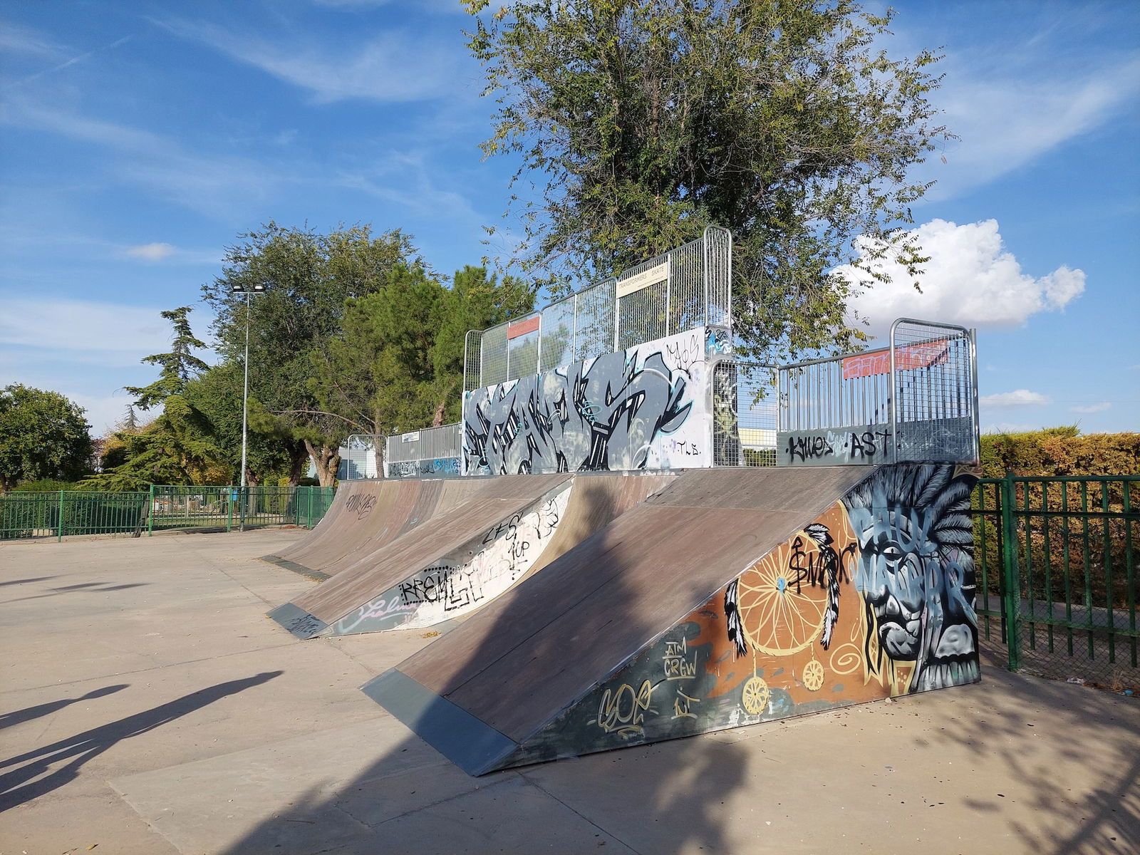 Arganda la Poveda is a wooden skatepark with several ramps and boxes.