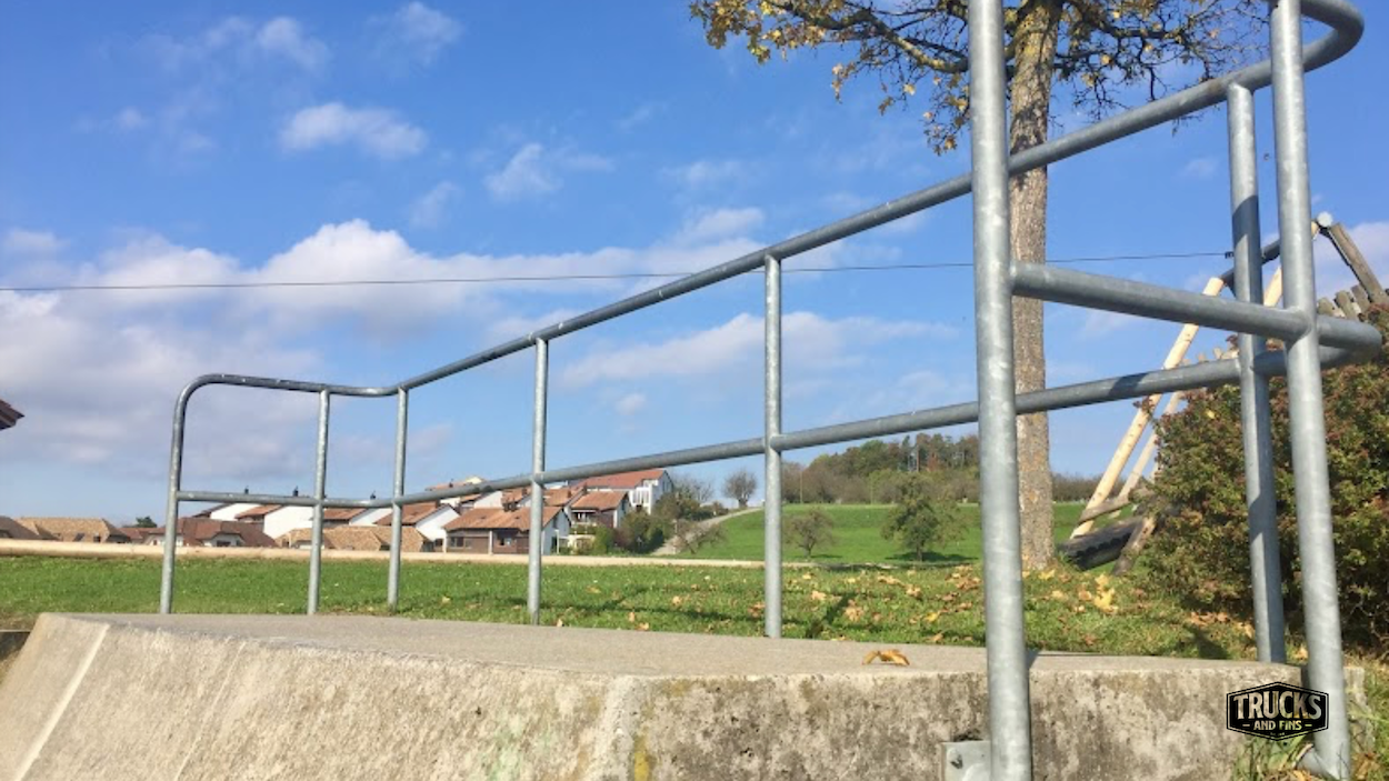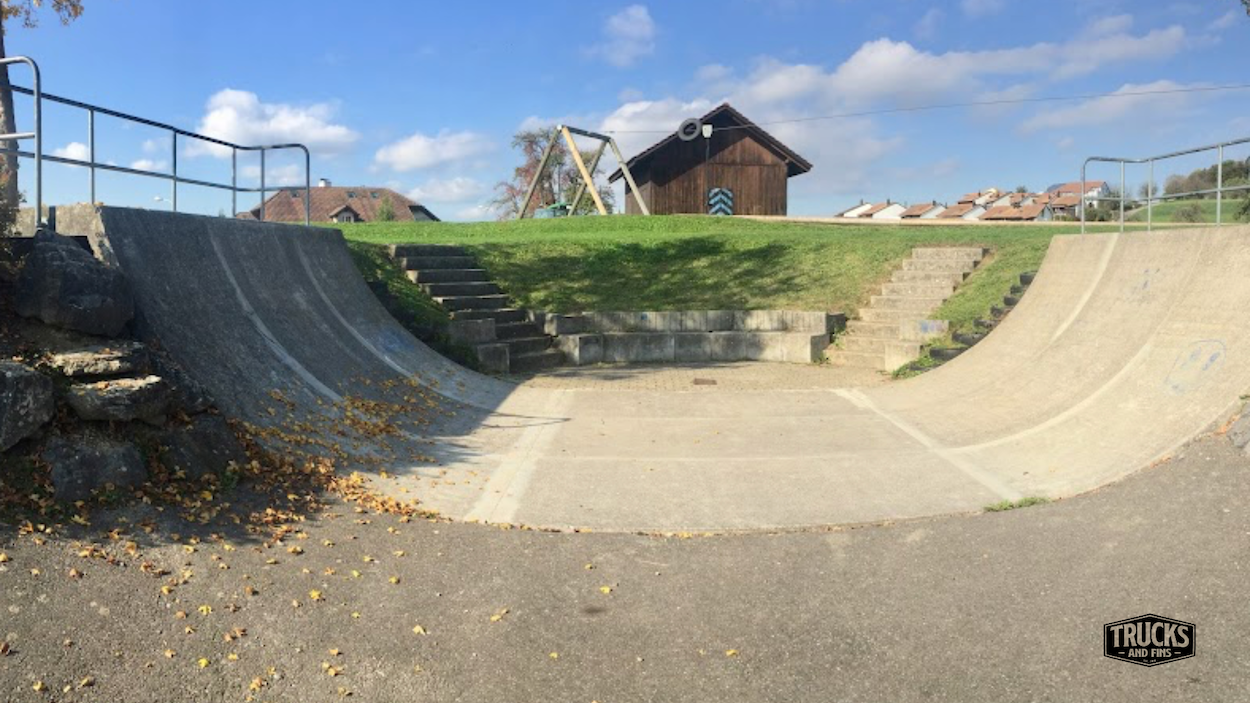 Arni skatepark features a cement halfpipe.