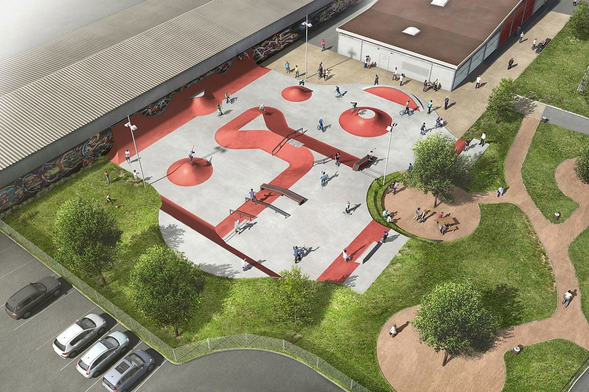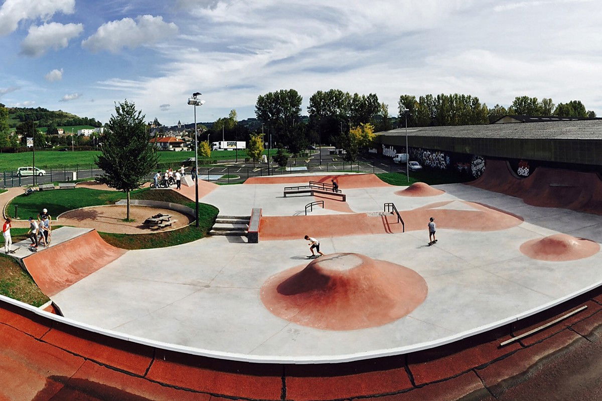 The 1010 m² Aurillac skatepark was designed and built by Constructo Skateparks in 2014. Total cost of 195000€.