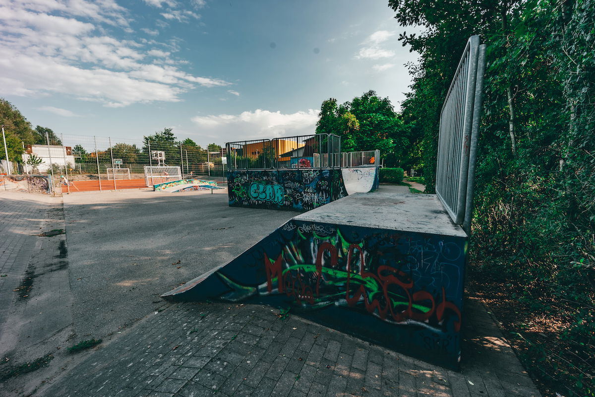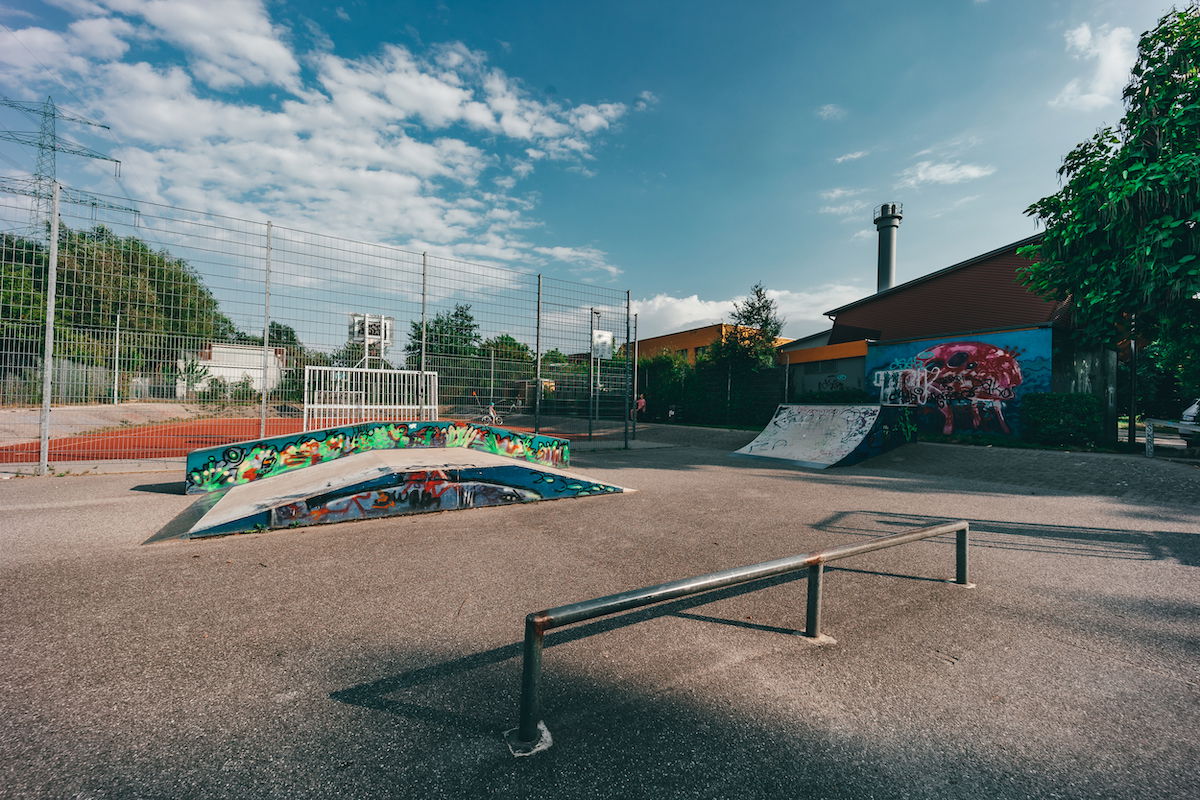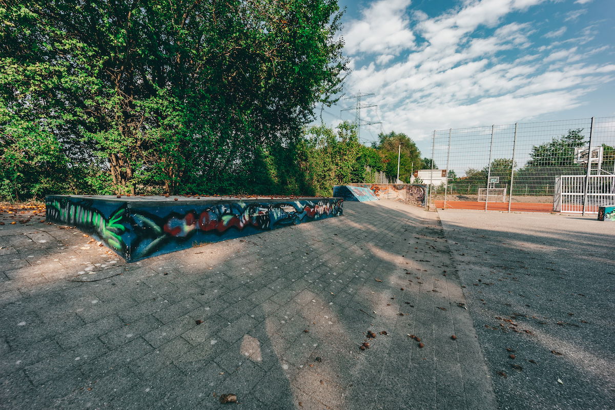 Ausgleichswiesen Boberg skatepark features a miniramp and several basic obstacles.
