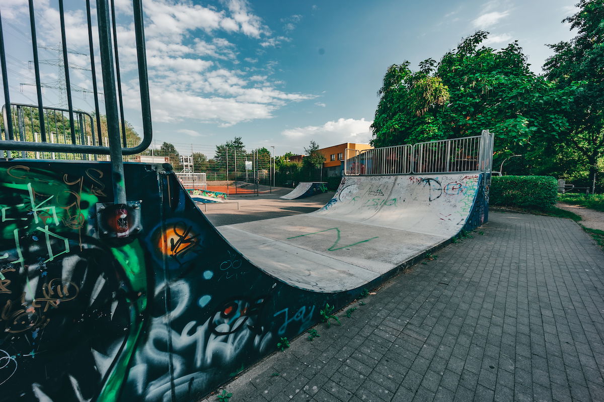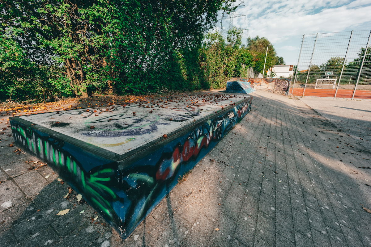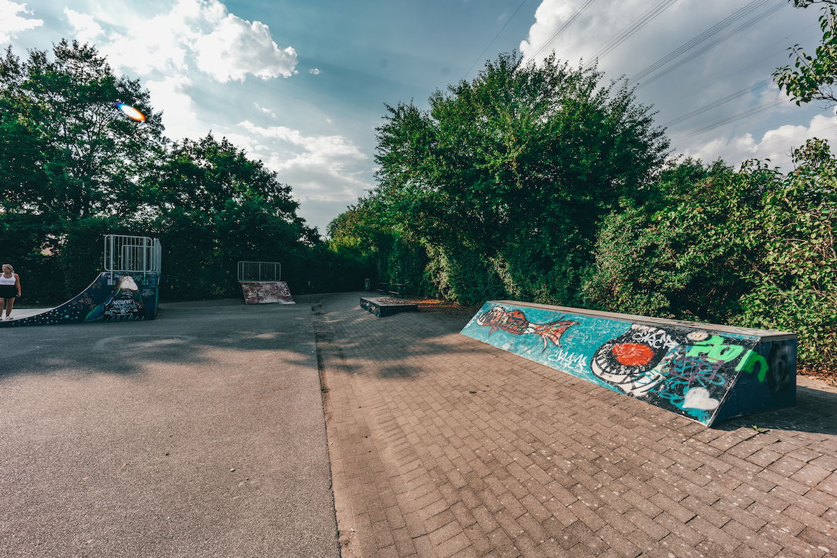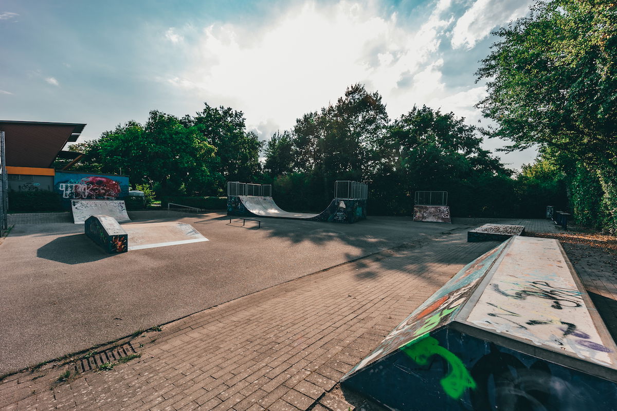 Ausgleichswiesen Boberg skatepark features a miniramp and several basic obstacles.