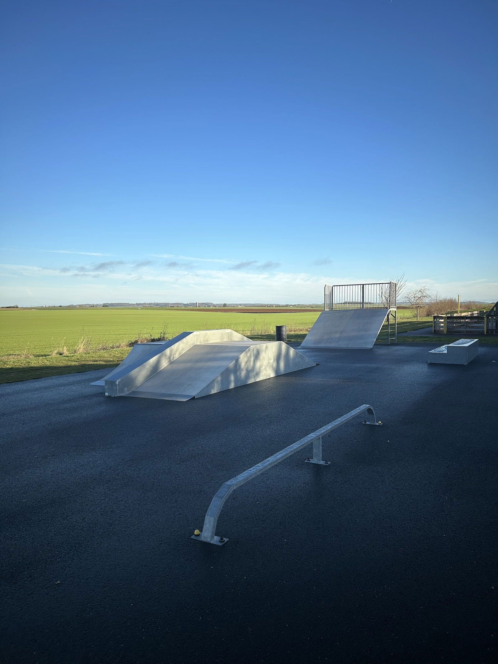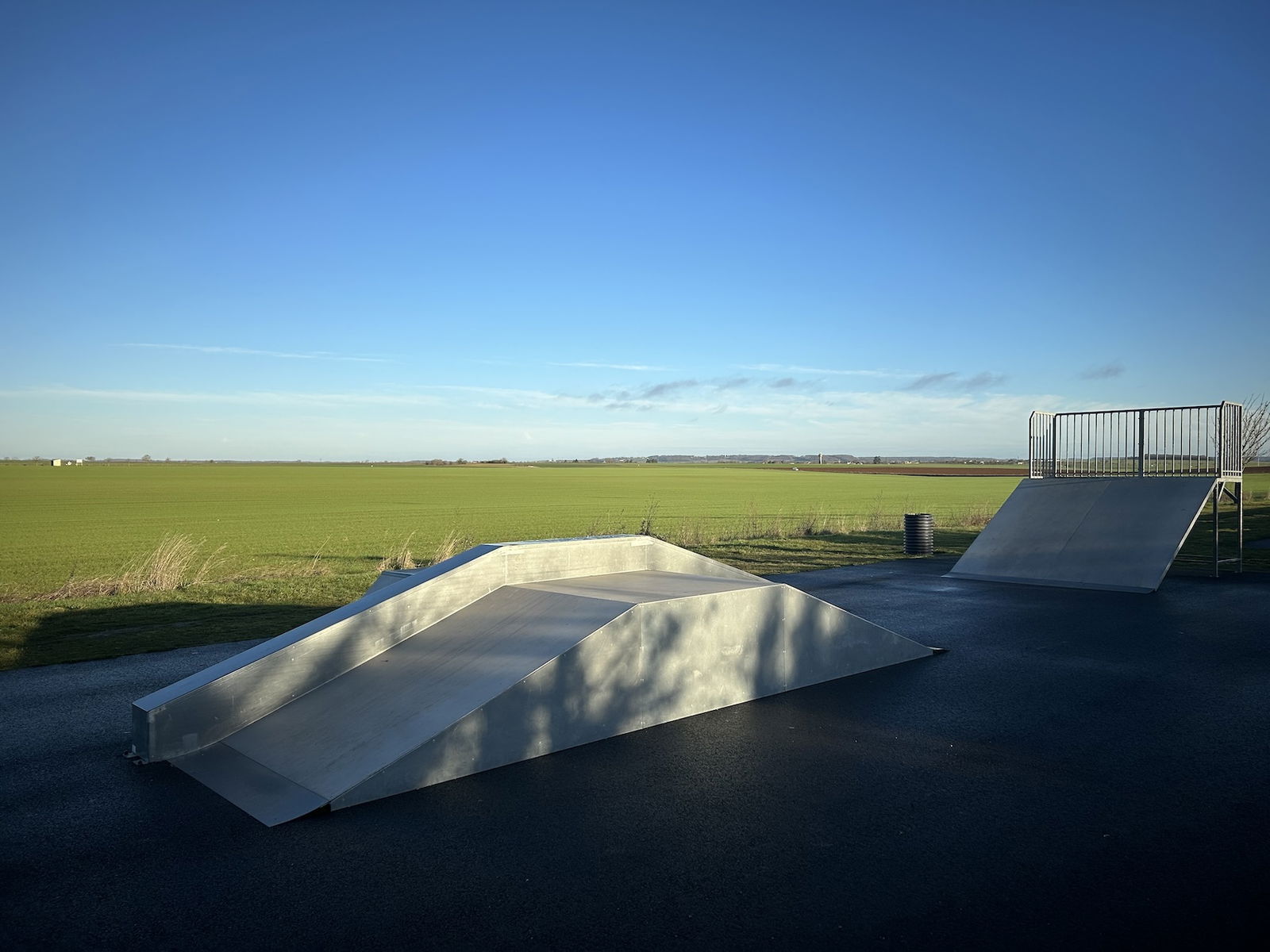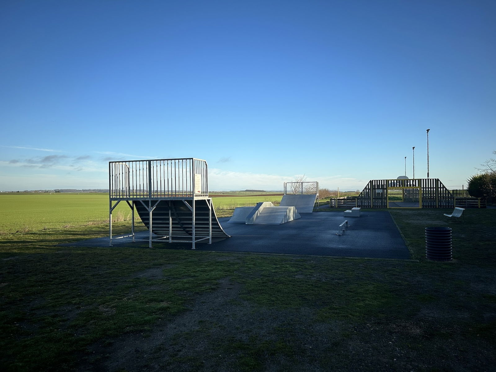 Avanton skatepark is made up of a back and forth run with a quarter pipe and bank on the sides of a funbox.
