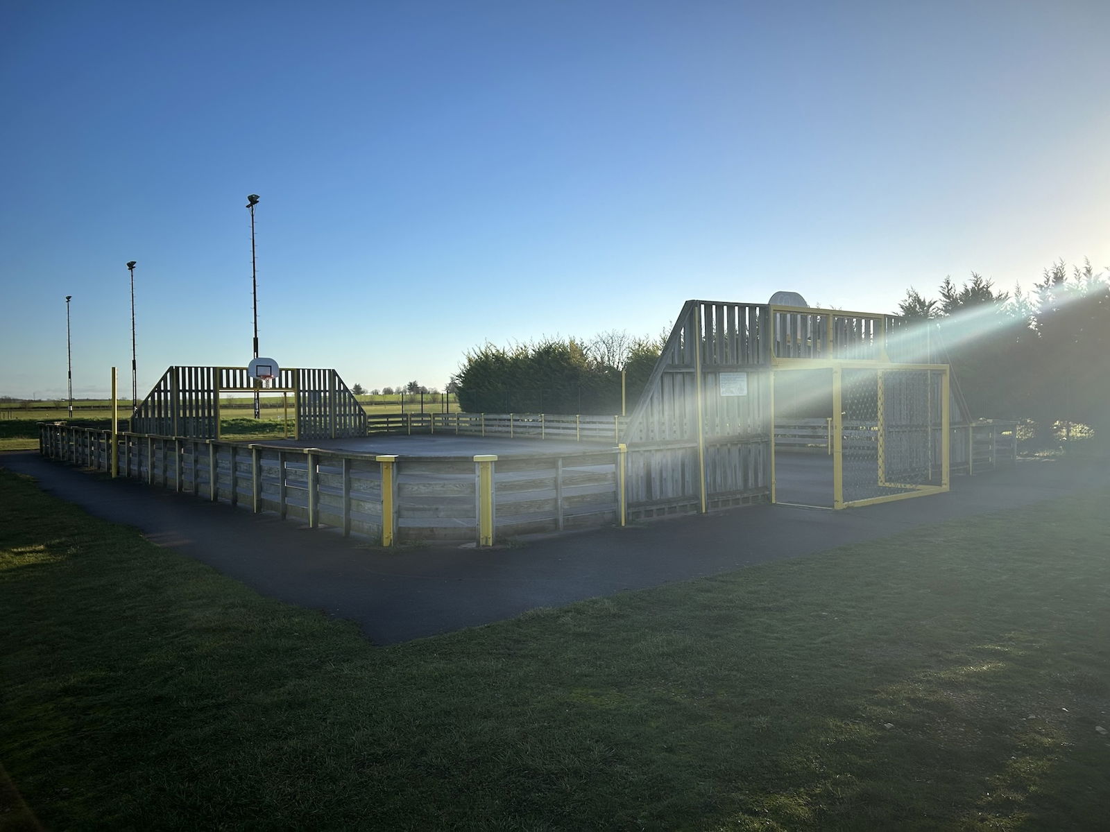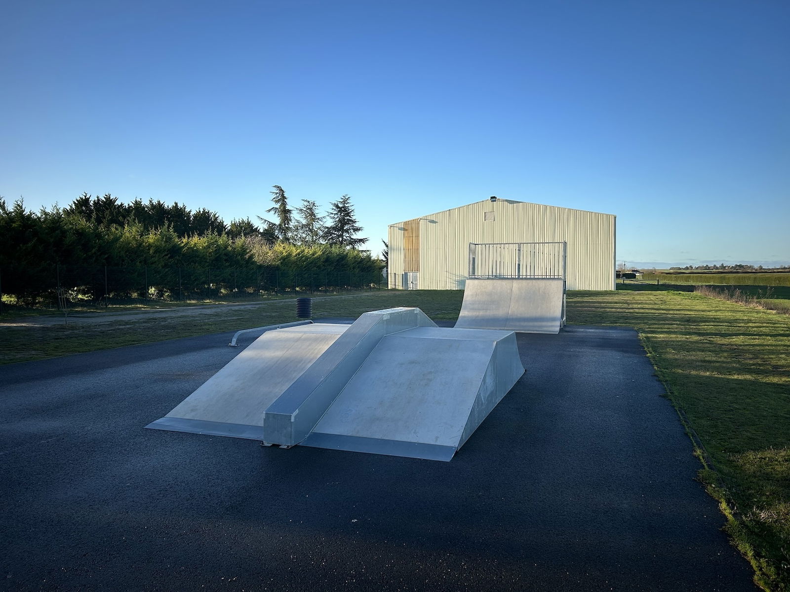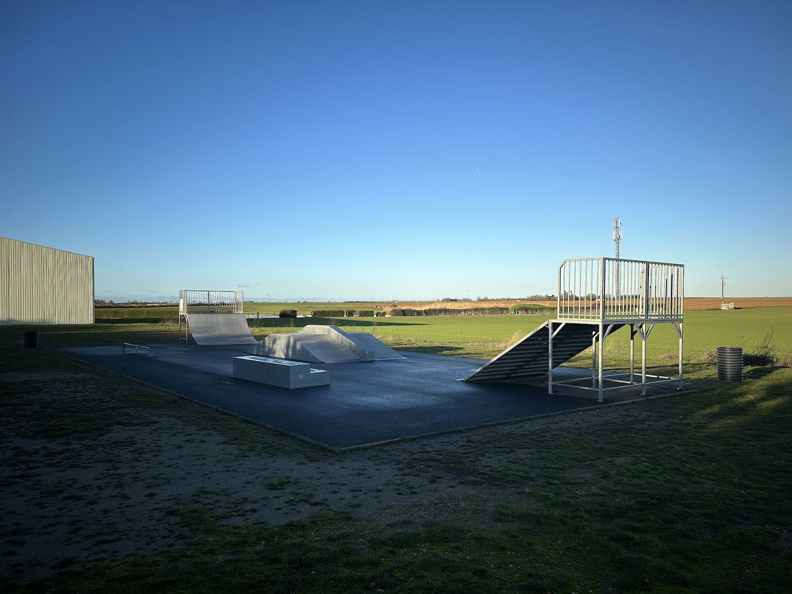 Avanton skatepark is made up of a back and forth run with a quarter pipe and bank on the sides of a funbox.