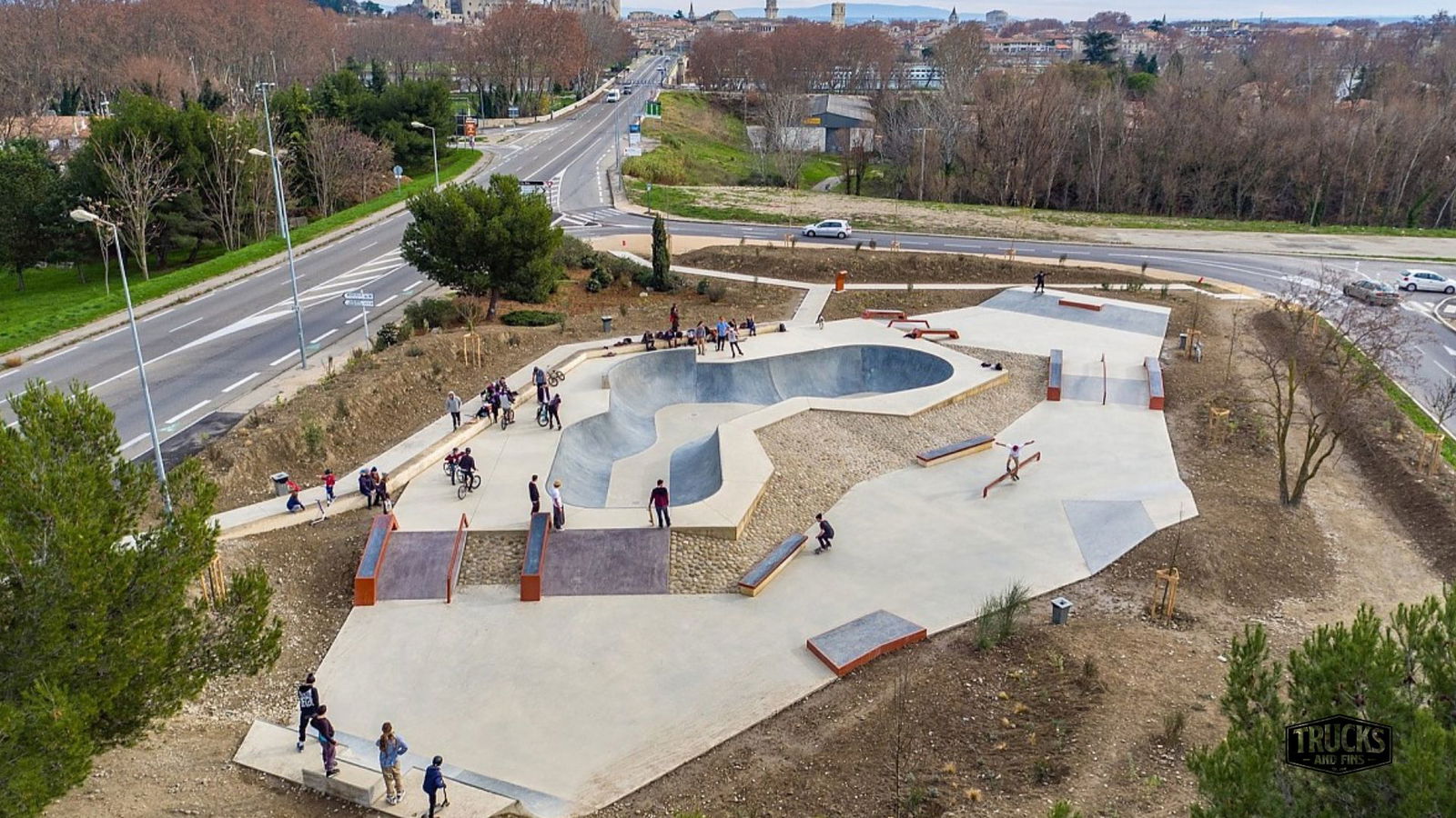 The 930 m² Avignon skatepark was designed by Constructo Skateparks in 2015 who teamed up with Paysage. The skatepark cost around 205000€.