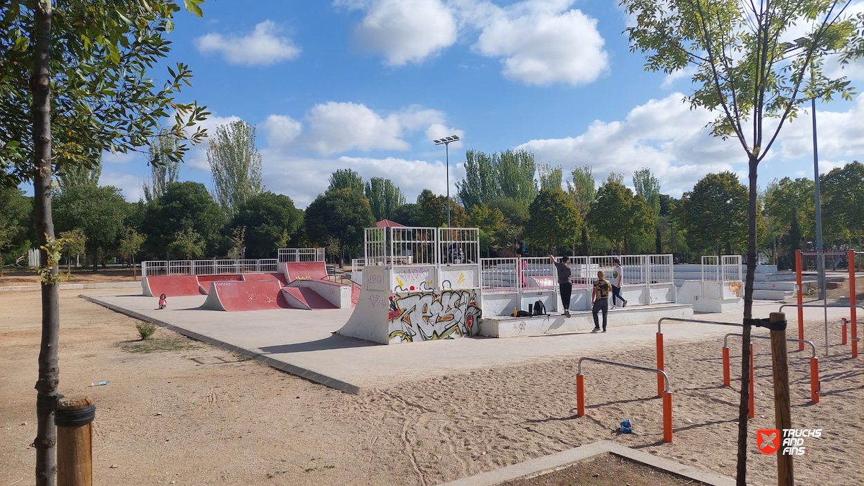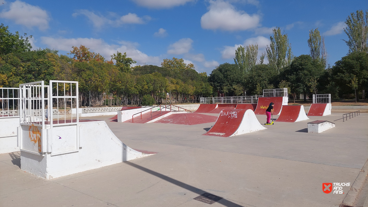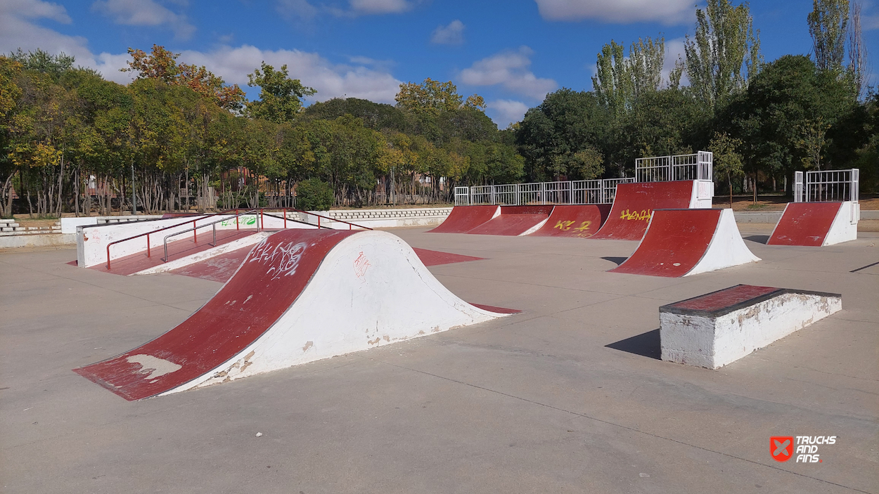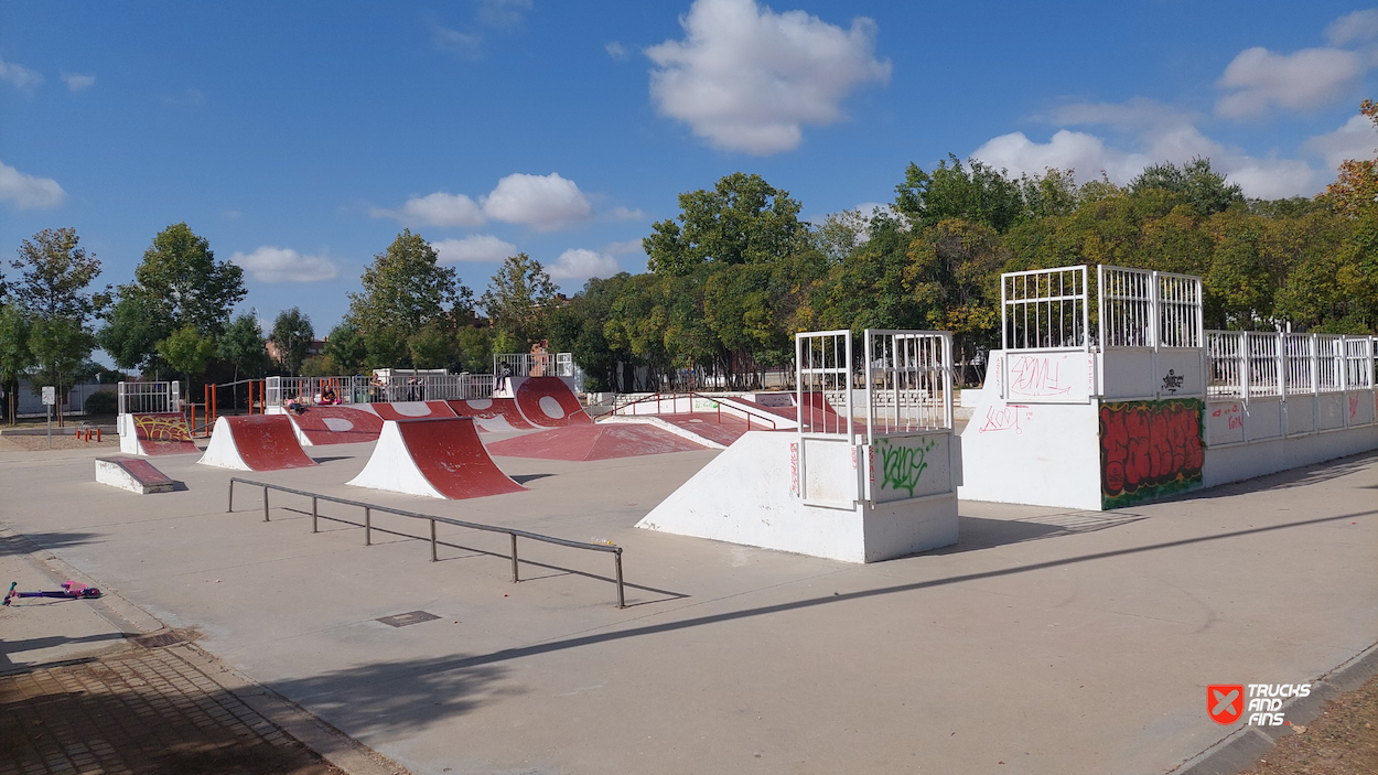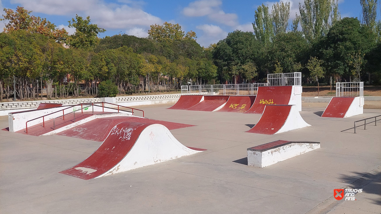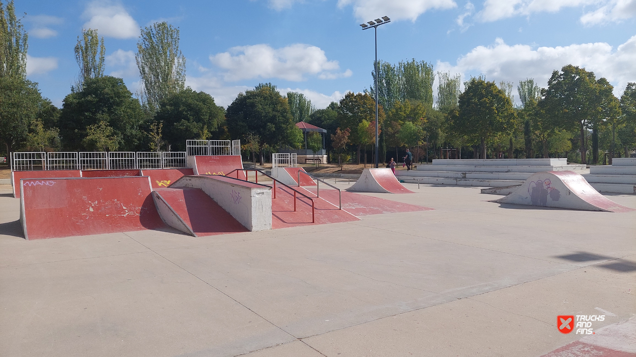 Azuqueca skatepark is a concrete park located in Quebradilla park. The skatepark is made up of a back and forth run with a quarter pipes and flat banks on the sides of a funbox.
