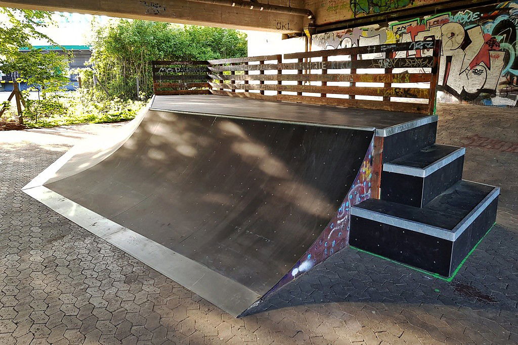 Bad Salzuflen Skatepark is a modular wooden park with a miniramp, different funboxes and other assorted features. It‘s under the Hochbrücke and was built in 2018 by Yamato Living Ramps.