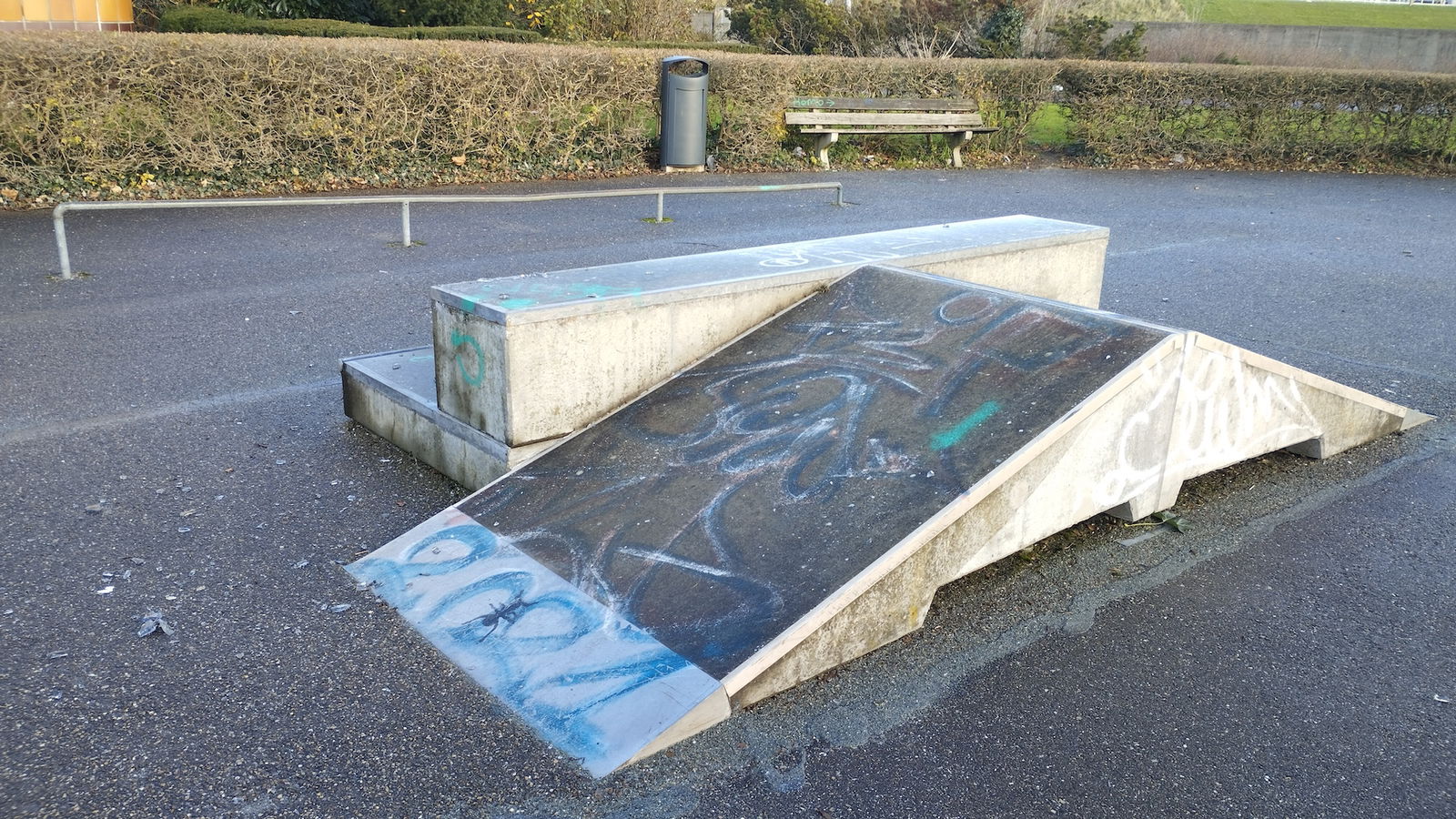 Bad Skatepark is a small park with several basic skateboarding obstacles.