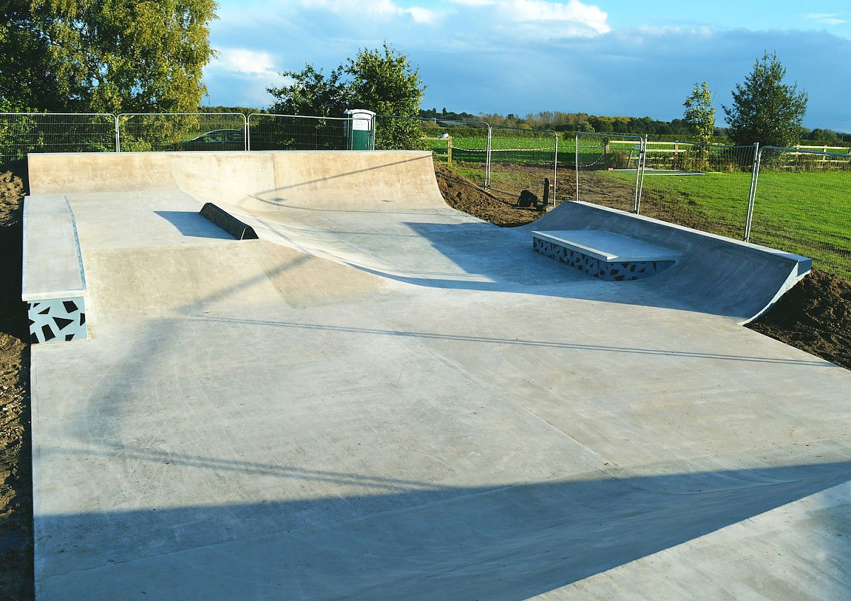 Baschurch Skatepark, located in Shropshire, was designed and built by Canvas Spaces and officially opened in 2020. The skatepark is a small plaza-style concrete park, featuring elements such as banks, a full-width quarterpipe, hubba, ledge, and hip. It offers a modern layout for skateboarders and BMX riders of all skill levels. The skatepark was developed with local community support and funding from public sources to provide a recreational space for youth and active lifestyles in the area.