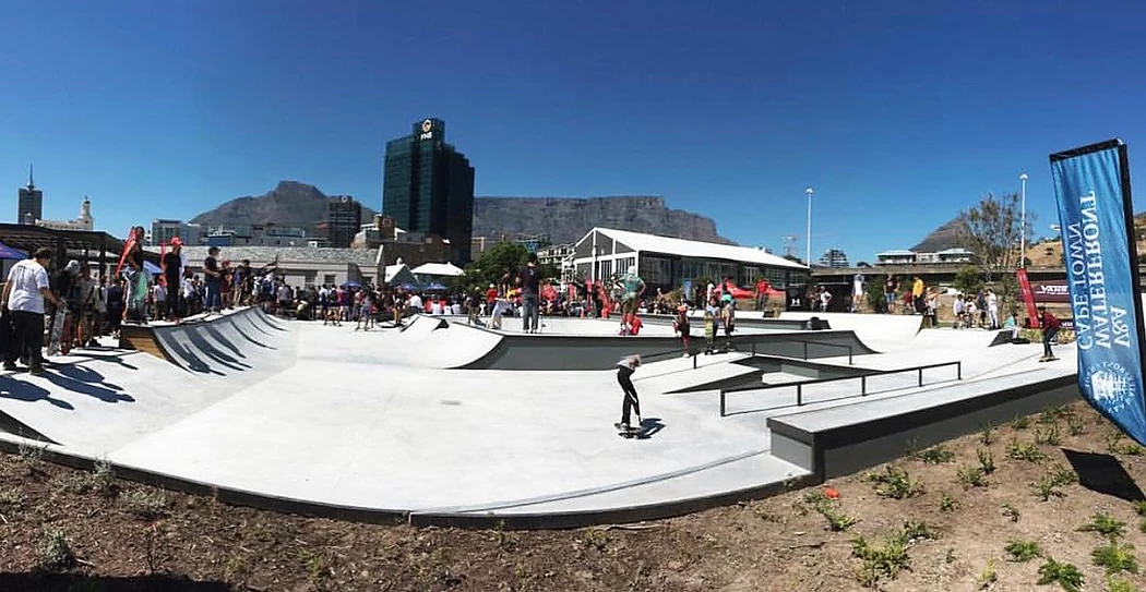 Battery Park Skatepark, located at the V&A Waterfront in Cape Town, South Africa, opened in 2018 as part of a broader urban park development. Designed and built by California Skateparks, with local input from Marc Baker of CA Skateparks Africa, the skatepark is the first of its kind in Cape Town, designed to meet world-class standards. The park is a part of a 12,000-square-meter urban space that integrates Cape Town's central business district with the popular V&A Waterfront through pedestrian walkways and recreational areas.