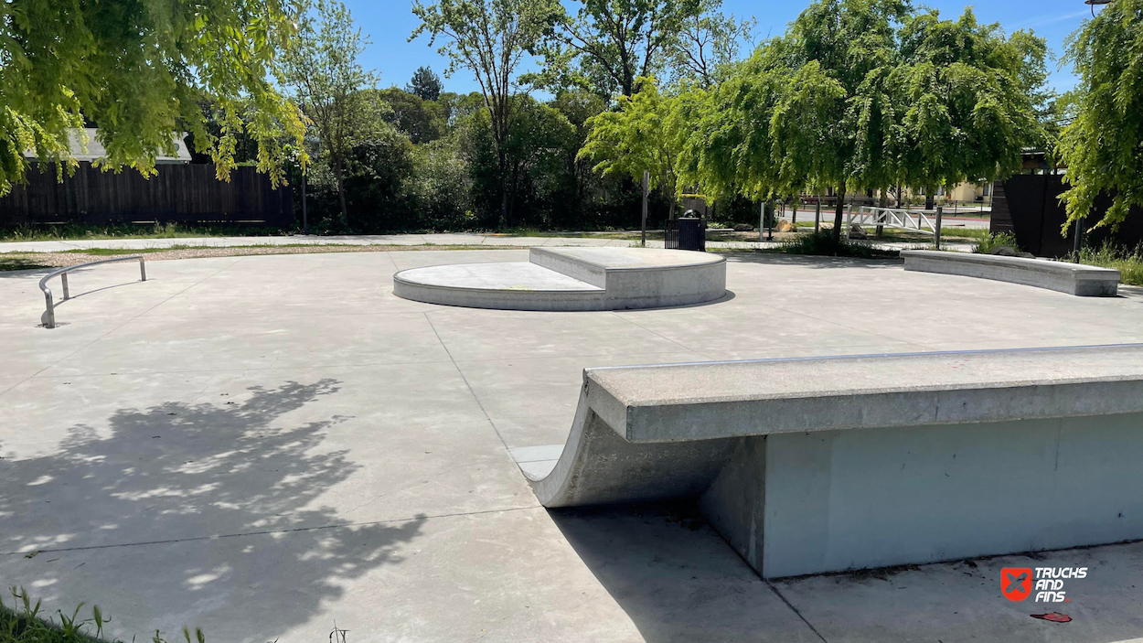 Bayer Skatepark, situated within Bayer Park & Gardens at 1550 West Avenue, Santa Rosa, CA 95407, is a compact street-style facility designed for skateboarders seeking a focused riding experience. The skatepark includes a quarter pipe, curved ledge, curved rail, and a central round ledge combined with a manual pad, offering a variety of elements for skaters to practice and refine their skills.