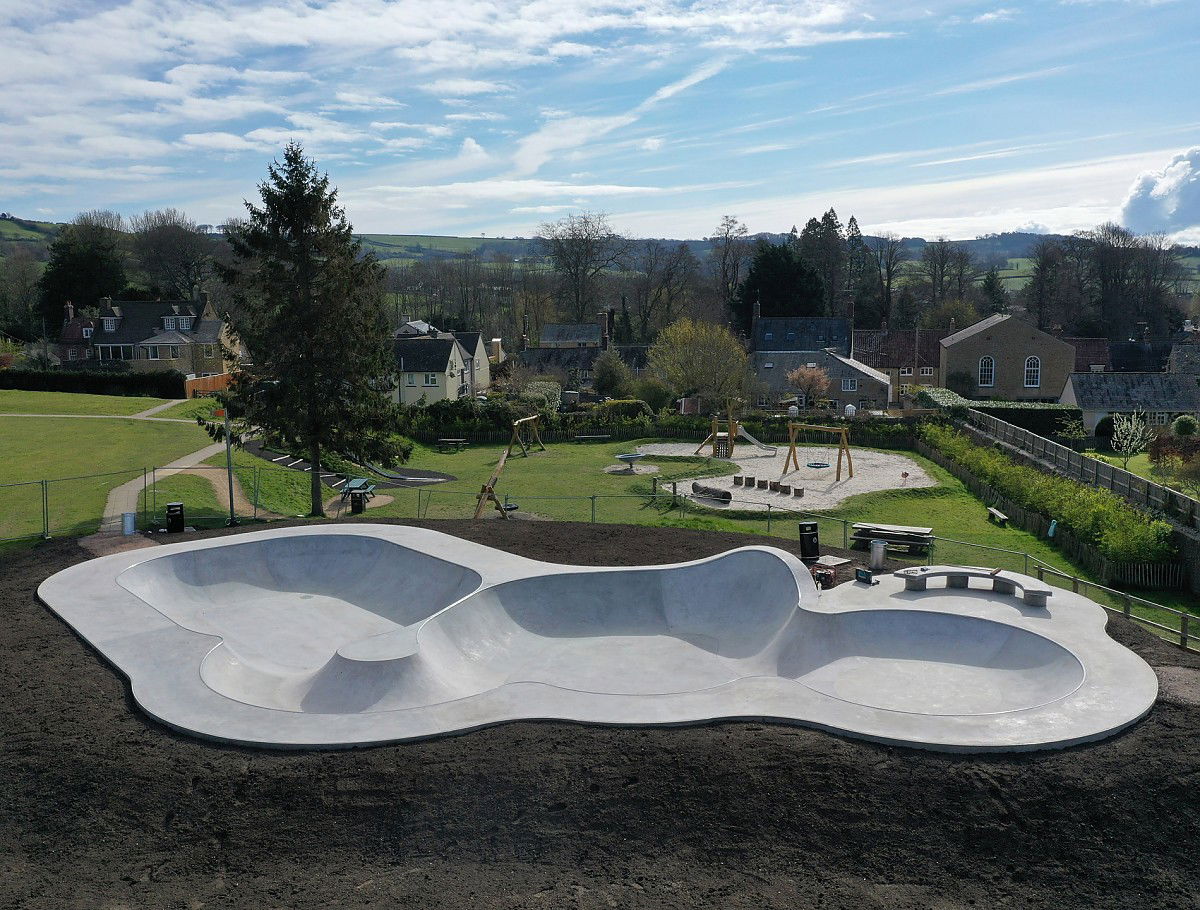 Beaminster Skatepark, located at the Memorial Playing Fields in Beaminster, opened in April 2021. This state-of-the-art skatepark was designed and built by Maverick Skateparks, a leading UK-based skatepark construction firm. The skatepark features a dynamic concrete layout, including a prominent miniramp, bowled corners, and a pocket bowl, which provide a variety of challenges for skaters of all skill levels.