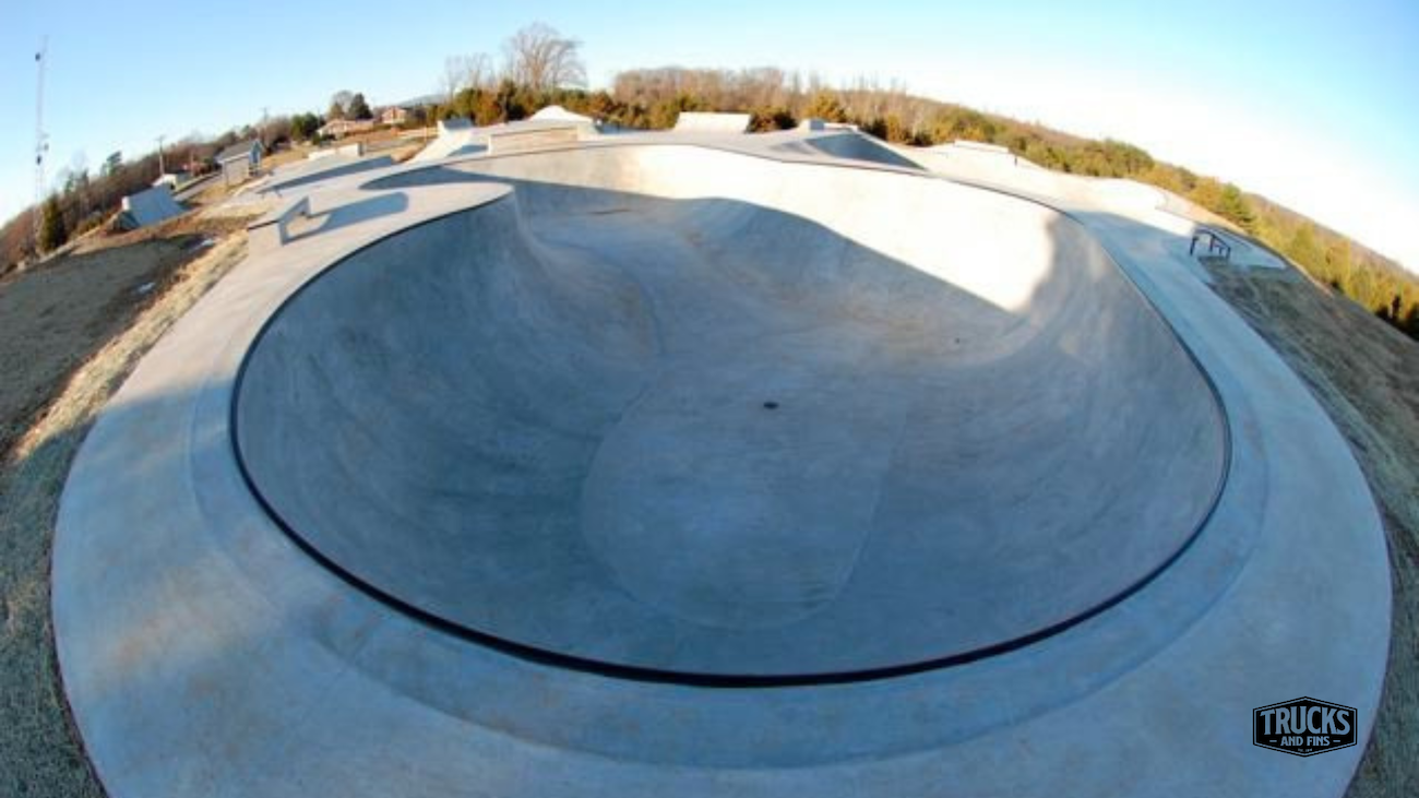 The Bedford Skatepark, also known as the Falling Creek Skatepark, is located at 1120 Falling Creek Rd., Bedford, Virginia. This flow-style concrete park features a mix of banks, ledges, flip banks, rainbow rails, benches, and two separate bowls. One bowl is an advanced vert bowl, while the other includes extensions, pump bumps, hips, escalating pockets, and a large "twinkie." The park is considered one of the best on the East Coast.