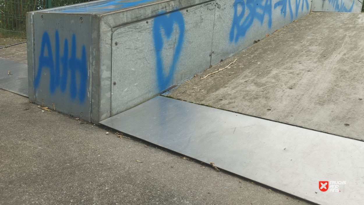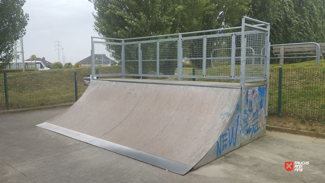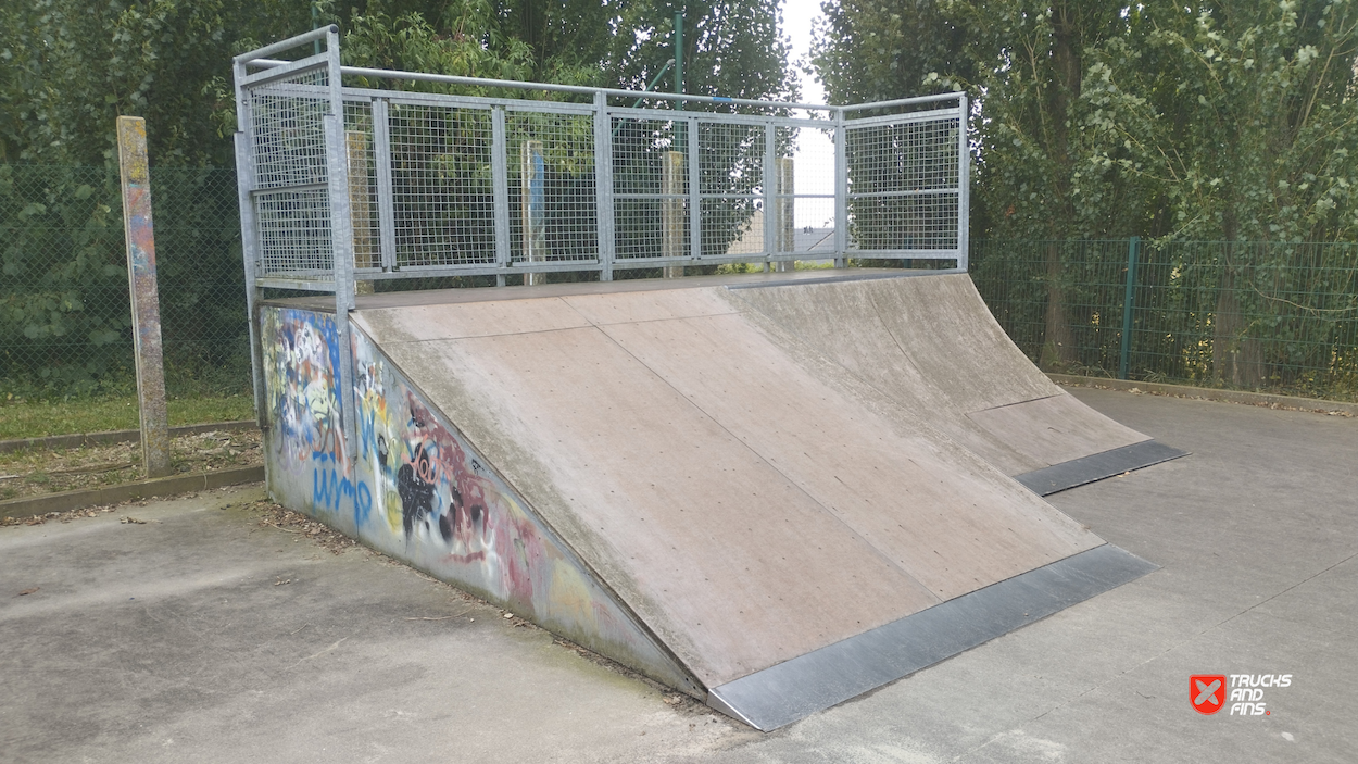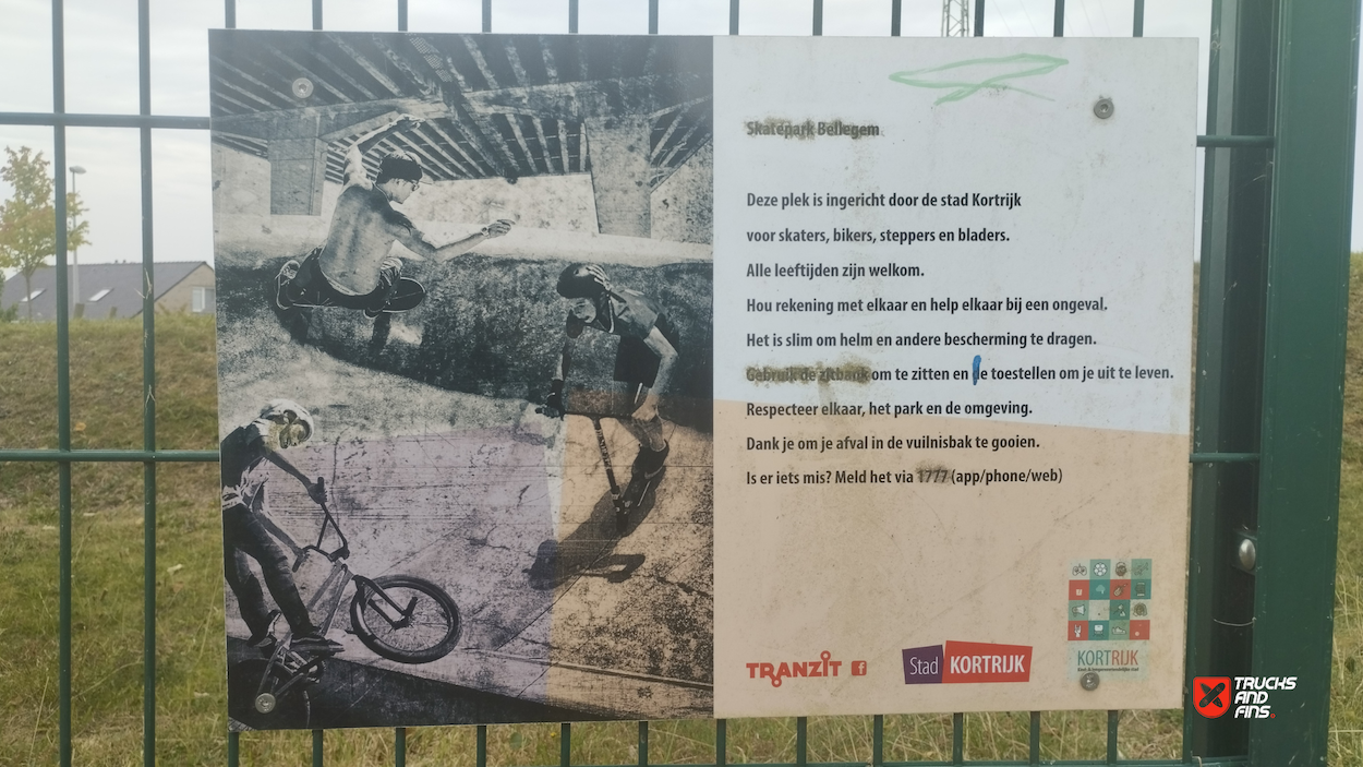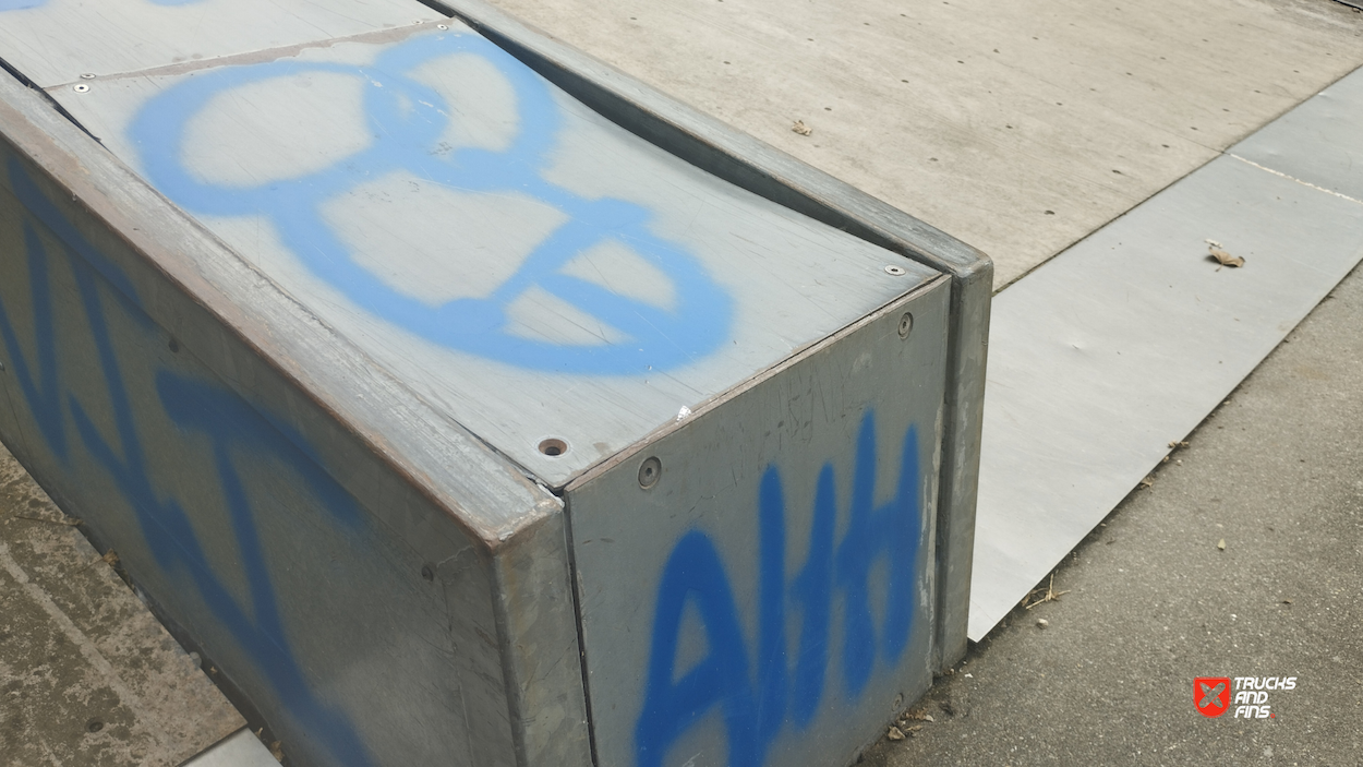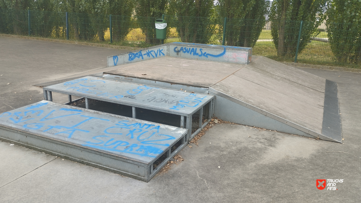 Bellegem skatepark is made up of a back and forth run with a quarter pipe and flat bank on the sides of a funbox.