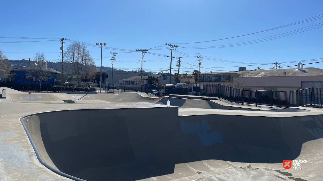 The Berkeley Skatepark, officially named the Orkin/Hsiang Memorial Skatepark, is located at 711 Harrison St. in Berkeley, California. It was opened to the public in 2002 and spans 18,000 square feet. The skatepark features a variety of elements, including a large oval bowl, a fun box, street-style sections with rails, ledges, and banks, making it suitable for skateboarders of all skill levels.