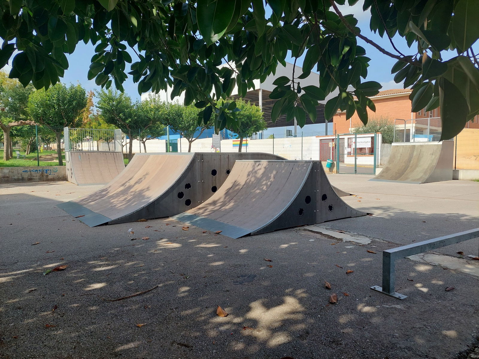 Betxi skatepark is made up of a back and forth run with a quarter pipe and flat bank either side of a funbox.