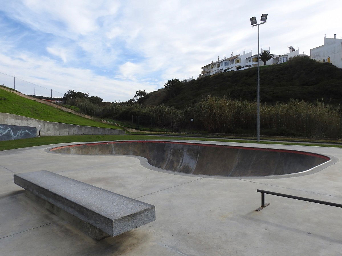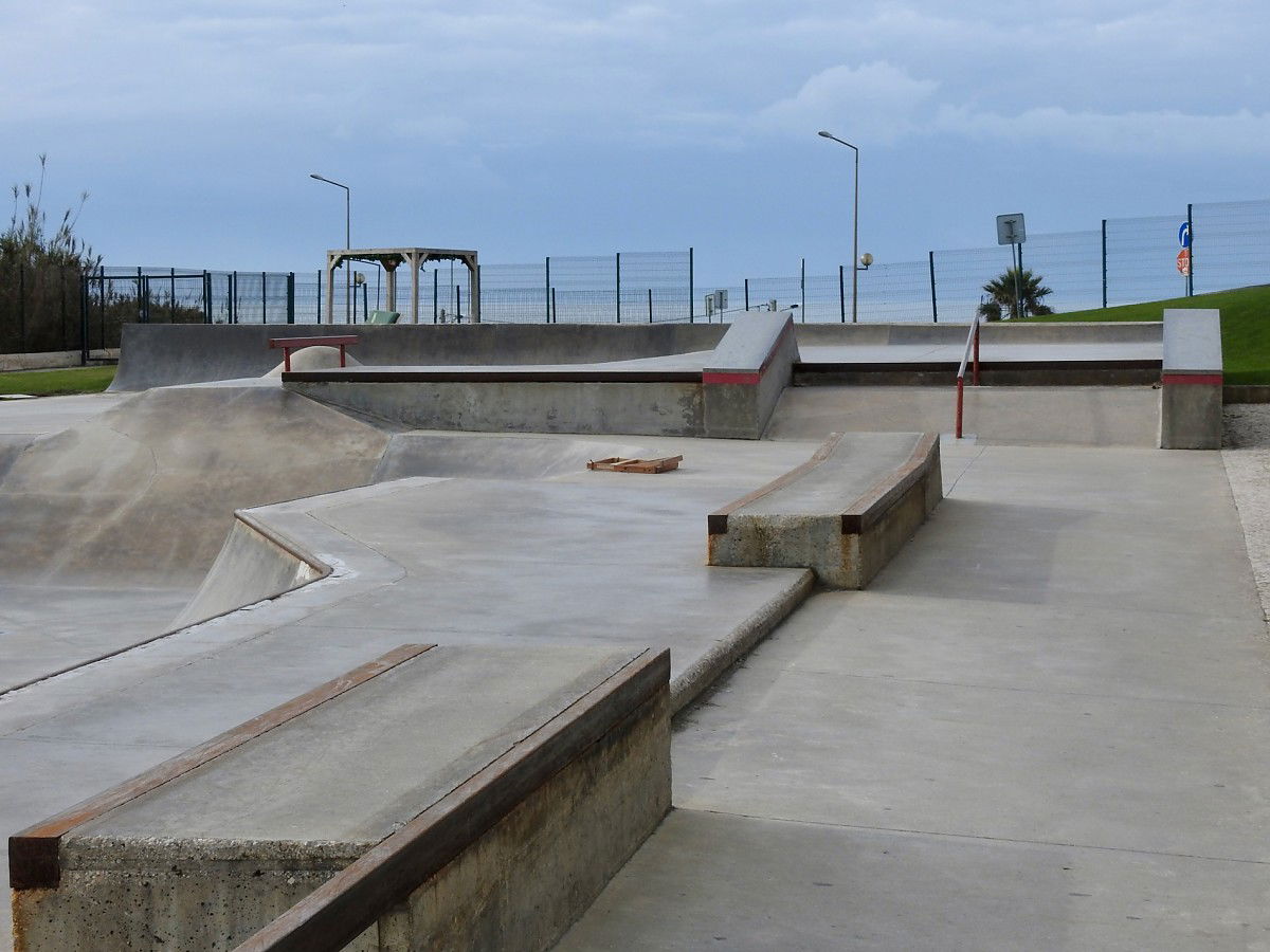 The skatepark is a concrete park spanning 1,200 square meters and is recognized as one of the top skateparks in southern Europe. Its construction is a blend of modern and traditional elements, integrating Portuguese aesthetics with durable, skate-friendly materials. This combination reflects the region's unique culture while providing a high-quality skate environment.