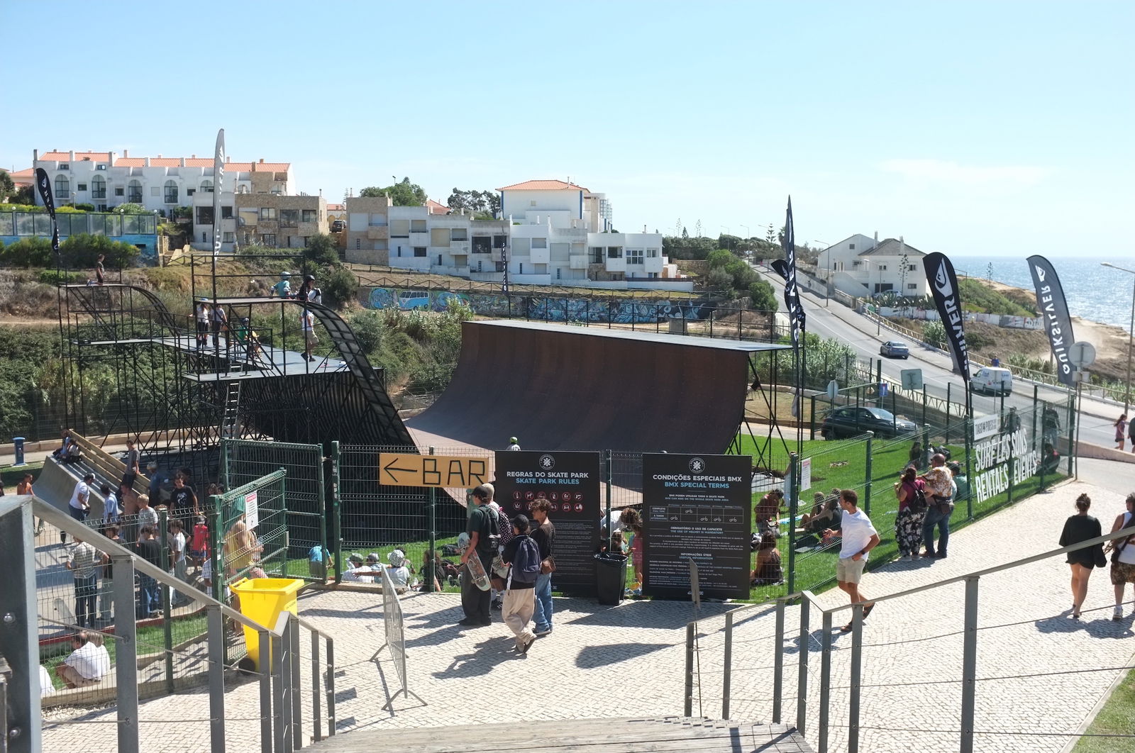 The Boardriders Quiksilver Skatepark in Ericeira, Portugal, is a prominent skate facility located just outside the Quiksilver flagship store. This skatepark is part of a larger complex designed to celebrate surf and skate culture. The facility, which includes a café, lounge area, and a surf school, is strategically positioned with a stunning ocean view, making it a prime destination for both locals and visitors.