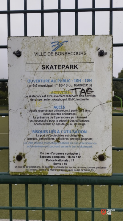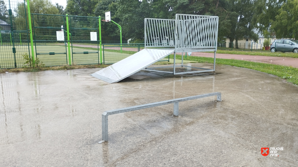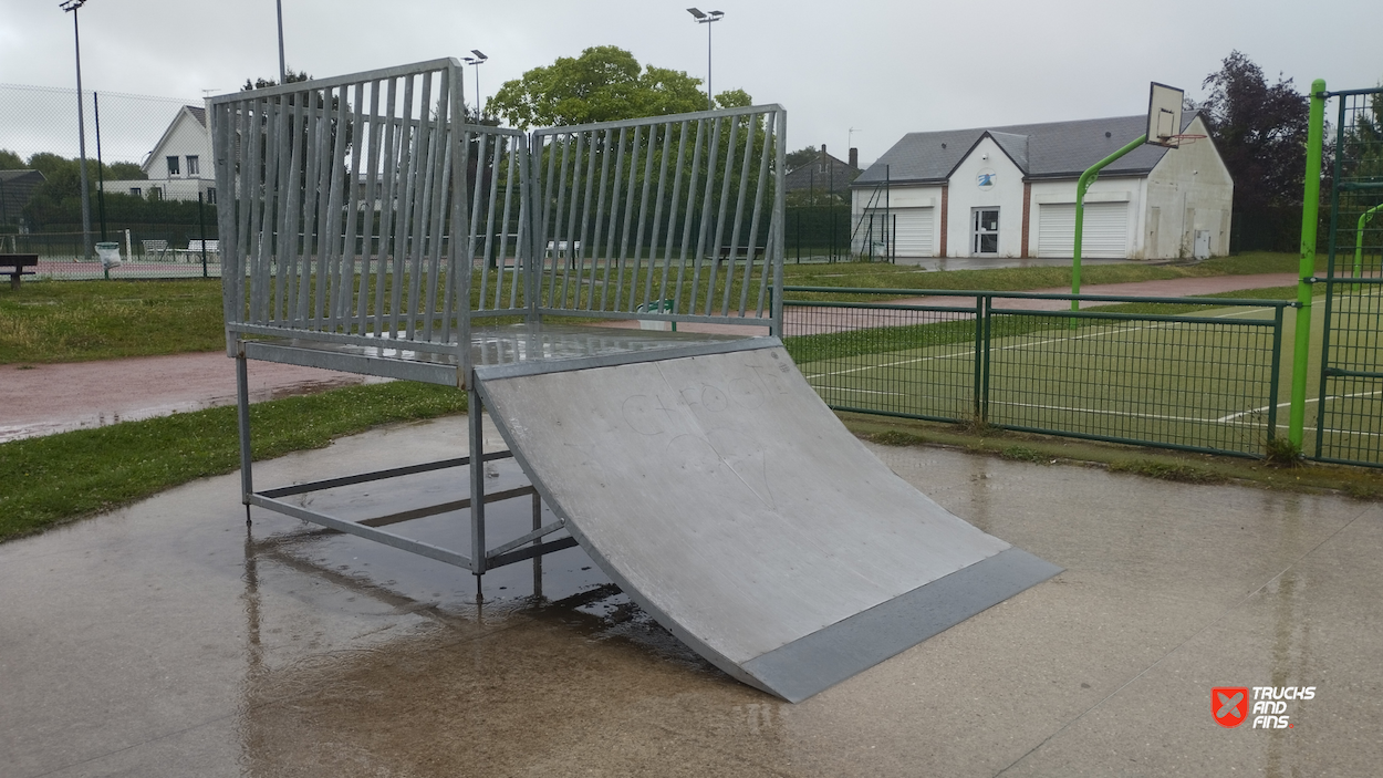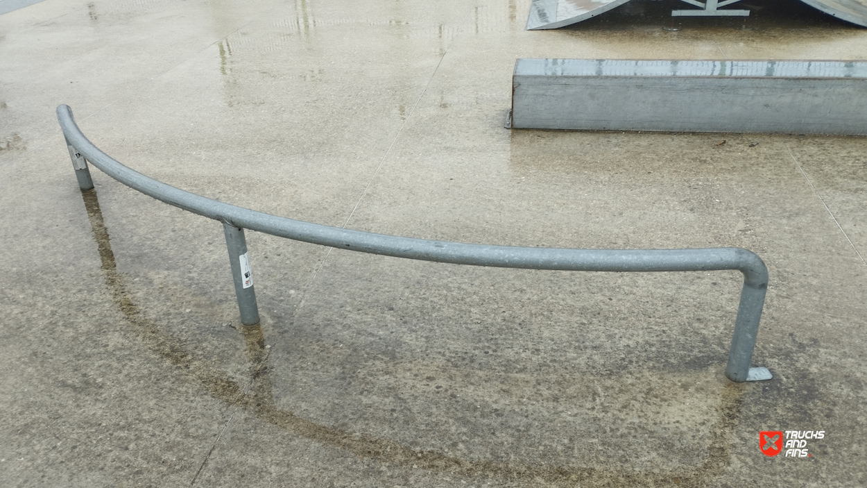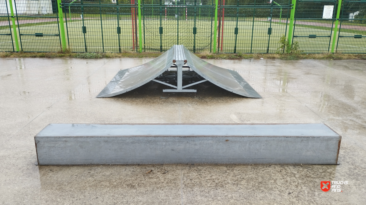 Bonsecours skatepark is made up of a back and forth run with a quarter pipe and flat bank on either side of a spine.