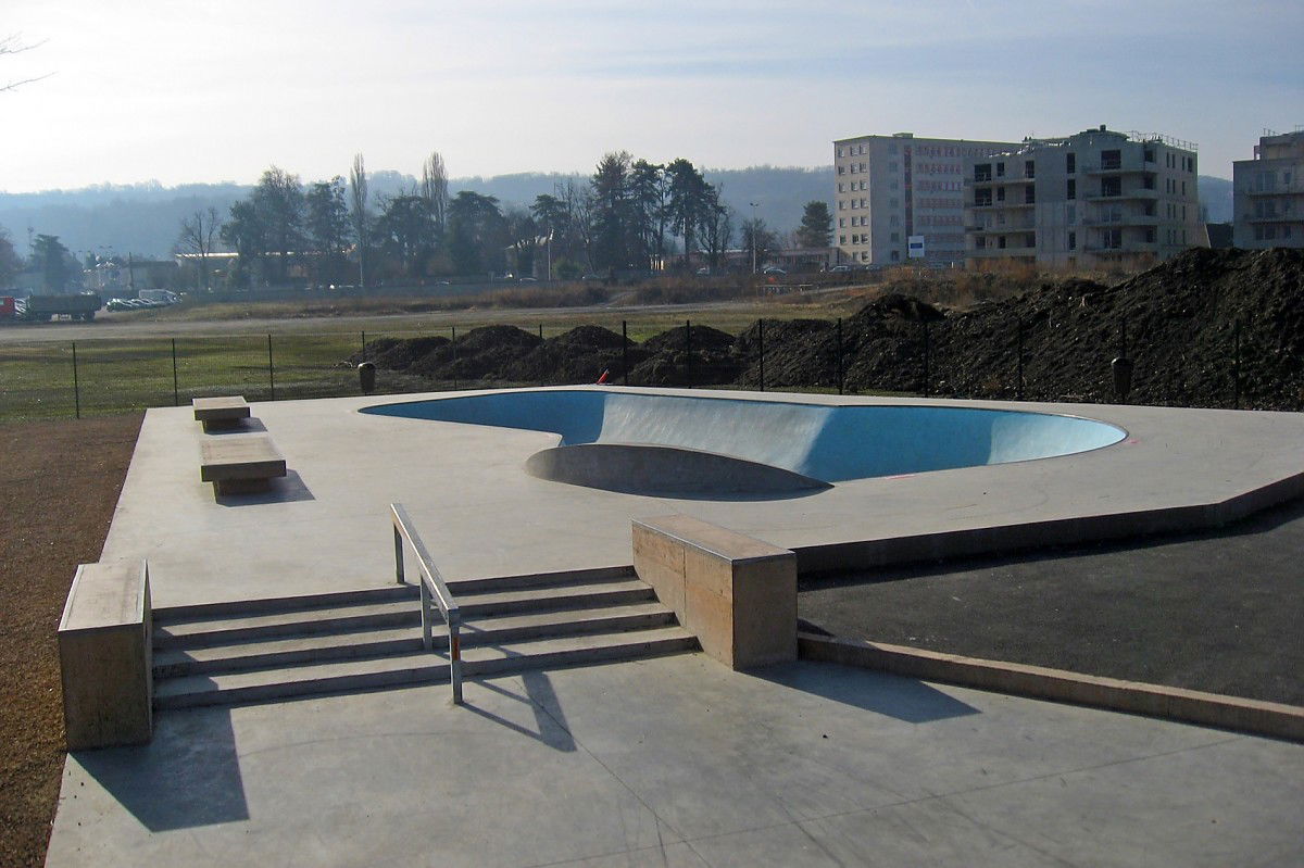 The 370 m² Bourgoin-Jallieu skatepark was originally built in 2007 and renovated by IOSkateparks in 2025.