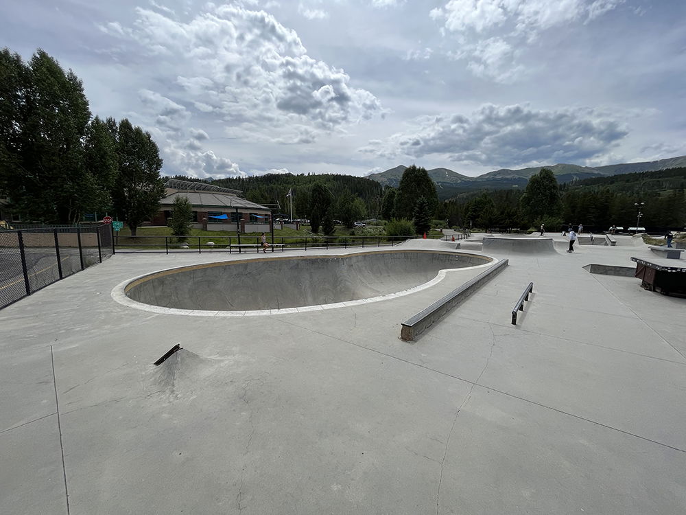The 1450 m² Breckenridge skatepark was designed and built by Team Pain. In 1999, Team Pain designed and built the original skate park in Breckenridge, Colorado. After 15 years, the City of Breckenridge decided to extend the park. The new and improved skate park was designed by Team Pain to suit all generations and disciplines of skateboarders. There are 3 bowls for different levels, a snake run and street area packed with obstacles.