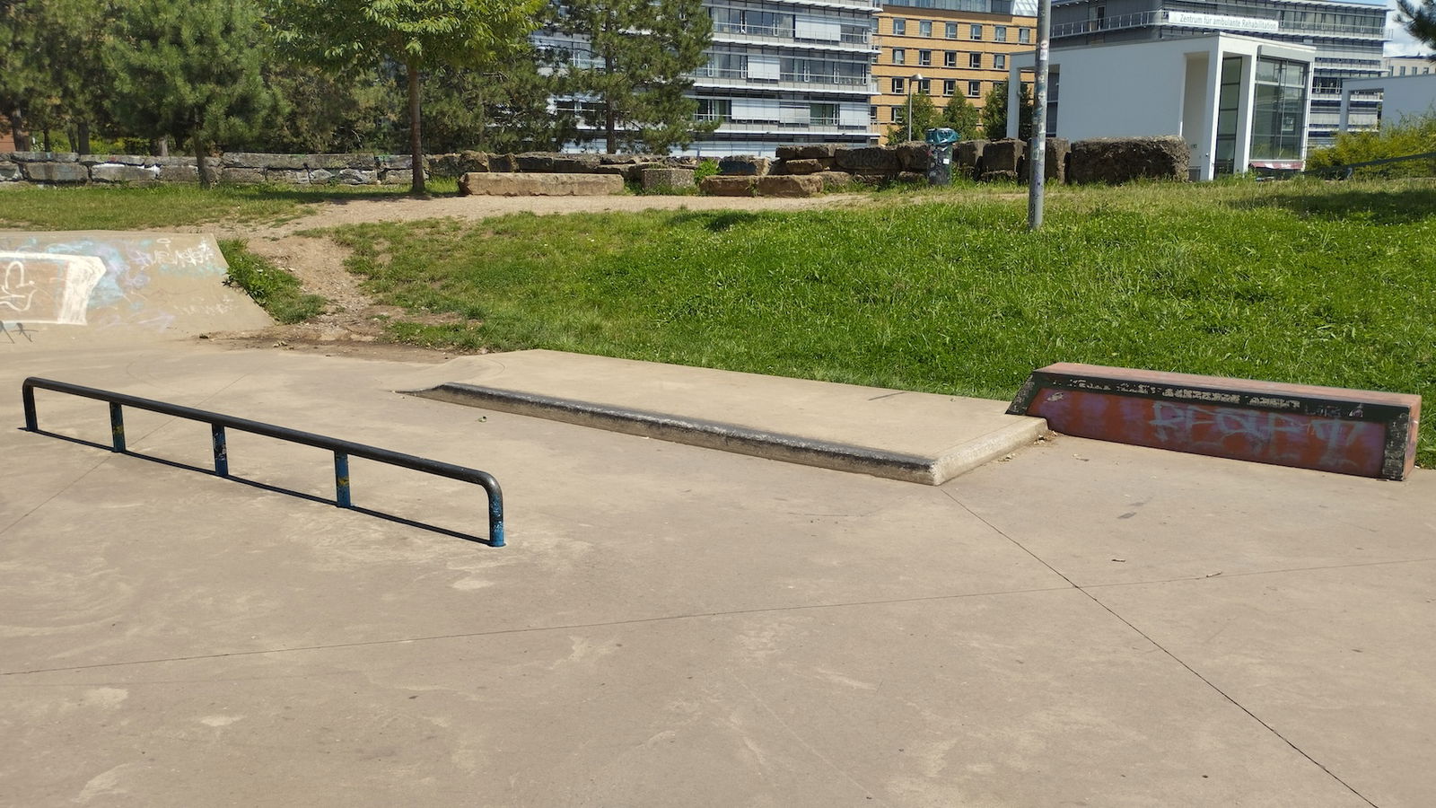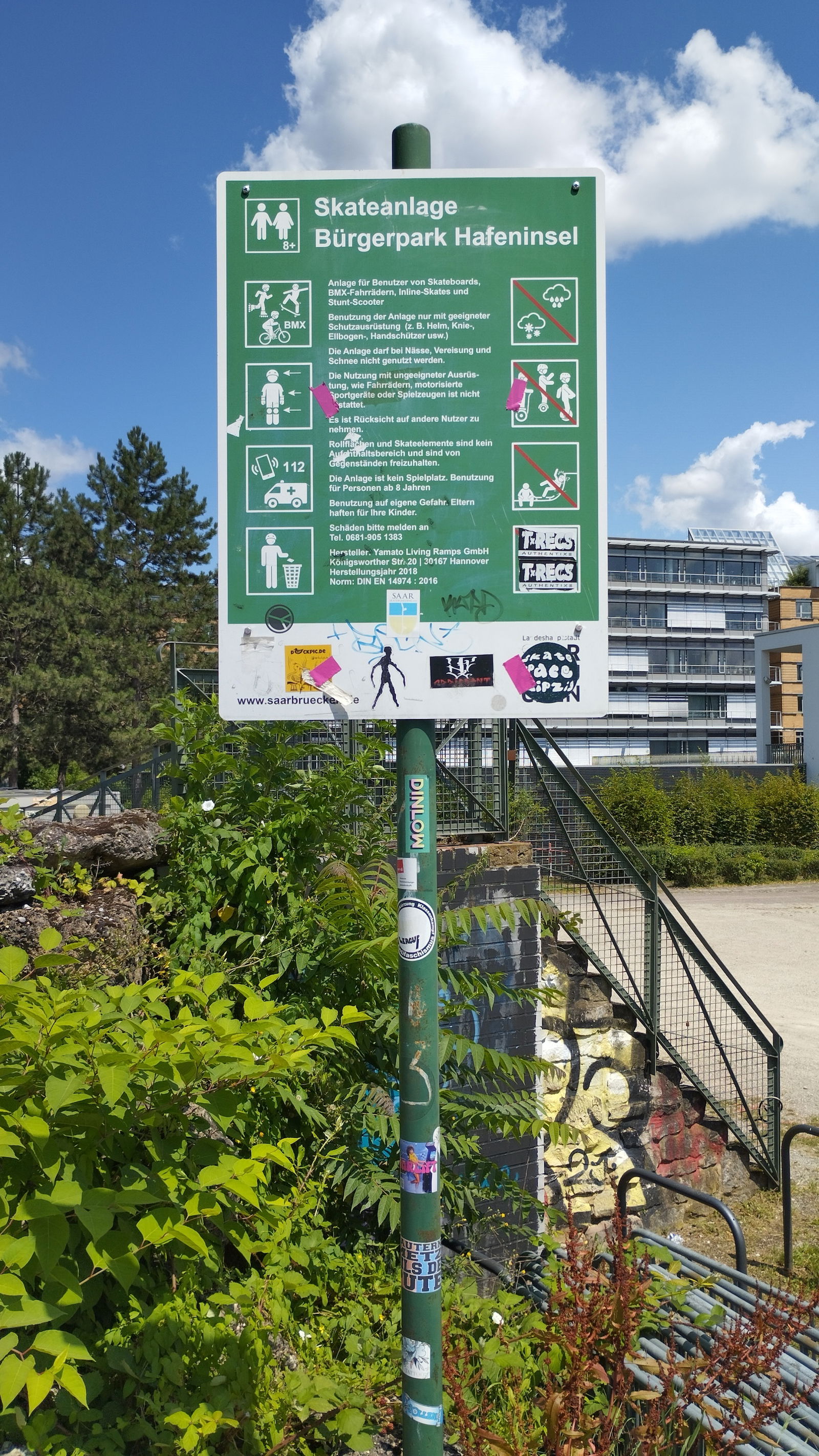 Burgerpark Hafeninsel skatepark is a street-oriented concrete skatepark located in the Burgerpark in Saarbrücken. It was designed by LNDSKT and built by Yamato Living Ramps in 2019. There is also a concrete halfpipe nearby.