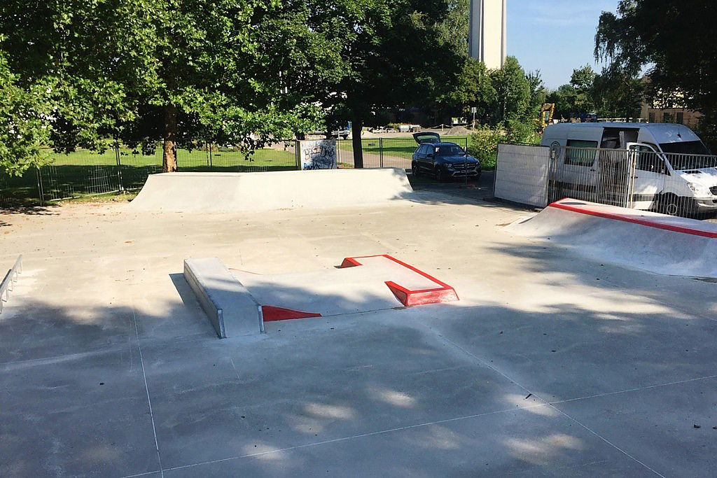 Bürgerpark Skatepark is a small concrete street park with low banks and transition along the sides and a couple of street obstacles in the middle. It was built in 2017 by Yamato Living Ramps.