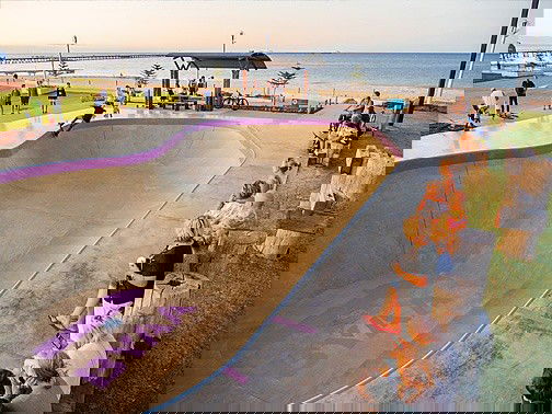 The skatepark was part of the larger Busselton Foreshore redevelopment, receiving $2.1 million in funding from Lotterywest to support its construction. It has since become a central hub for youth and community events, offering amenities such as shaded seating and drinking fountains.