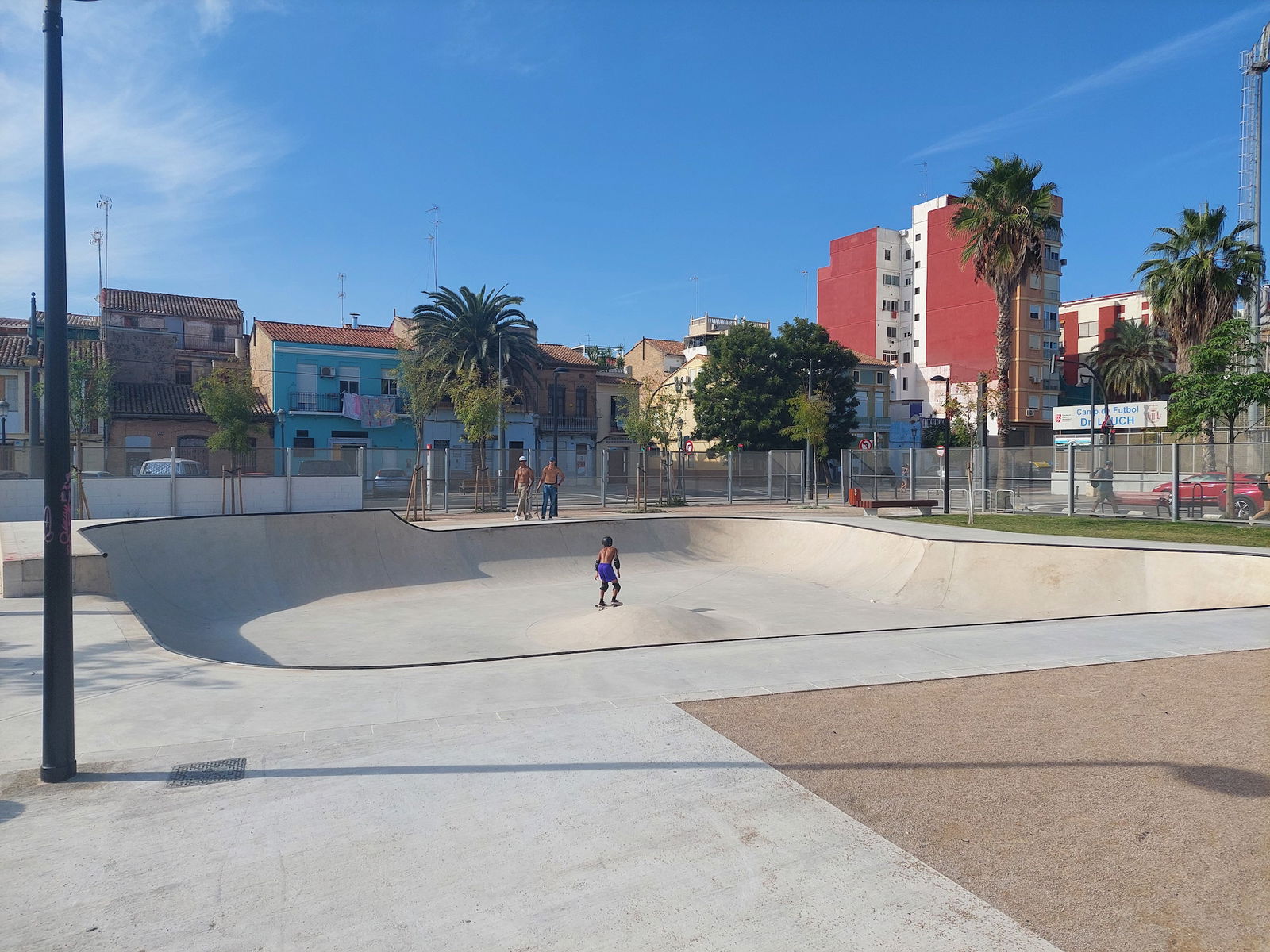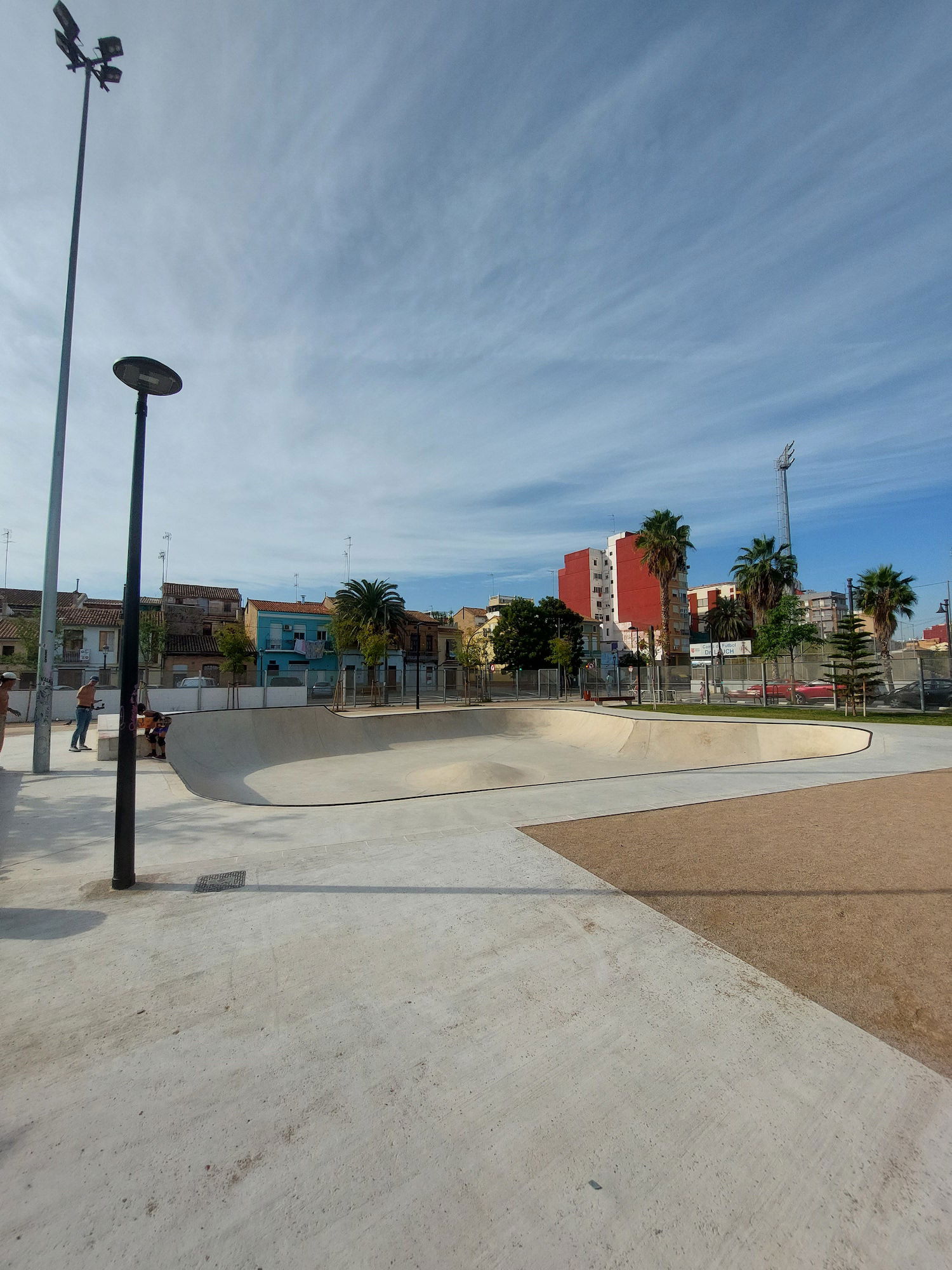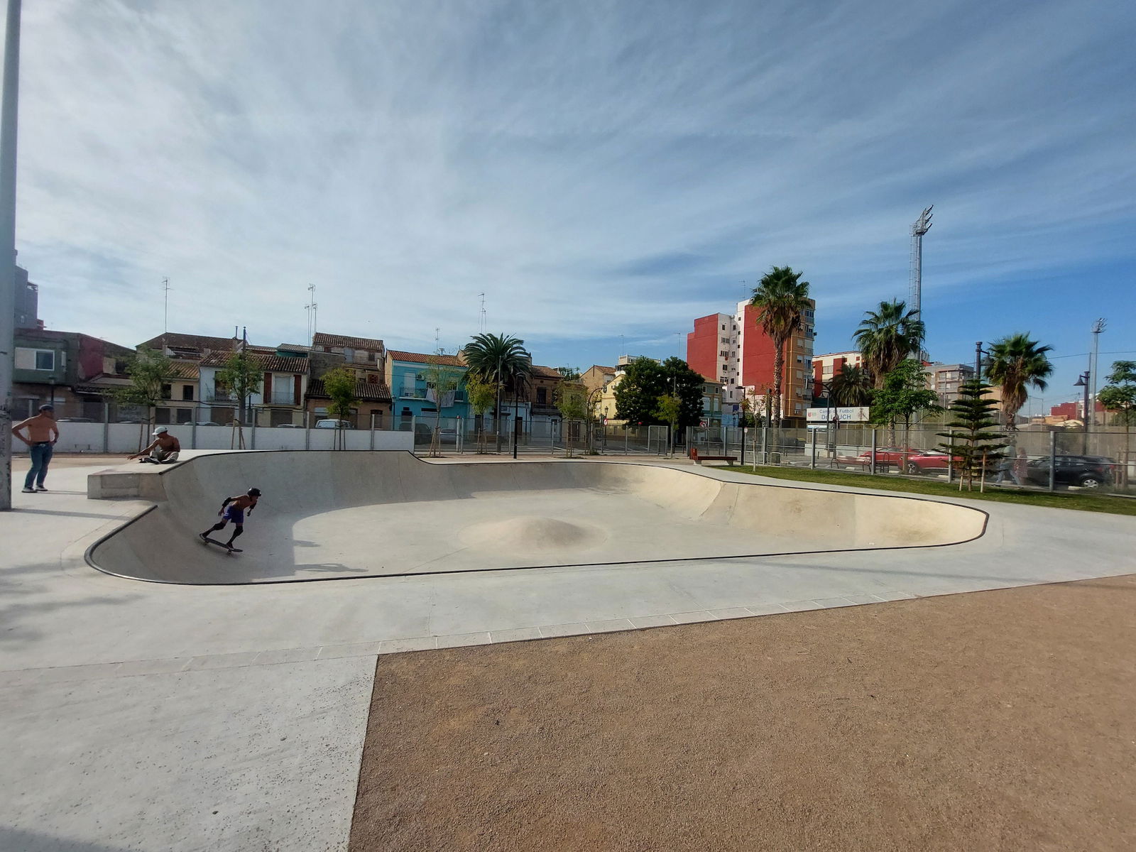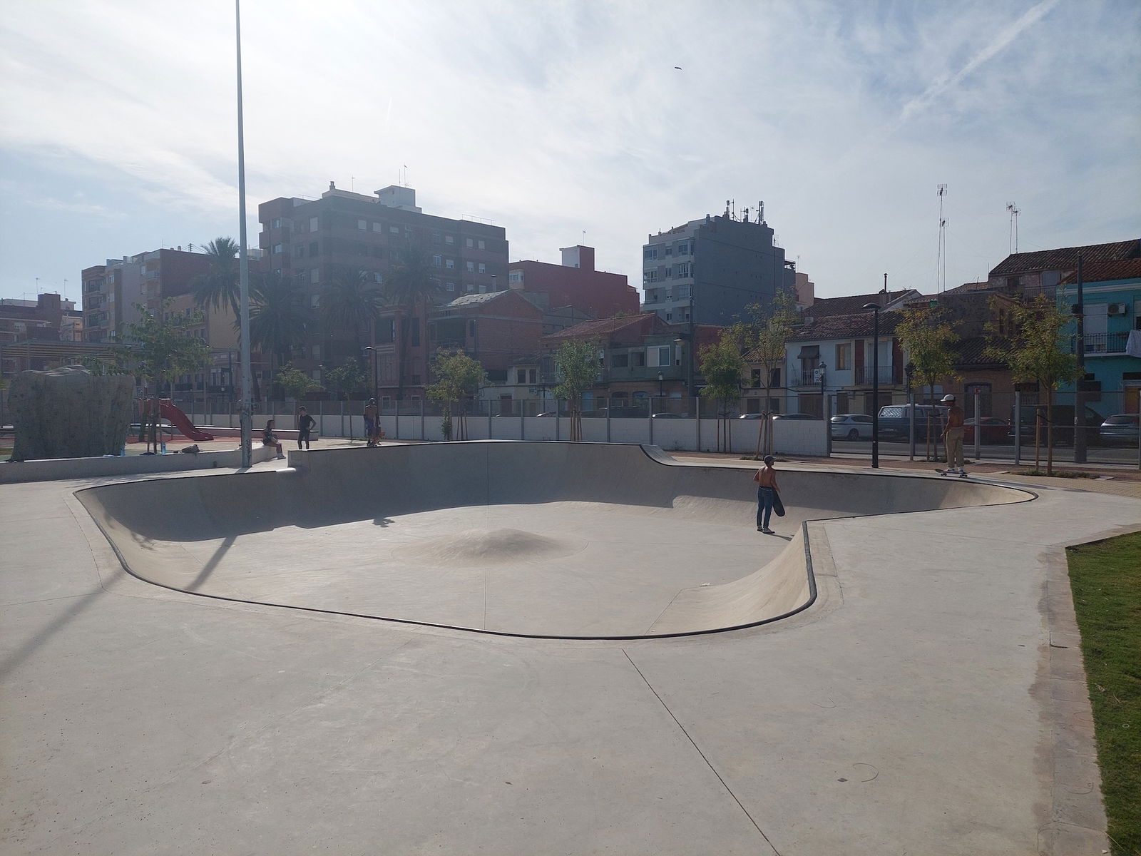 Cabañal skatepark is made up of a mellow concrete bowl. The skatepark was built by Copinramps.